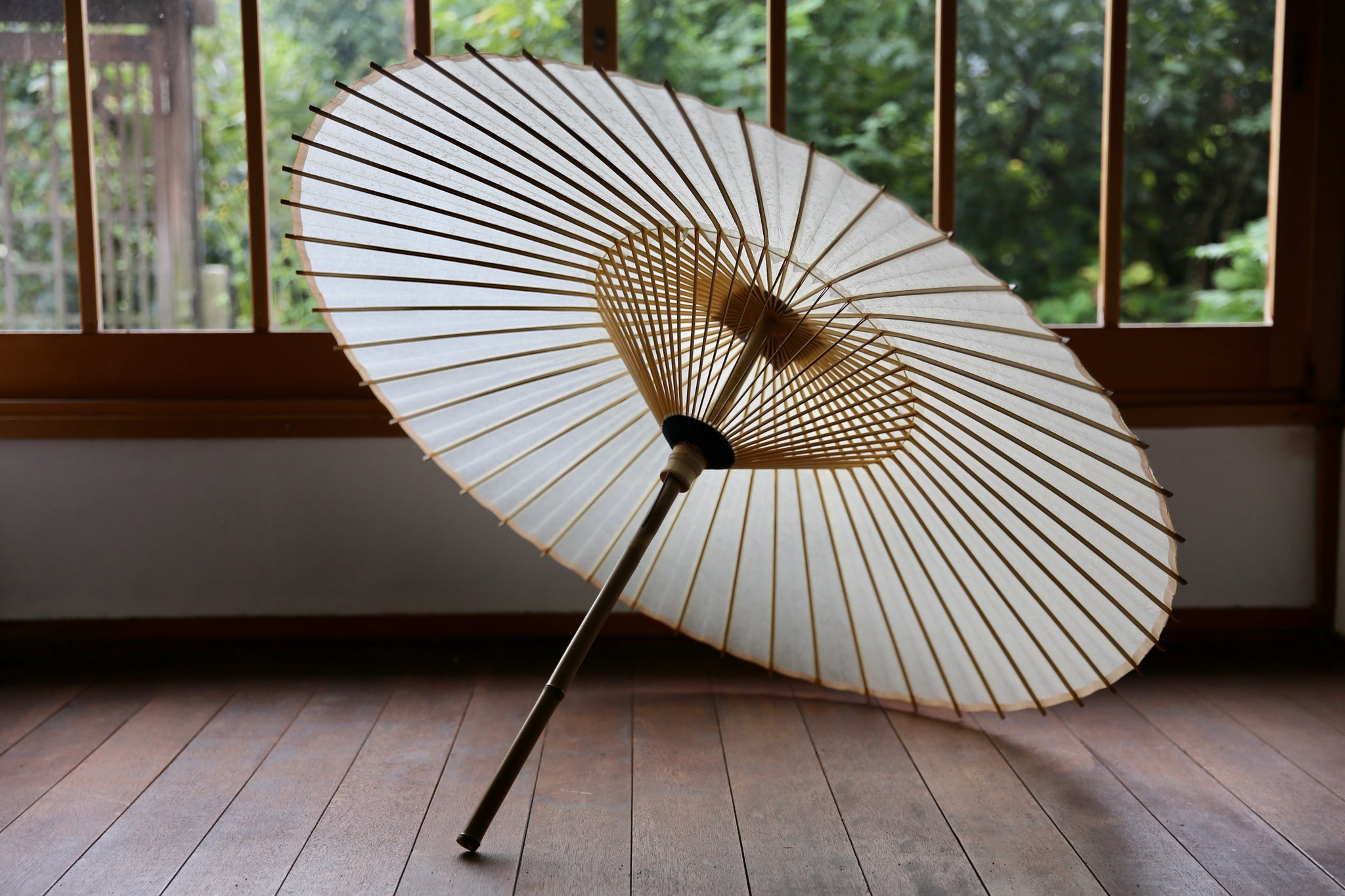 和紙、竹、木という素材感を楽しめるシンプルさが魅力な番傘。