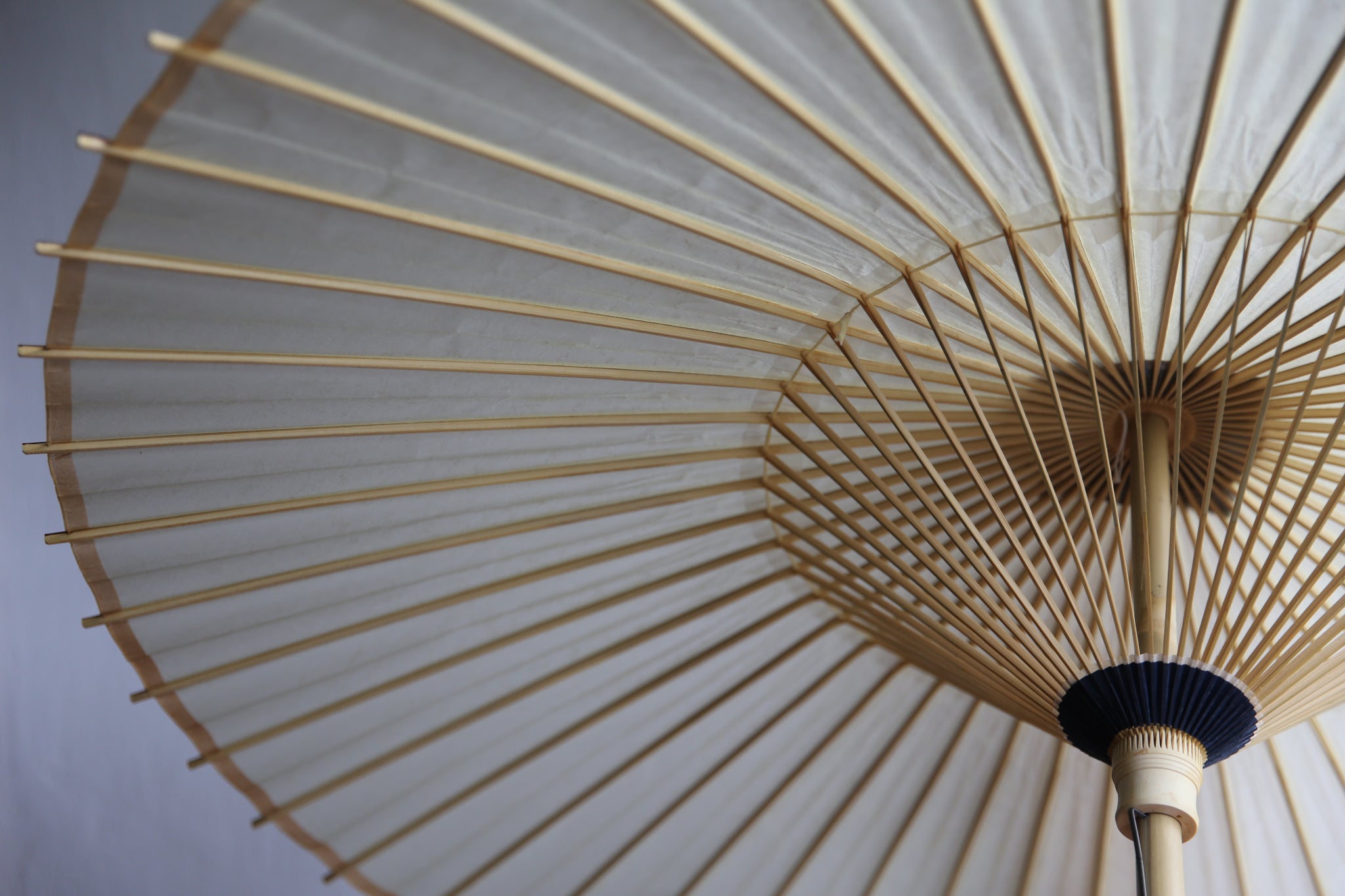 和傘の骨組みは、1本の竹を均等に割り、傘を畳んだ際に元の竹に戻るように組まれています。