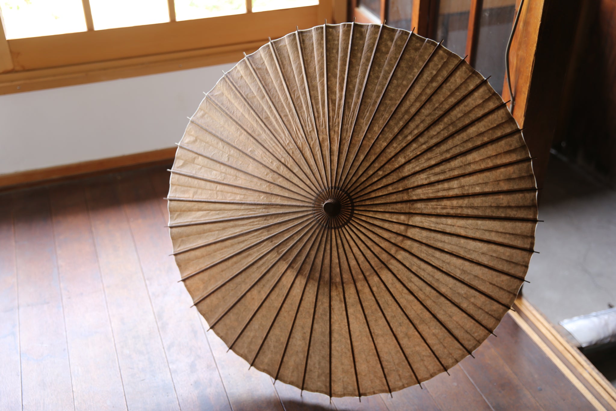 和傘の骨組みは、1本の竹を均等に割り、傘を畳んだ際に元の竹に戻るように組まれています。