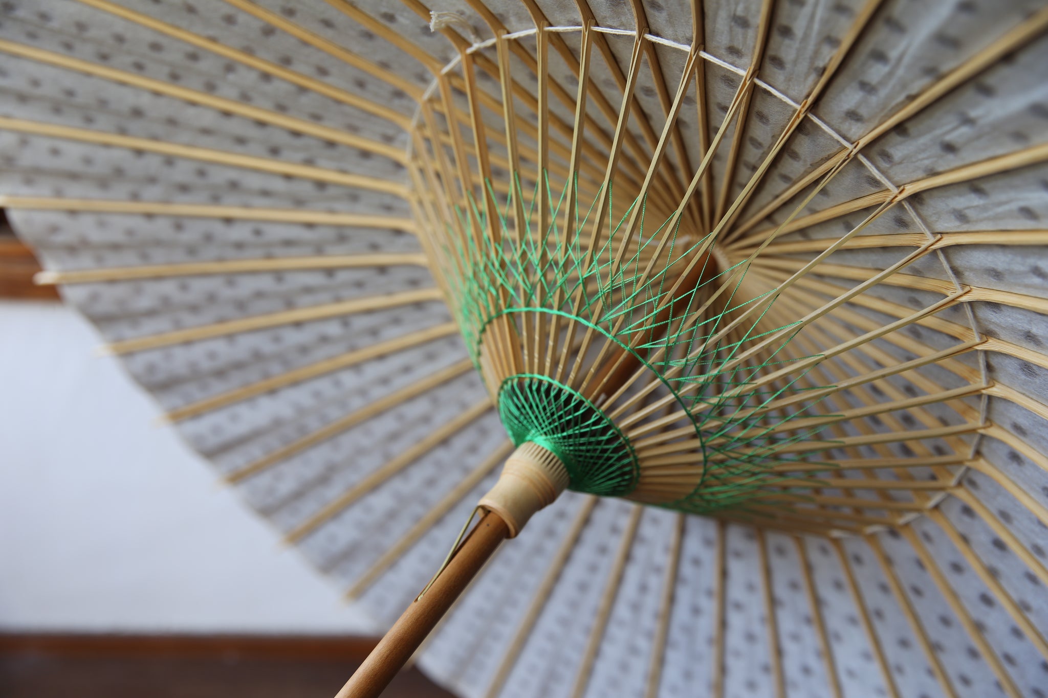 「開いて花、閉じて竹」と謳われる和傘は、職人の熟練の技と、細部に至るこだわりが詰まった日本の伝統的な工芸品です。