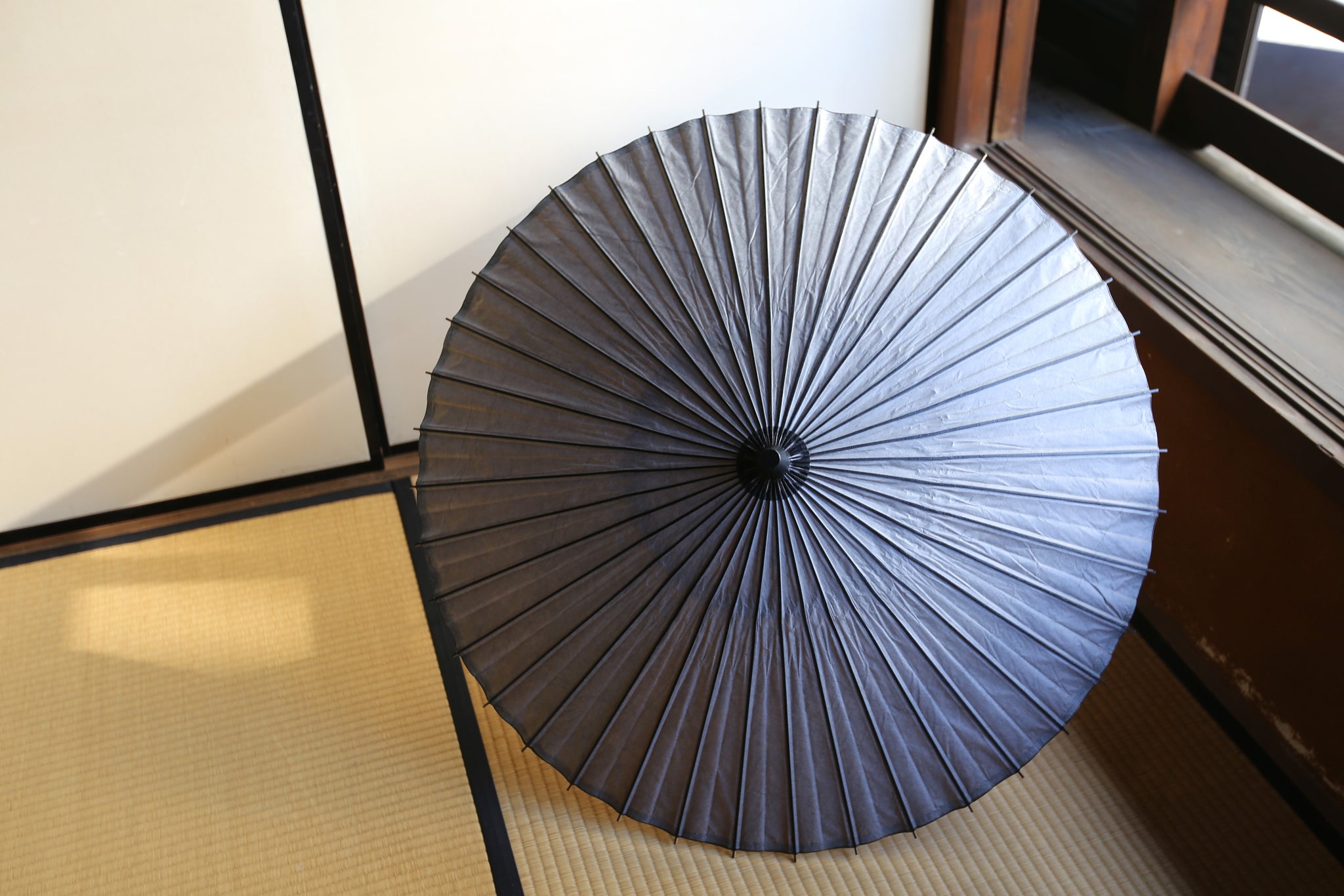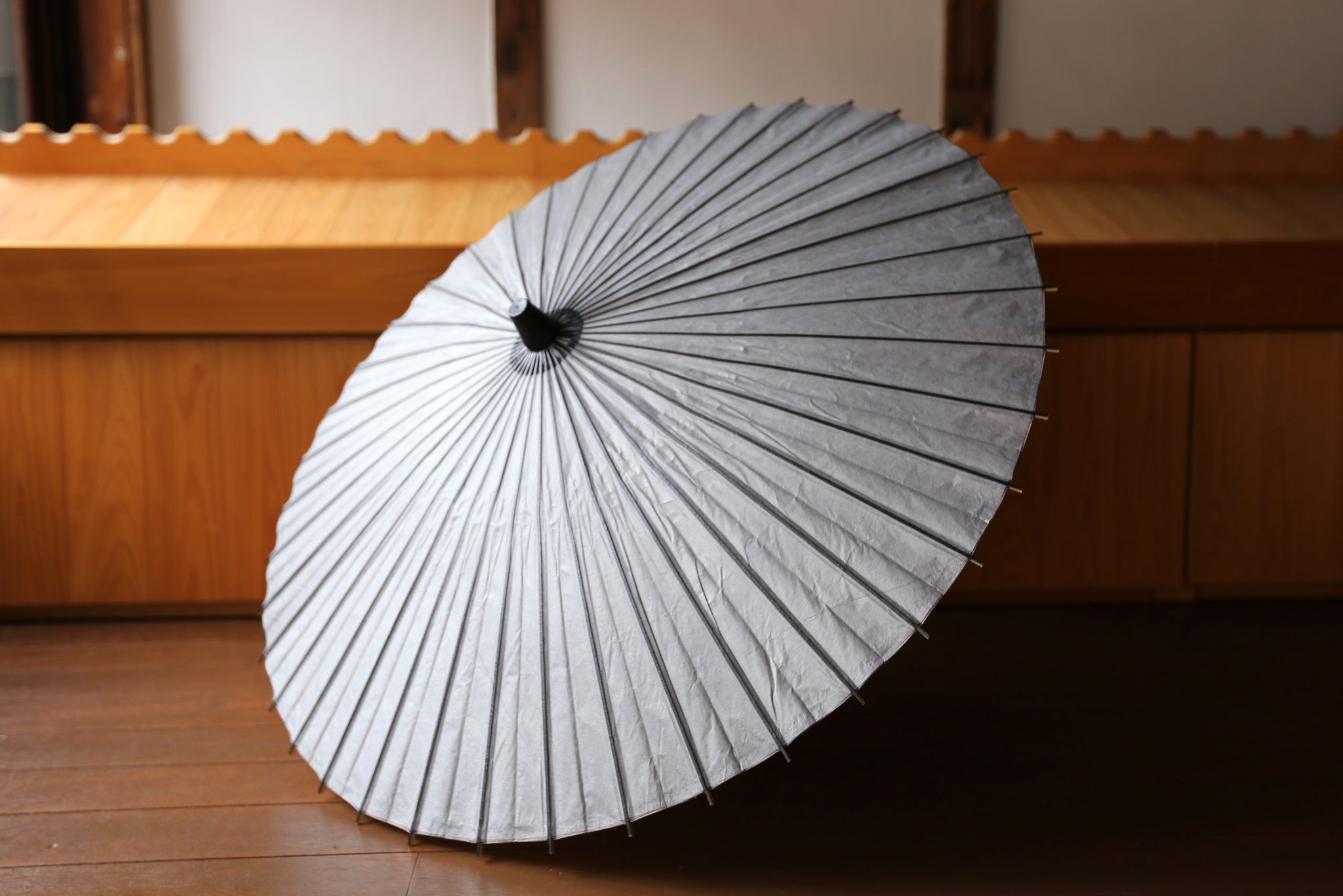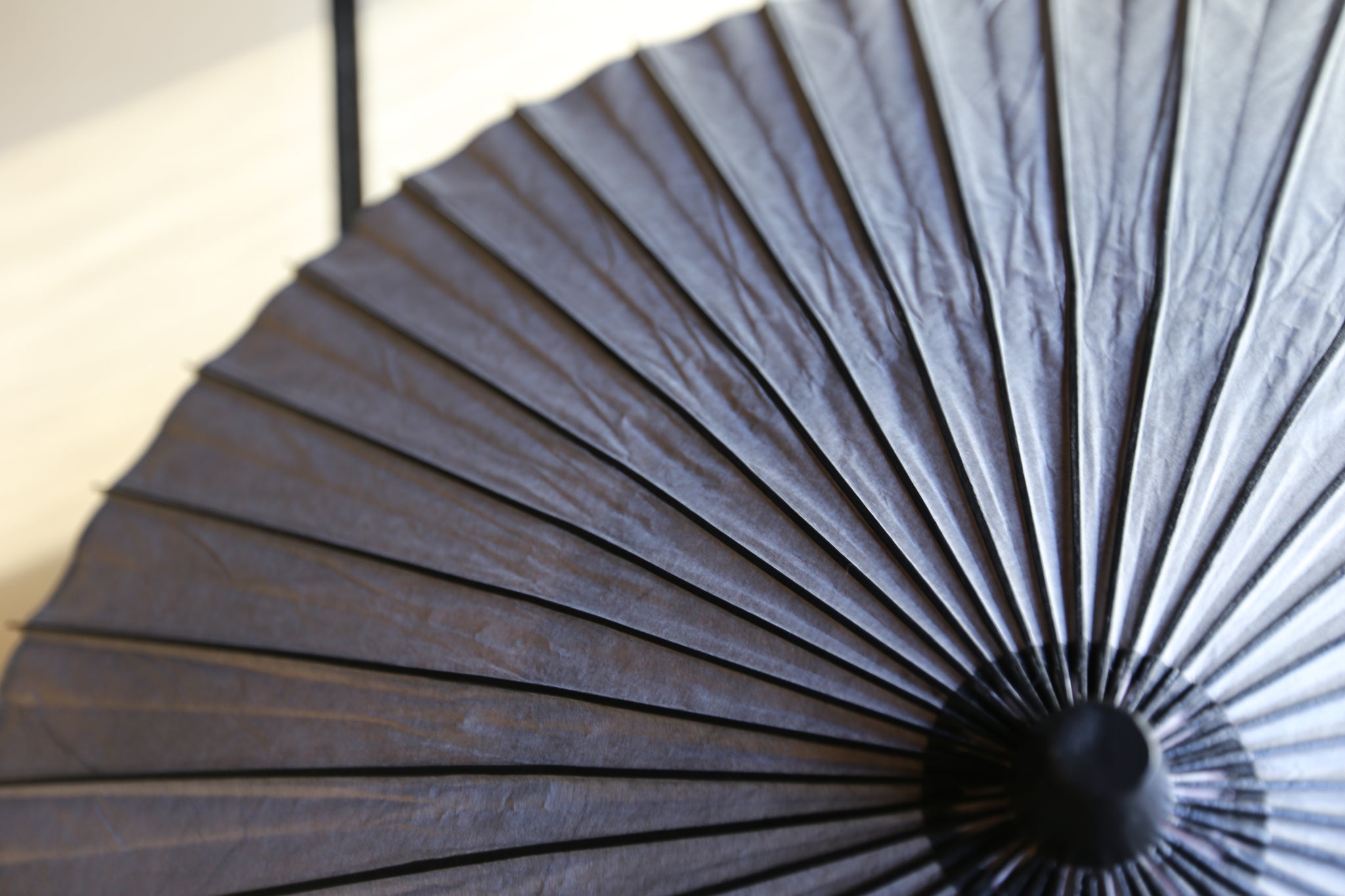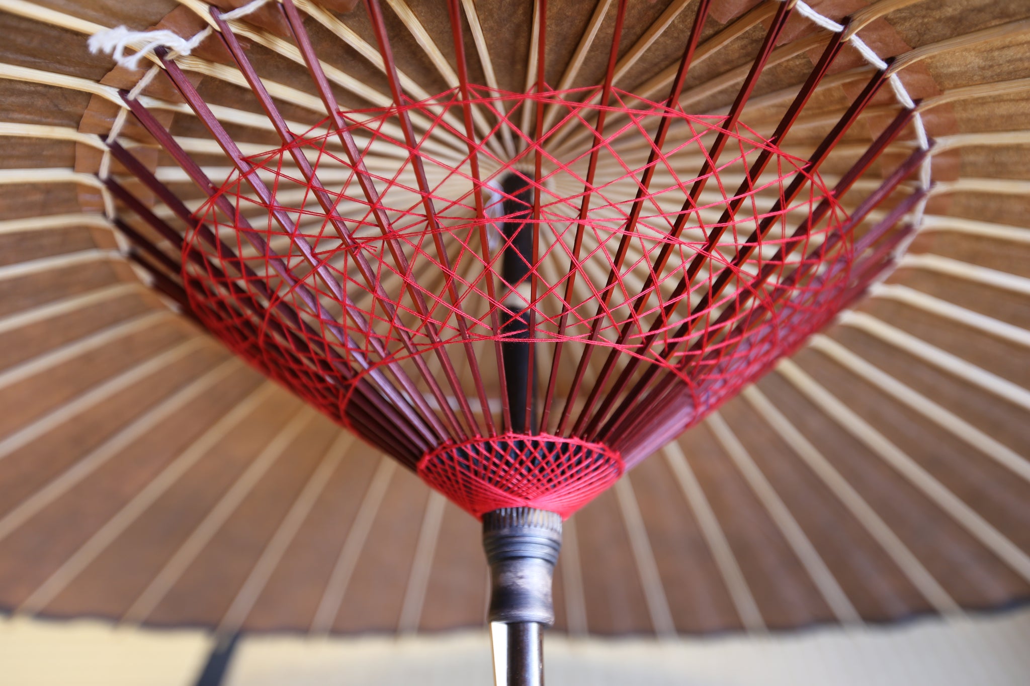二重張と呼ばれる異なる2枚の和紙を重ねて張っている日傘です。