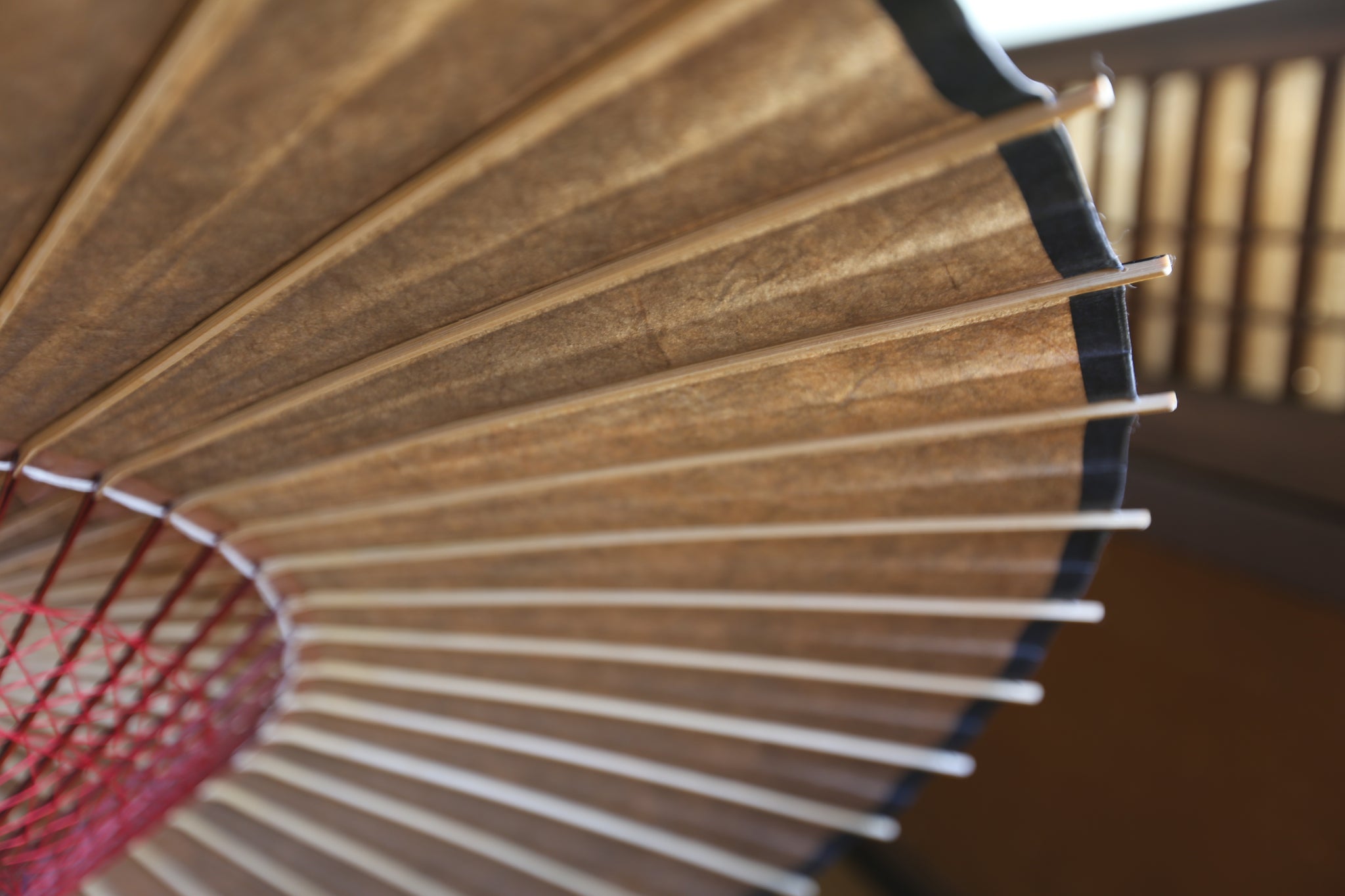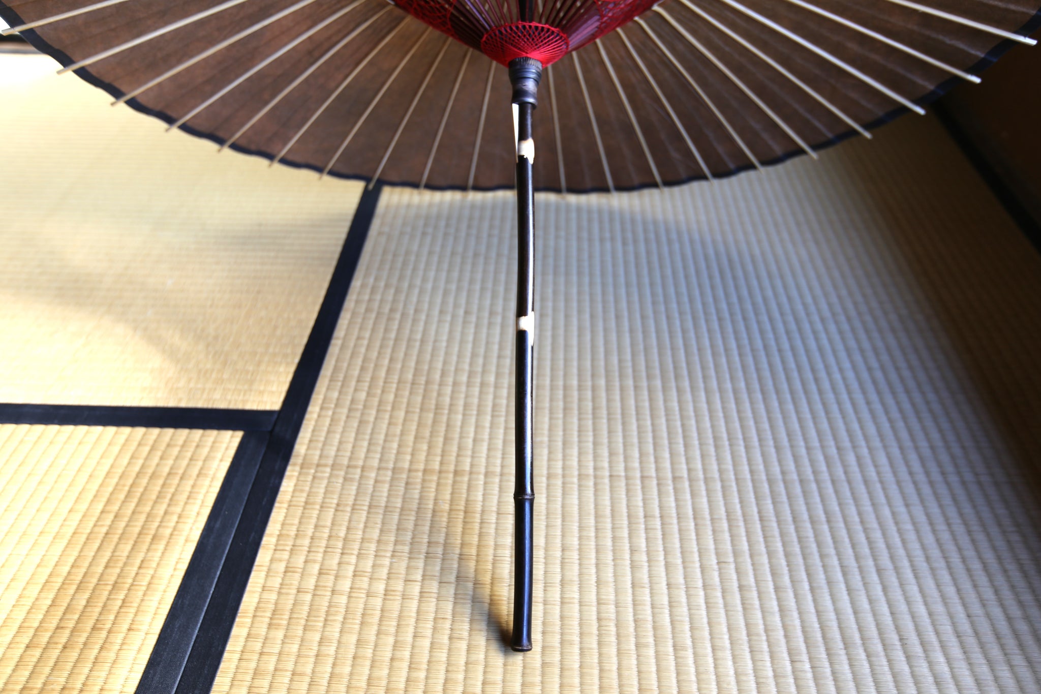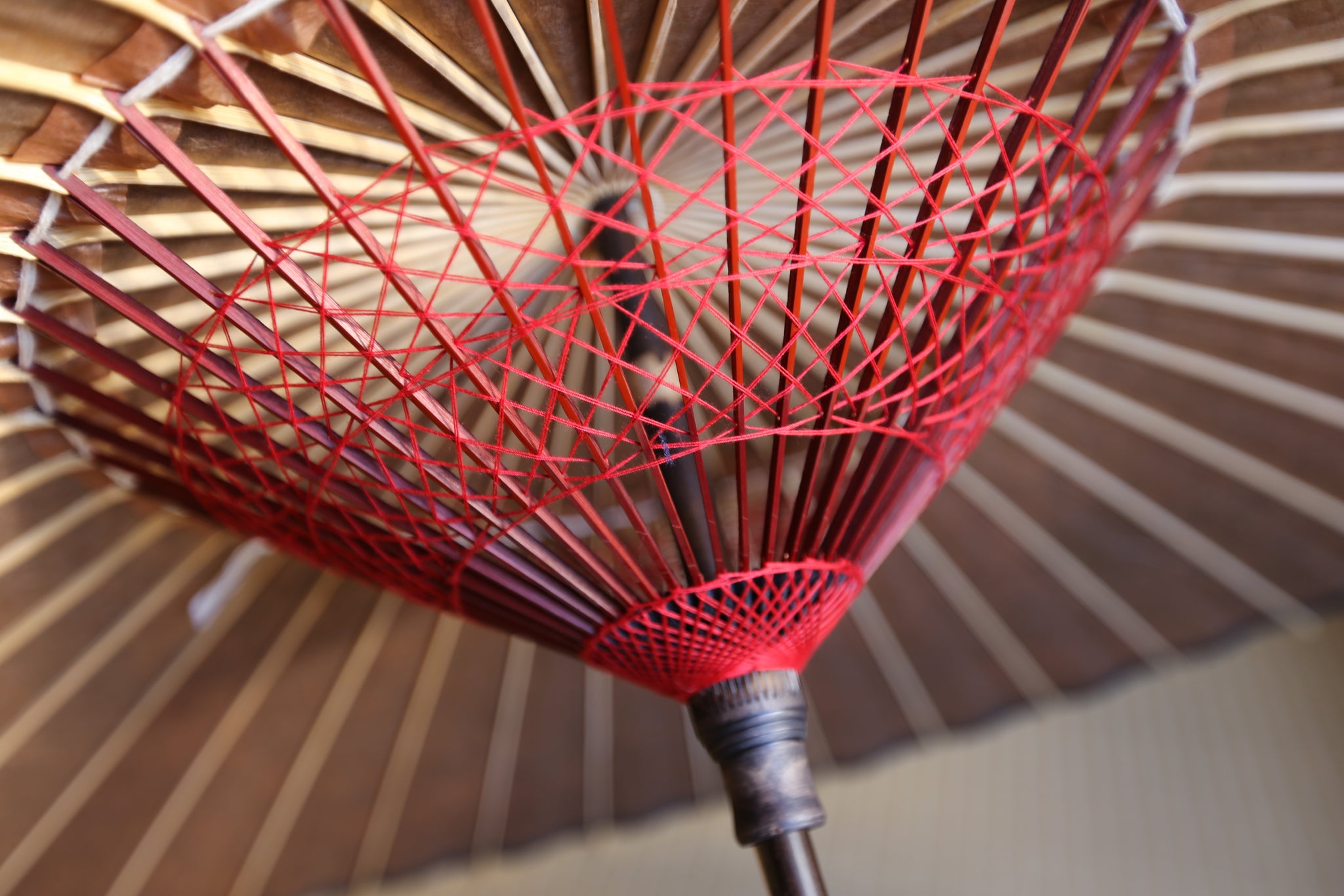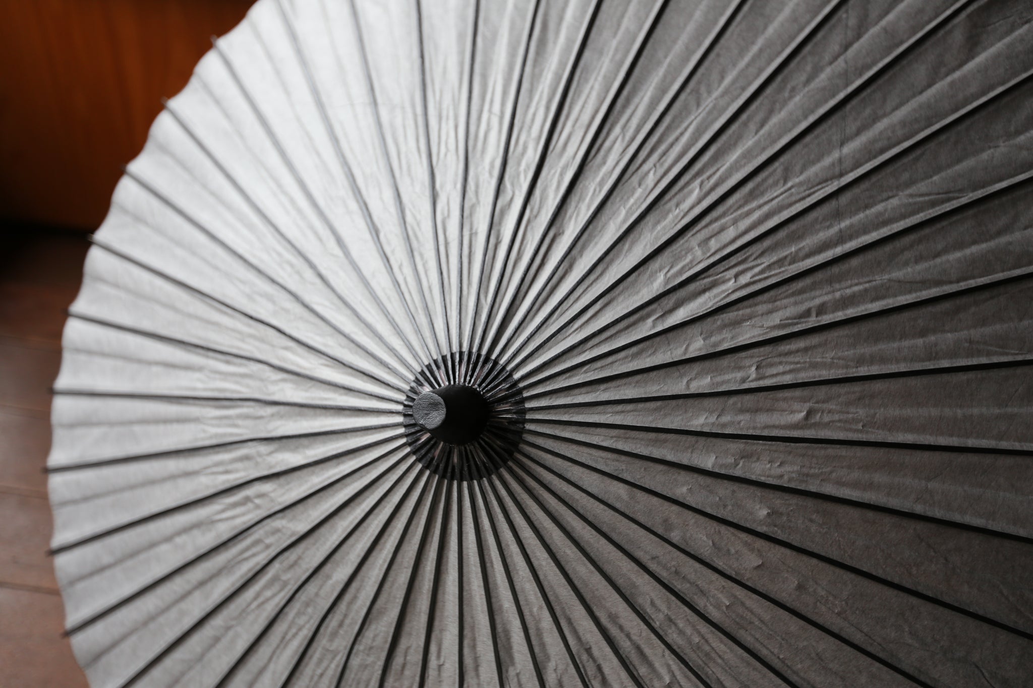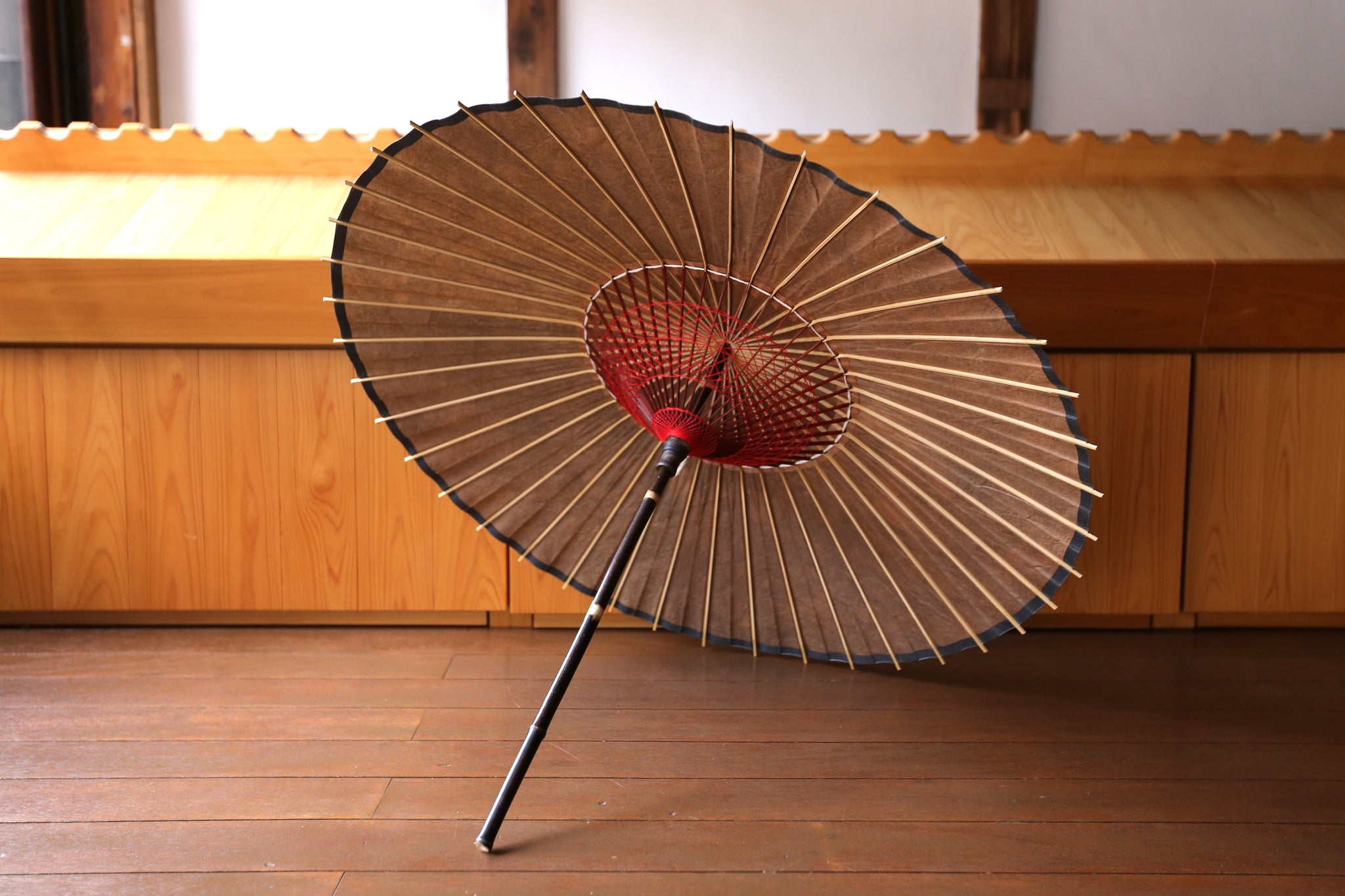 二重張と呼ばれる異なる2枚の和紙を重ねて張っている日傘です。
