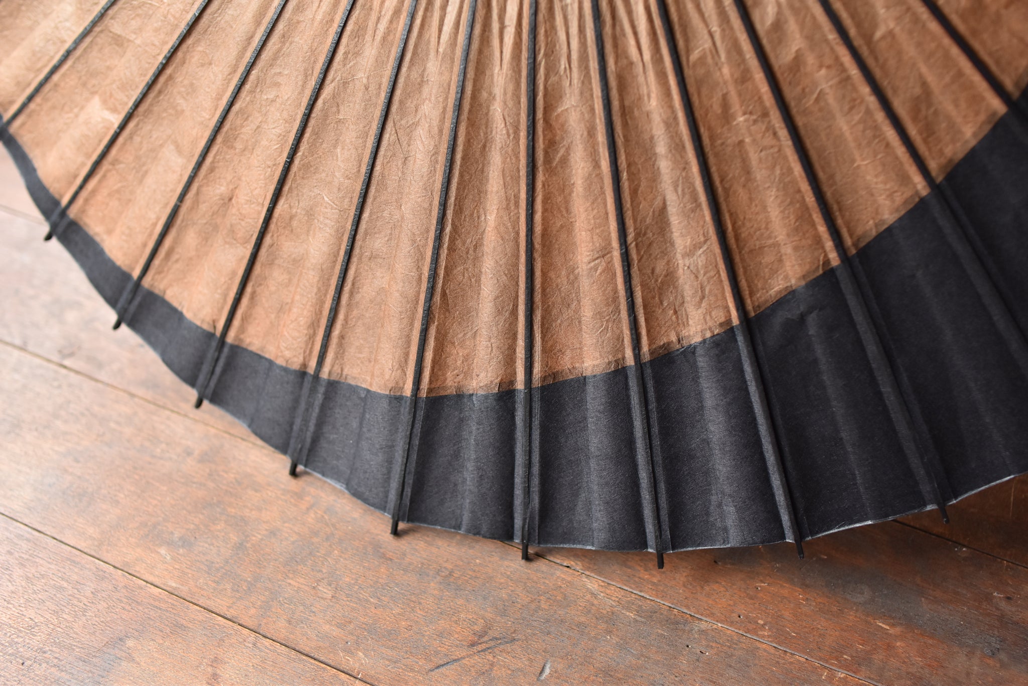 和紙を揉んだシワによる柿渋の色と漆黒の深みが、とても渋くかっこいい。
