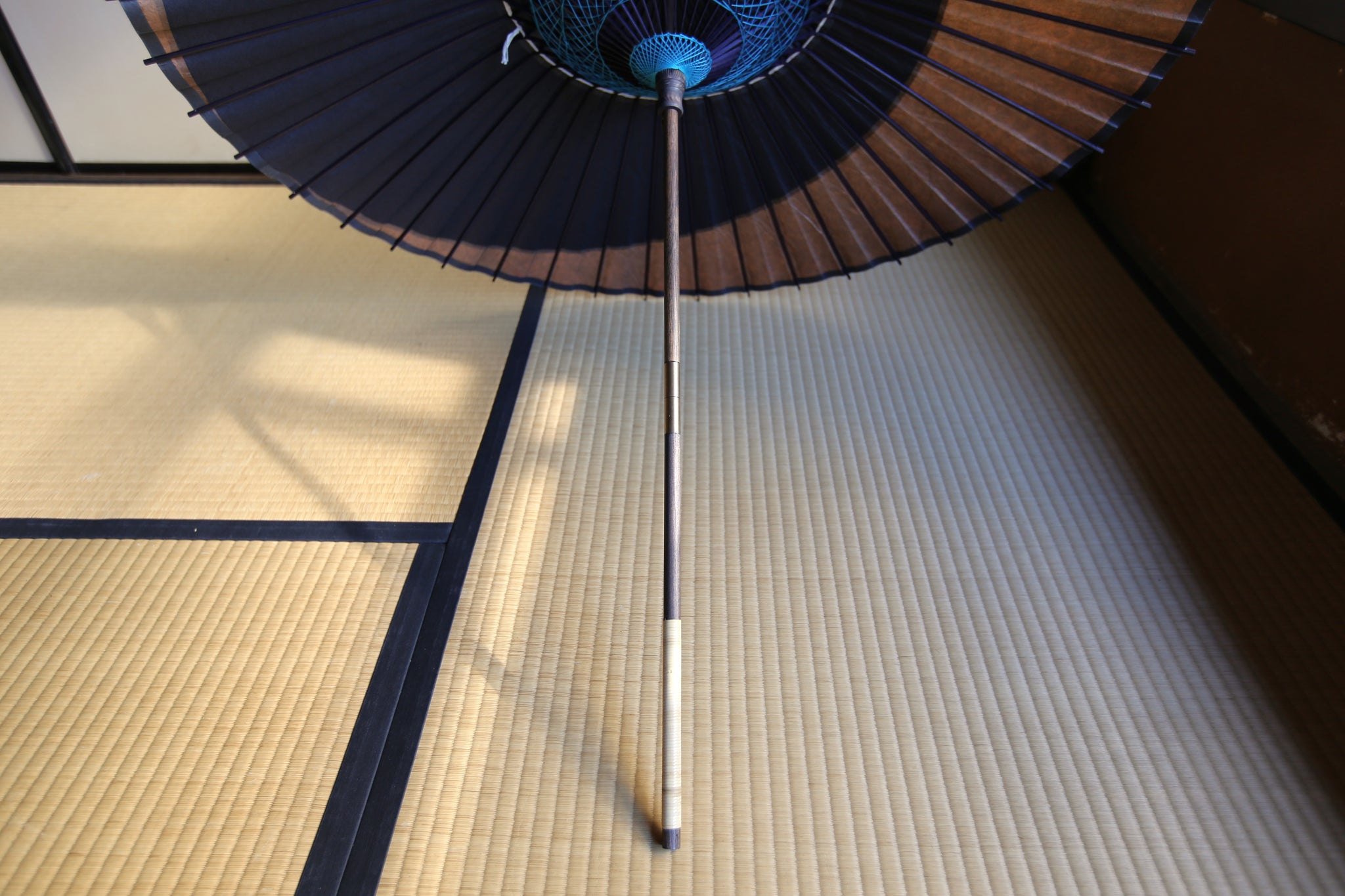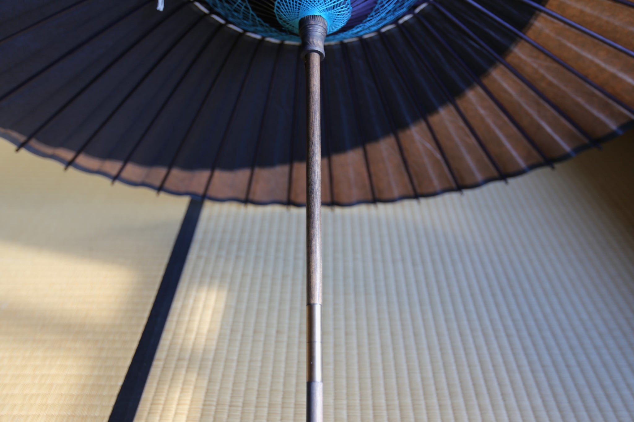 日傘【月奴 黒×柿渋鉄】(ブルー)(継柄)