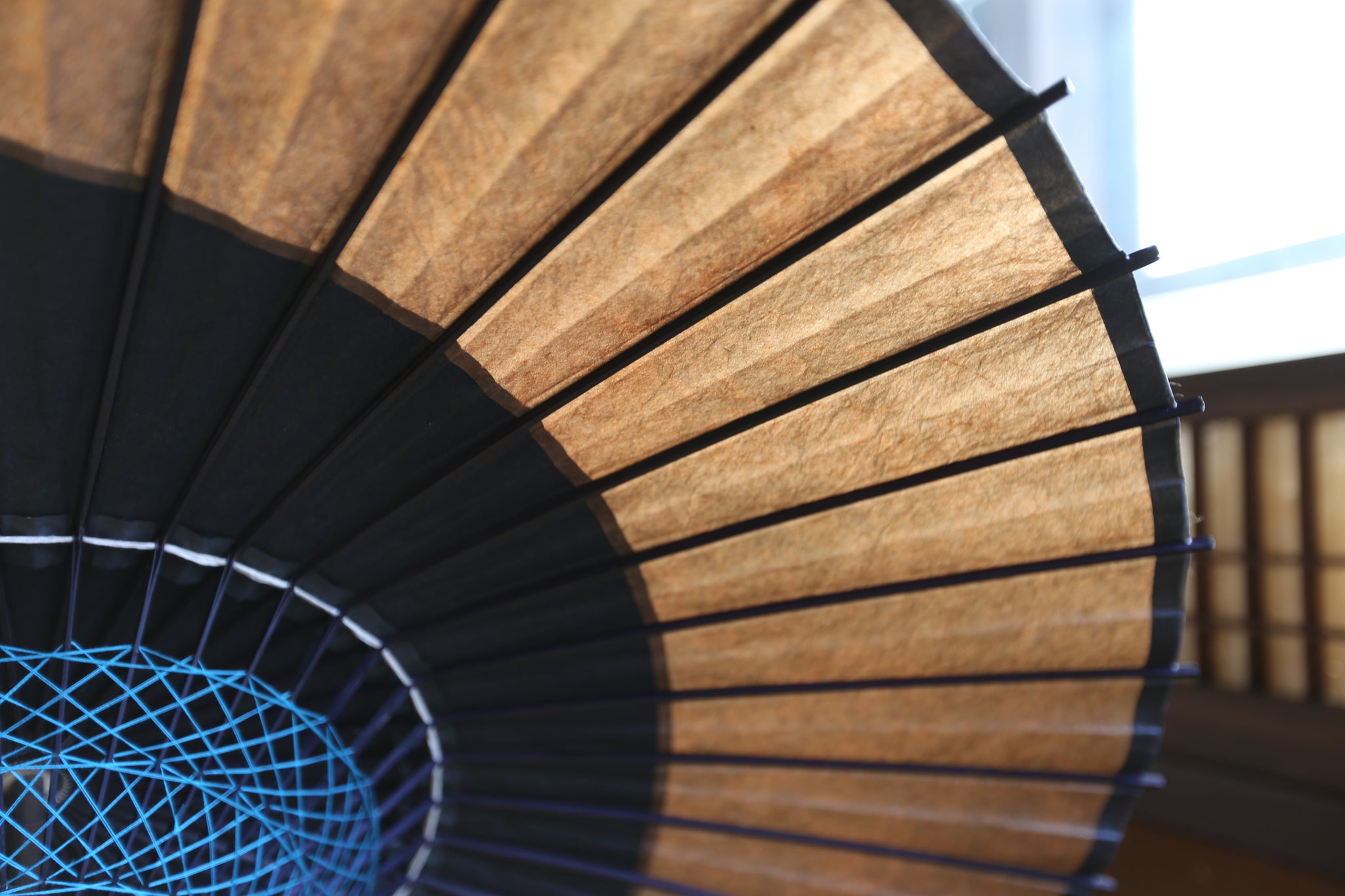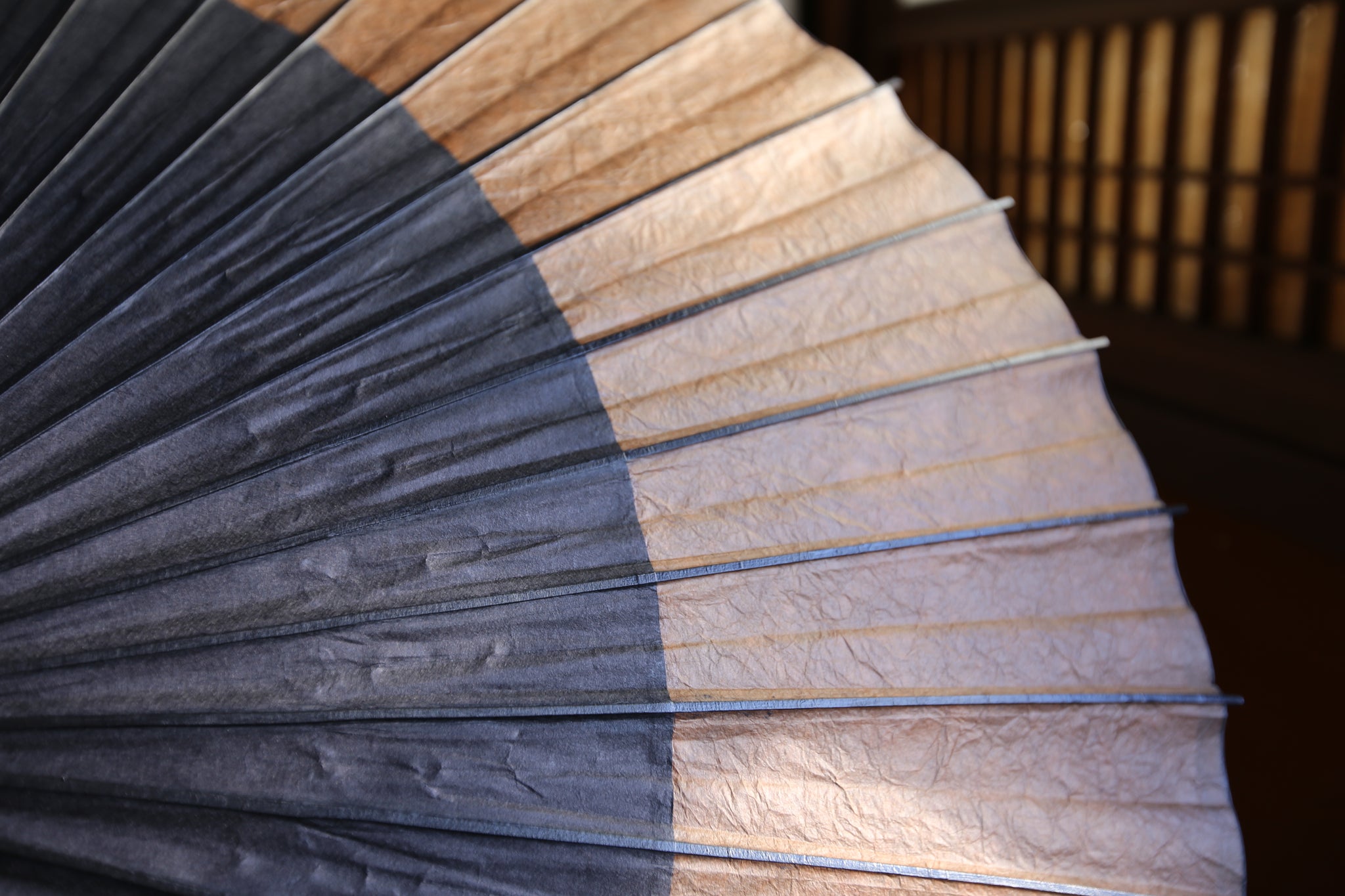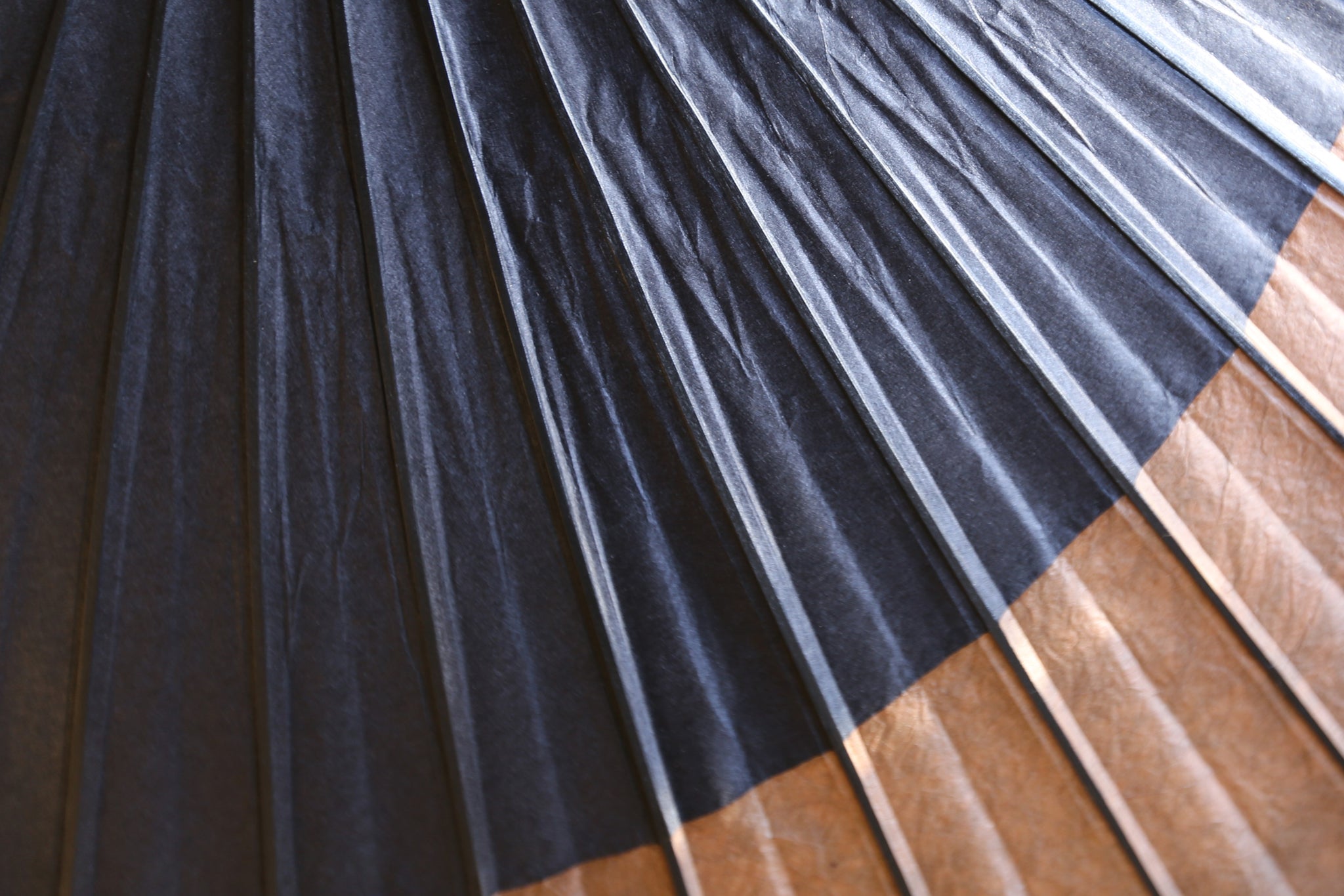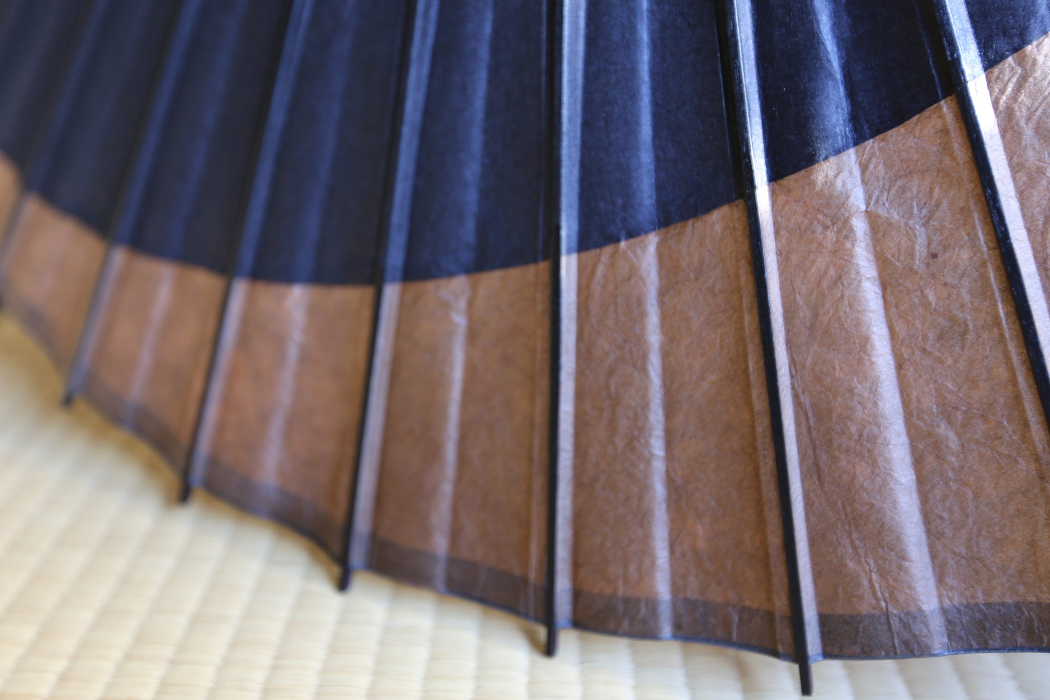 三日月部分は、幸草紙工房の柿渋を施した美濃手漉き和紙を使用。黒の和紙と柿渋のこげ茶色の深みが、とても渋くかっこいい。