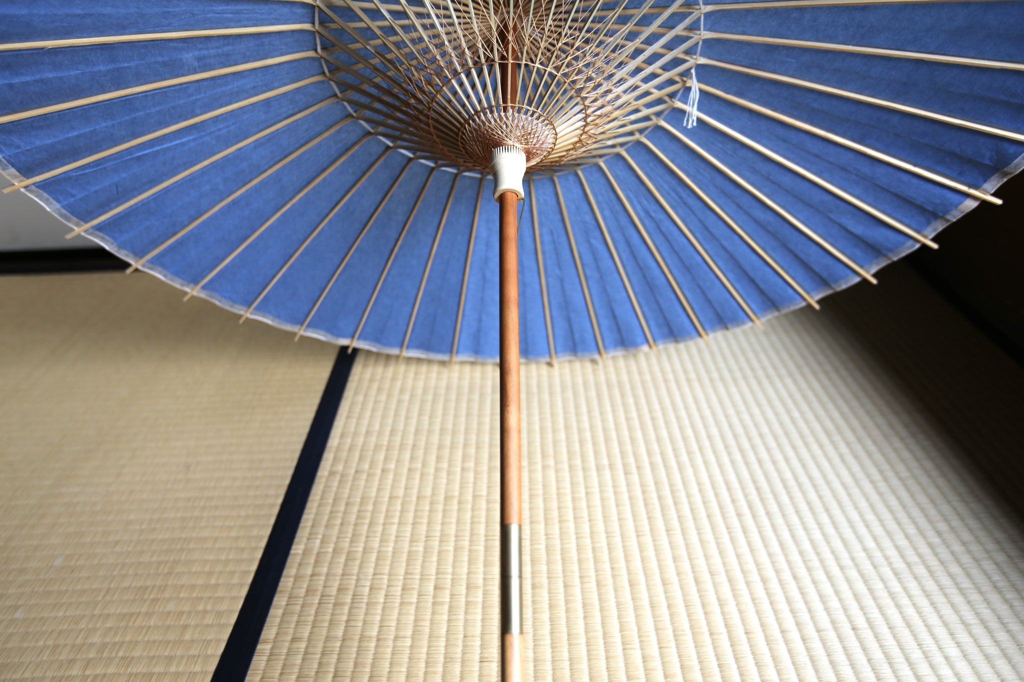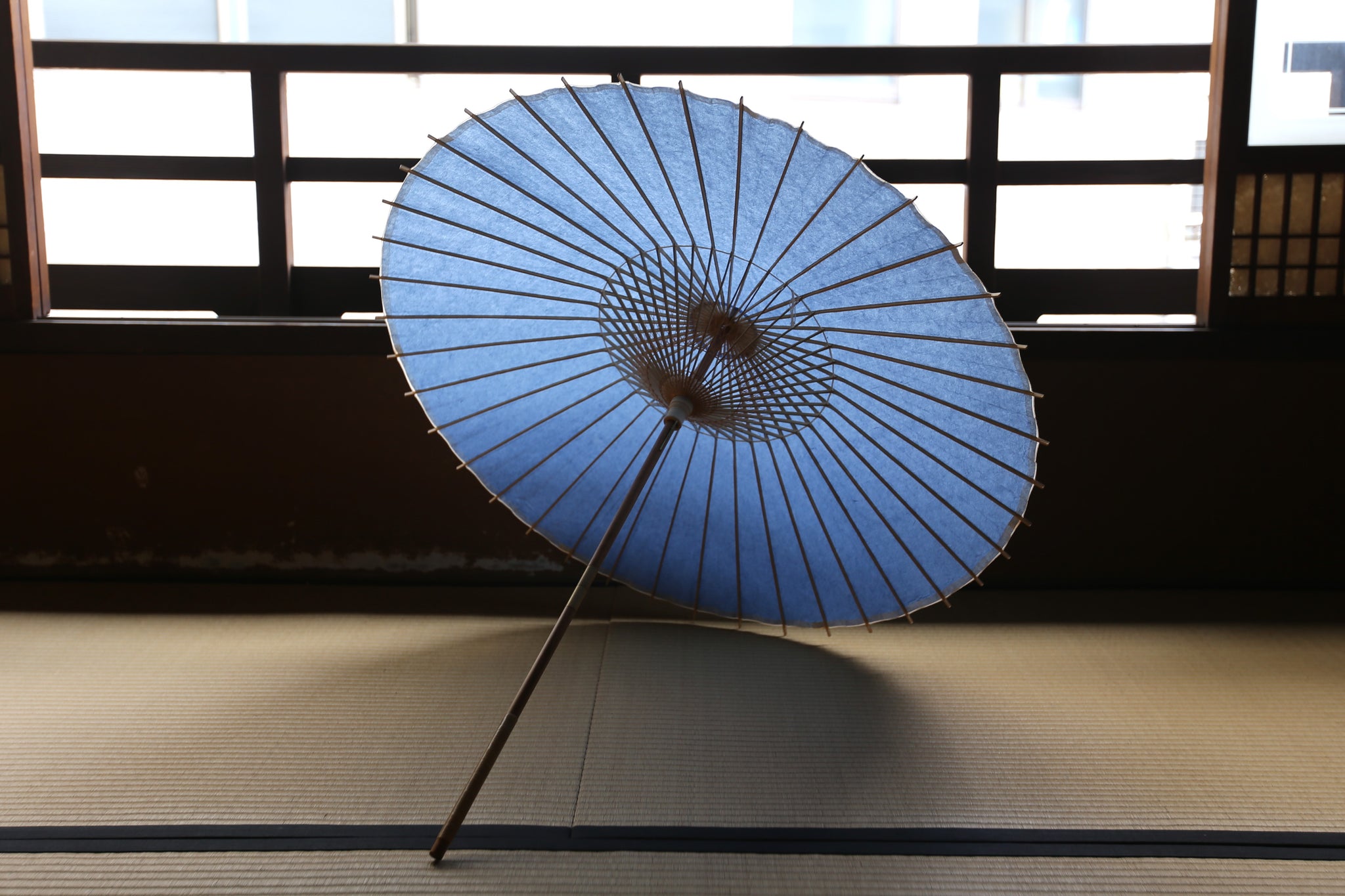 シンプルな空色の和紙を使用した日傘。