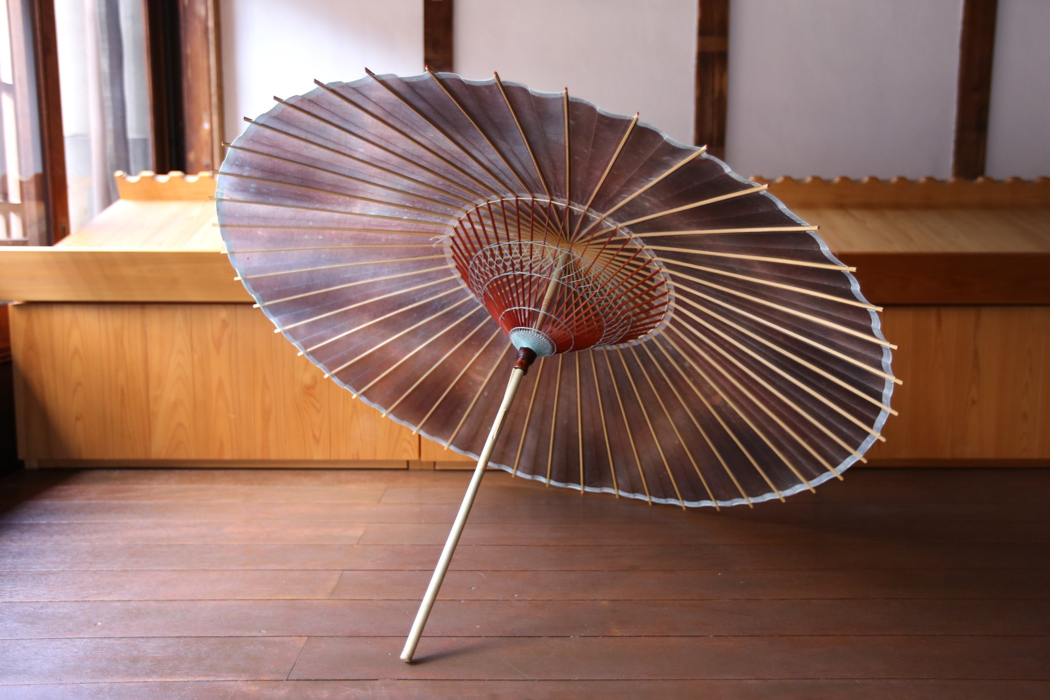 「開いて花、閉じて竹」と謳われる和傘は、職人の熟練の技と、細部に至るこだわりが詰まった日本の伝統的な工芸品です。