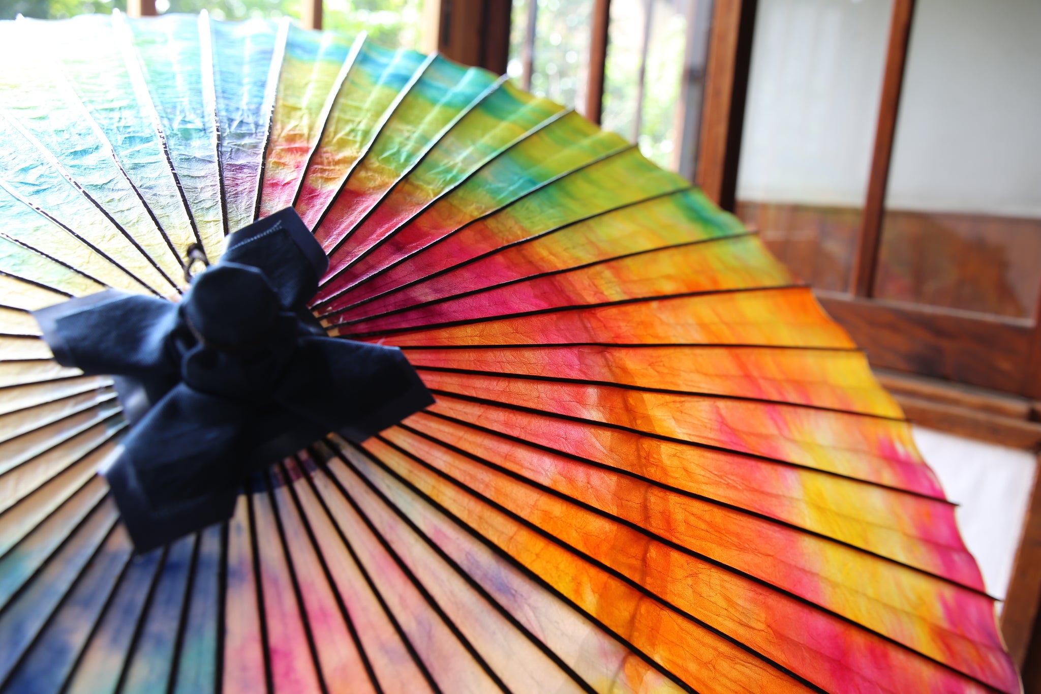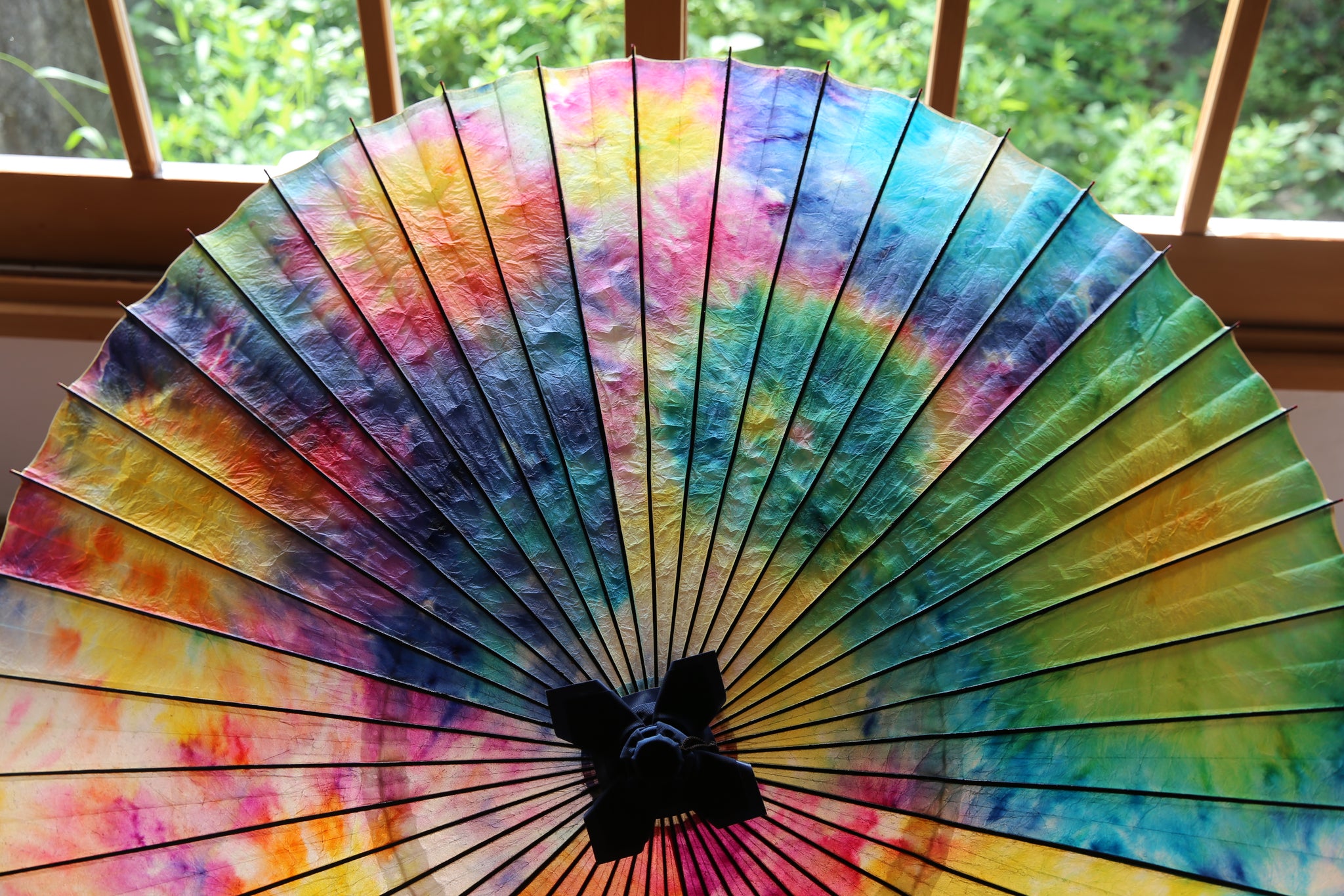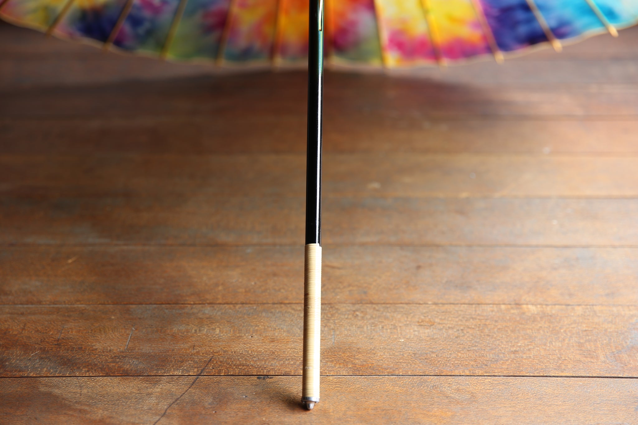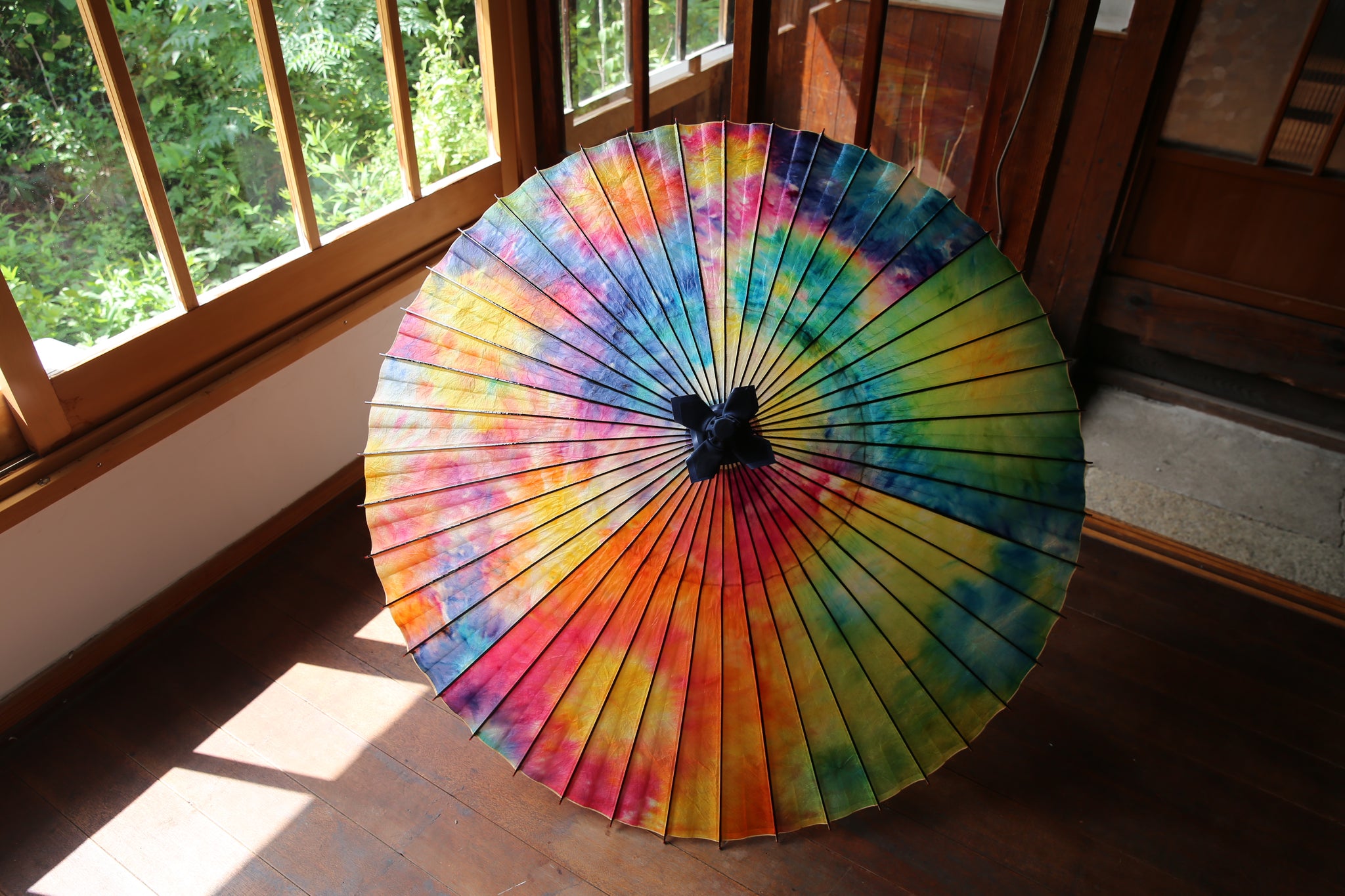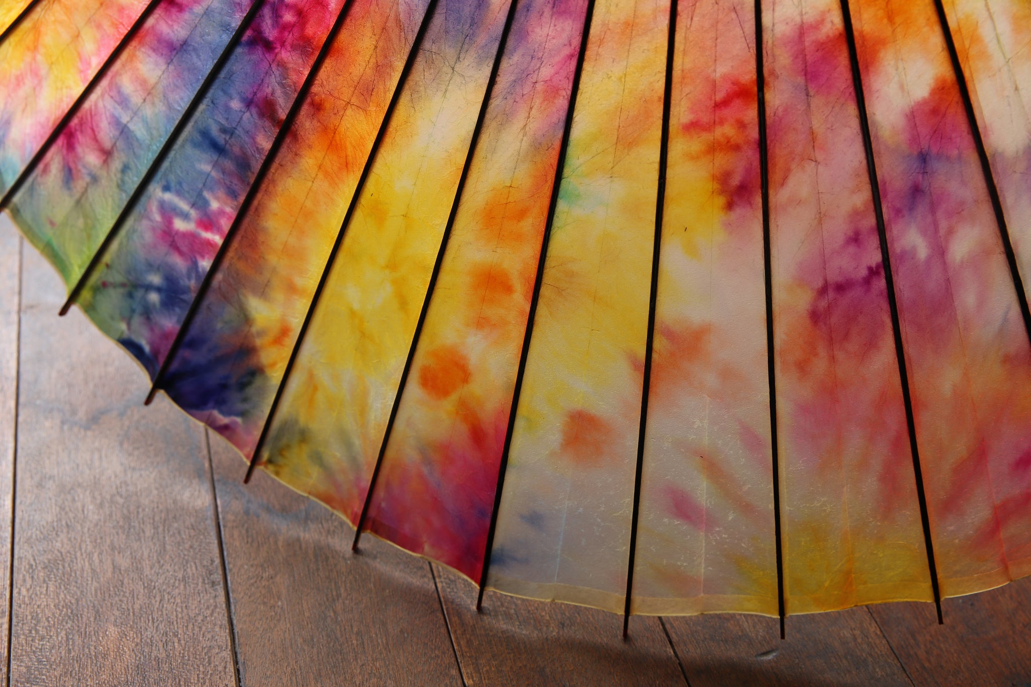 こんなに華やかな和傘は見たことがないというほどインパクトが素晴らしい、特別に美濃手漉き和紙に染めていただいた1点もの。