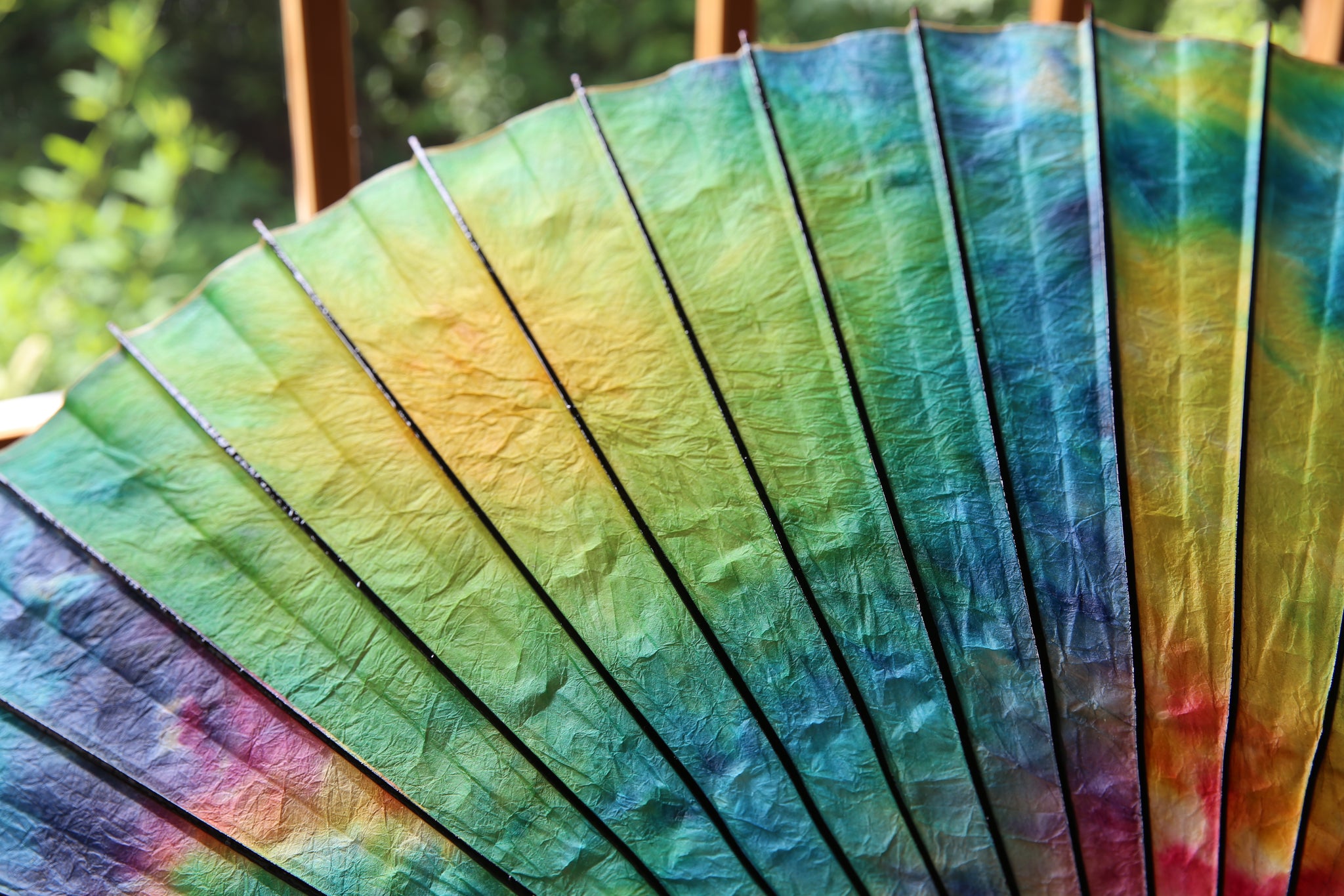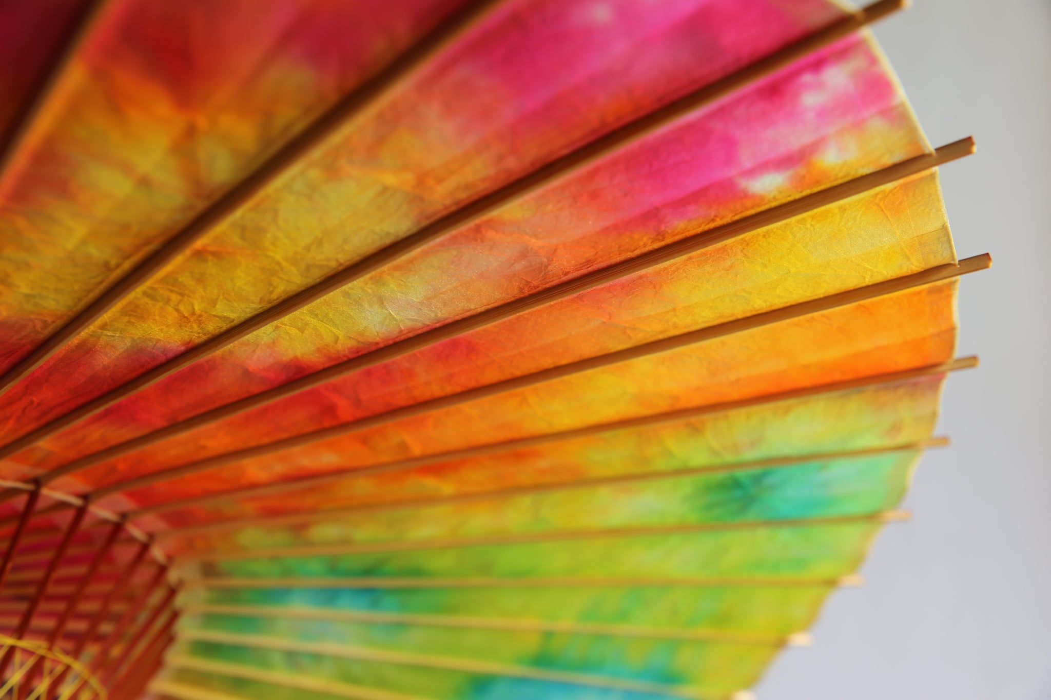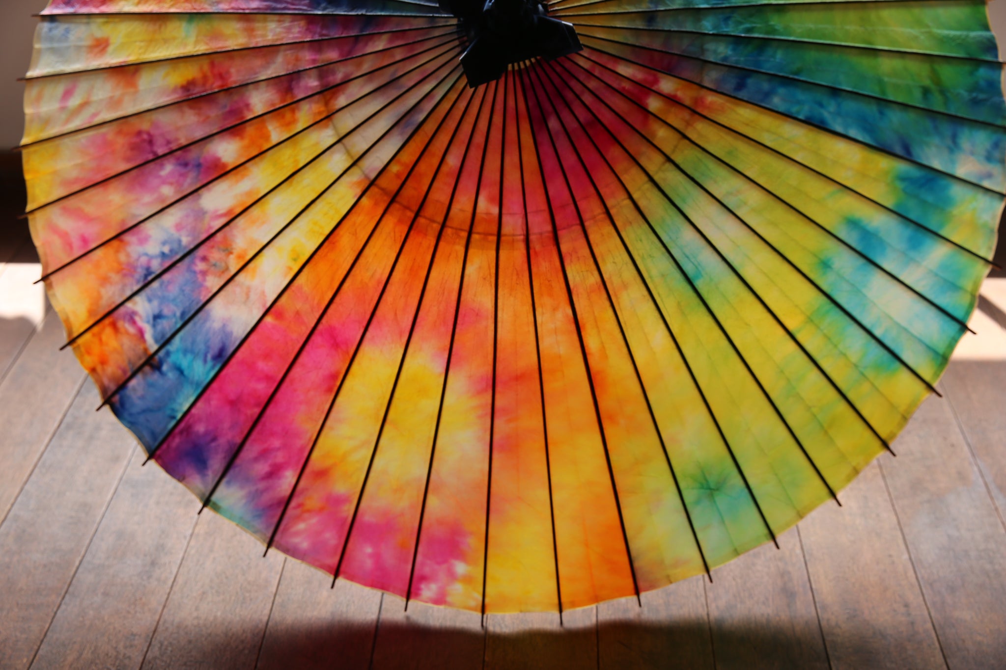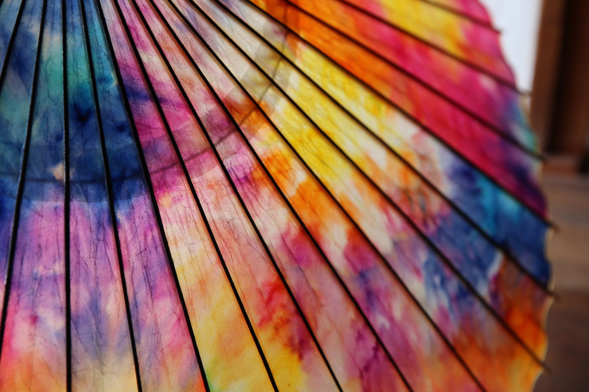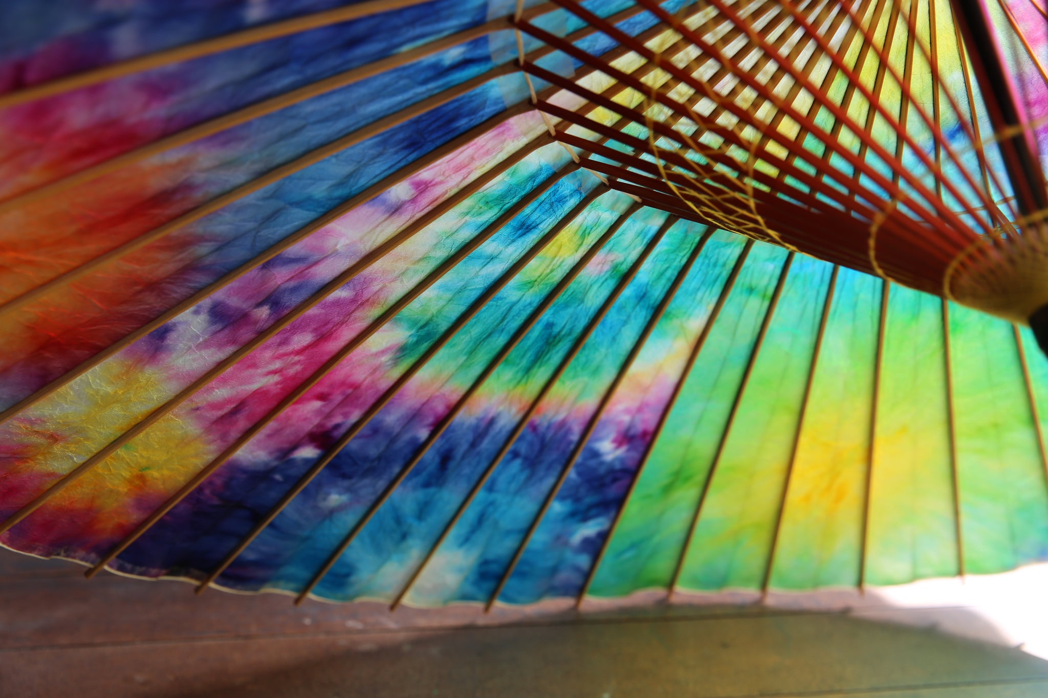 こんなに華やかな和傘は見たことがないというほどインパクトが素晴らしい、特別に美濃手漉き和紙に染めていただいた1点もの。