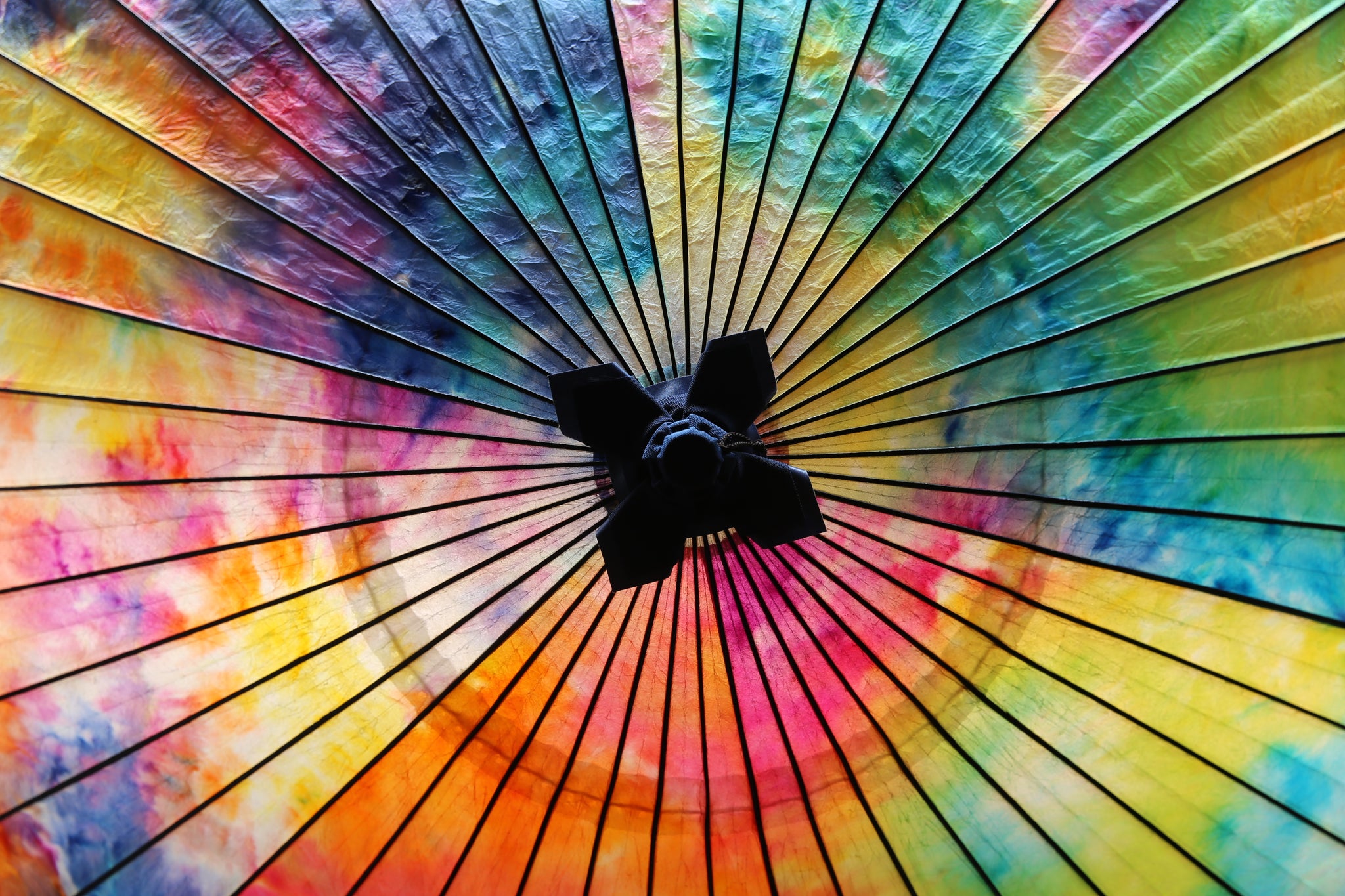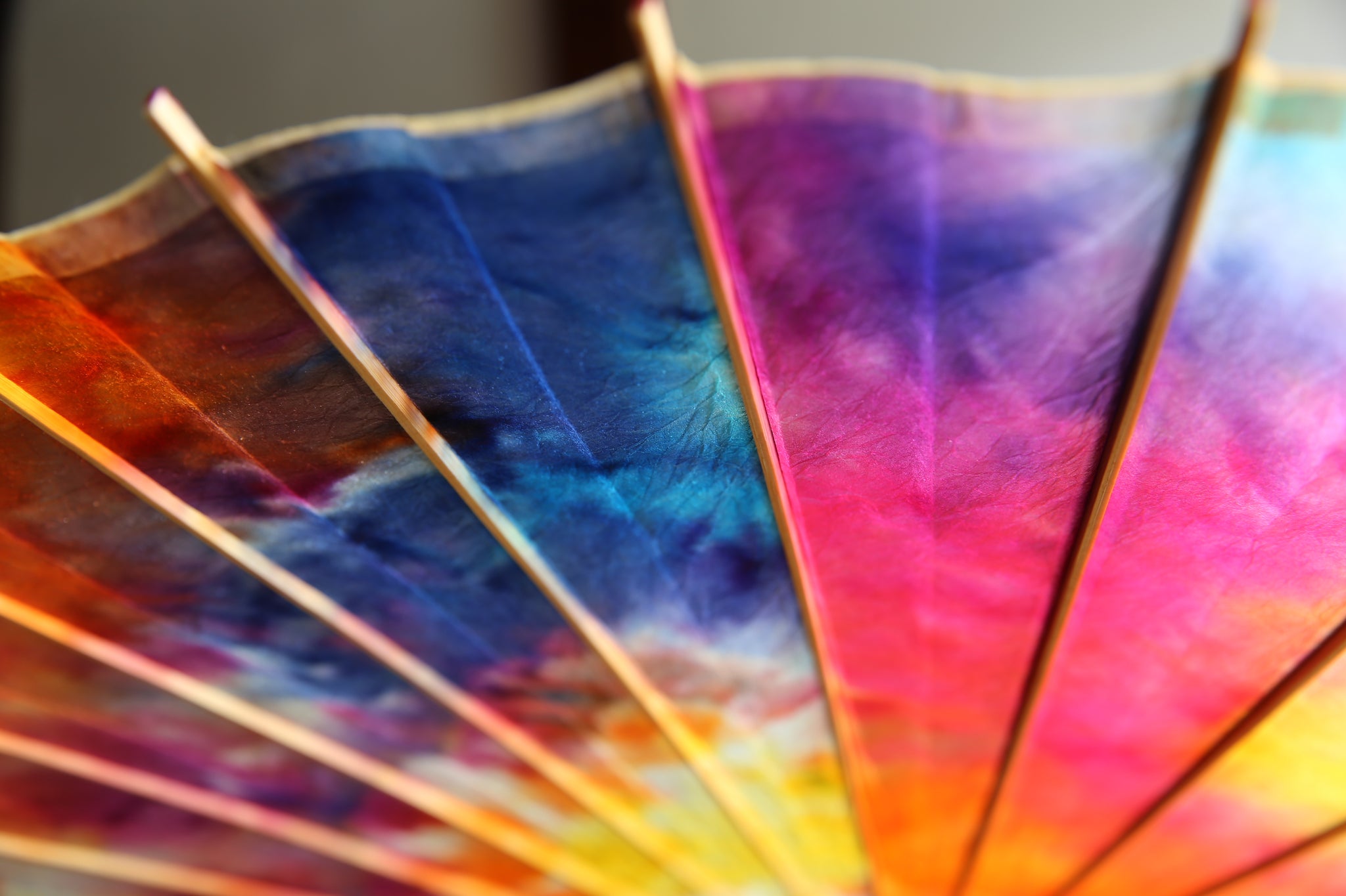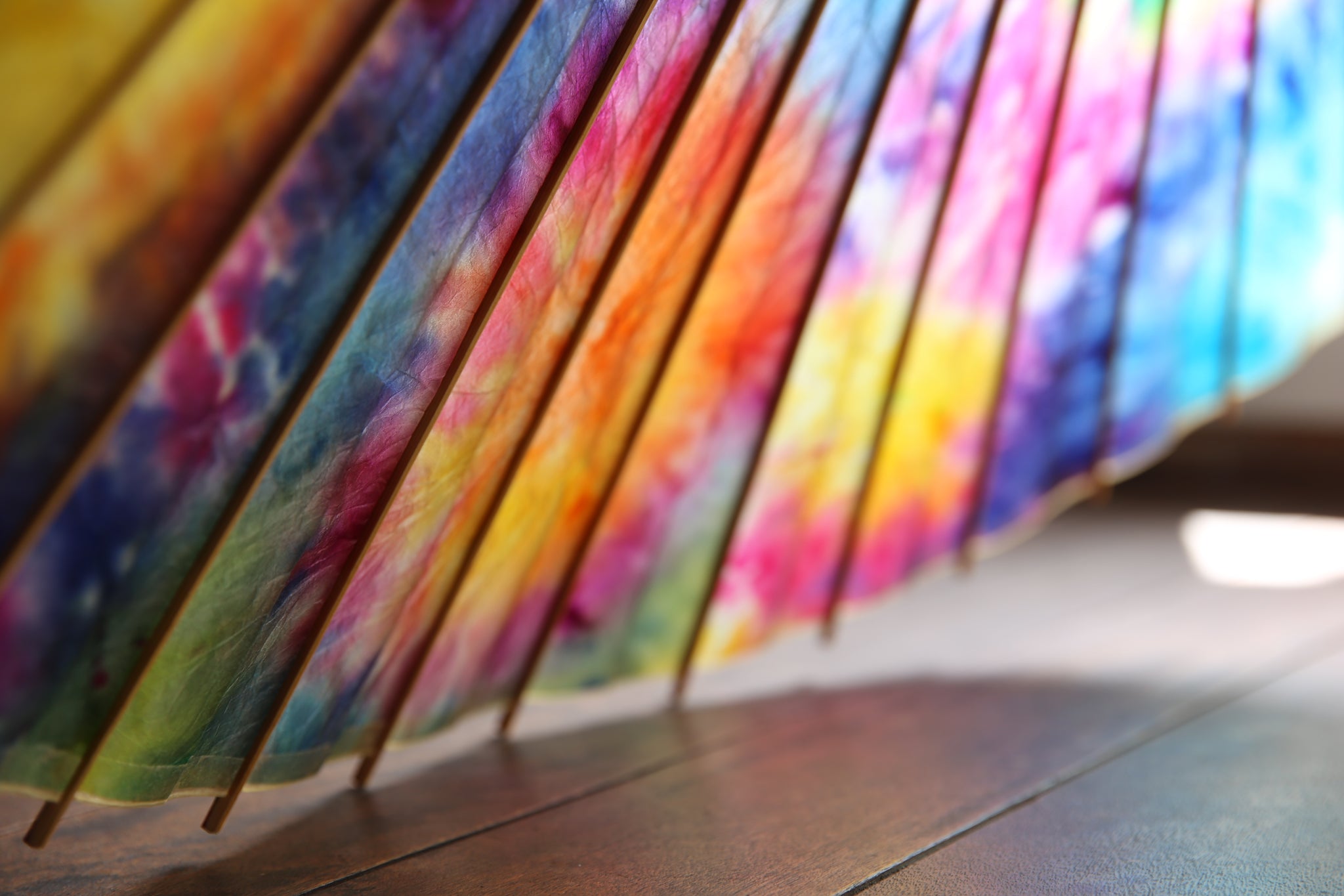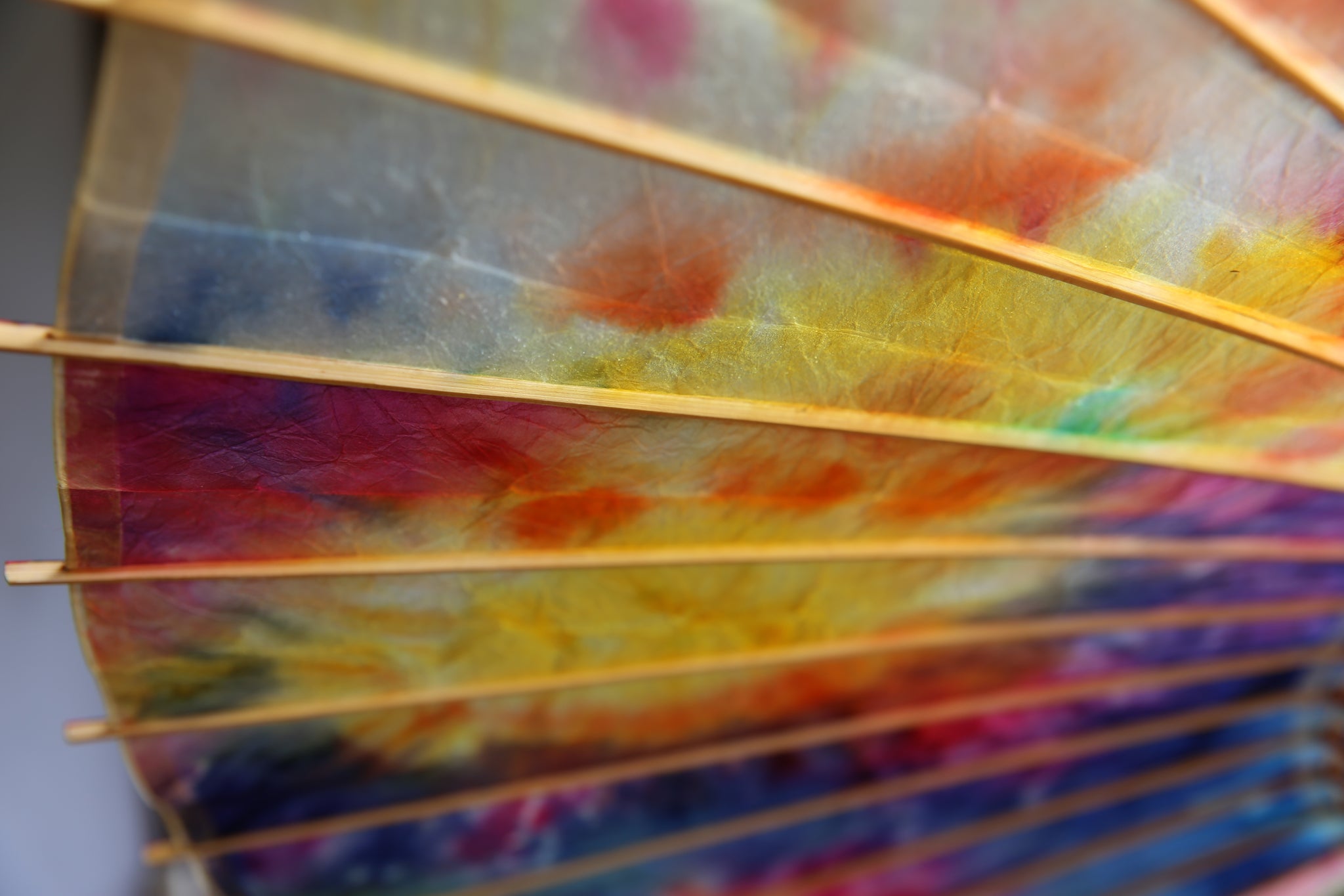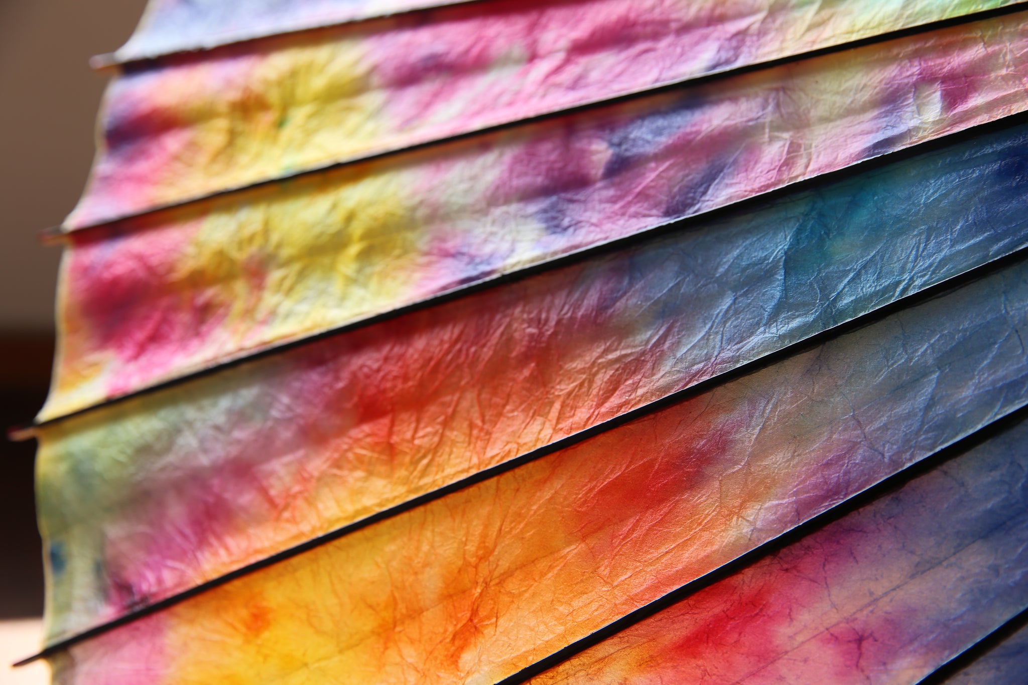 こんなに華やかな和傘は見たことがないというほどインパクトが素晴らしい、特別に美濃手漉き和紙に染めていただいた1点もの。