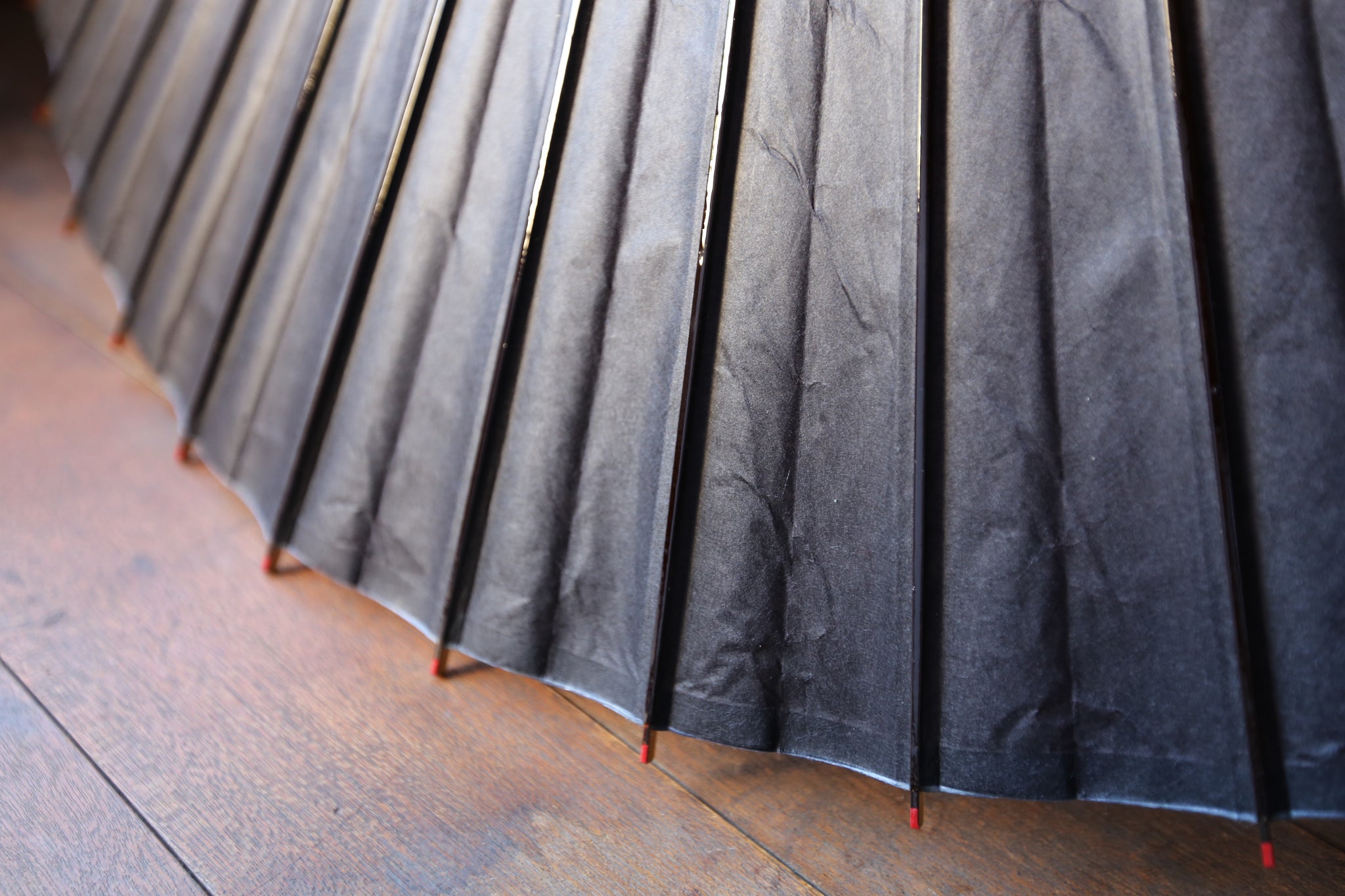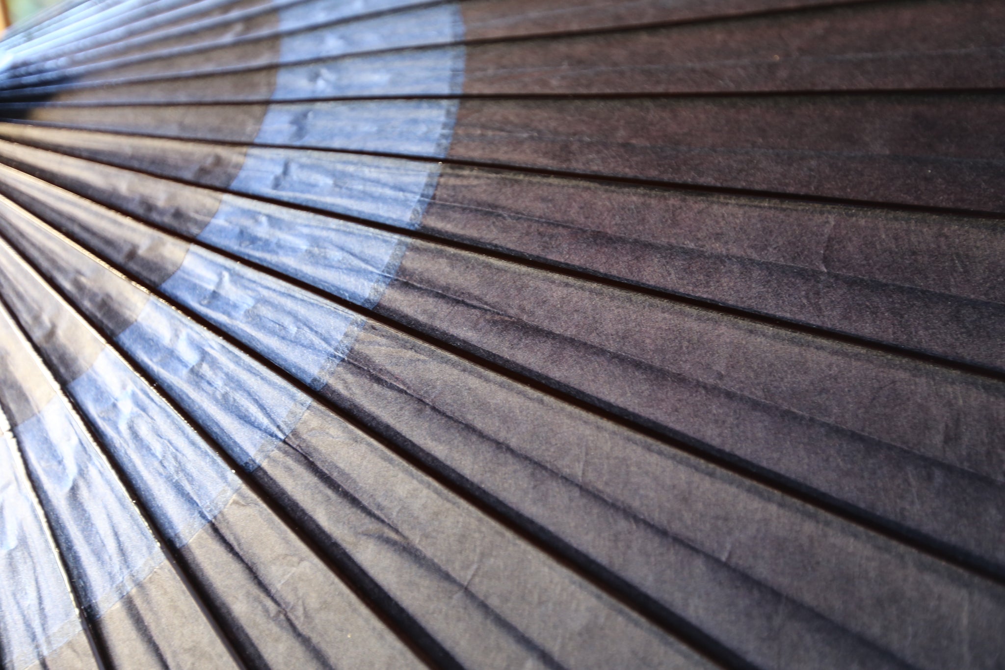和傘の骨組みは、1本の竹を均等に割り、傘を畳んだ際に元の竹に戻るように組まれています。