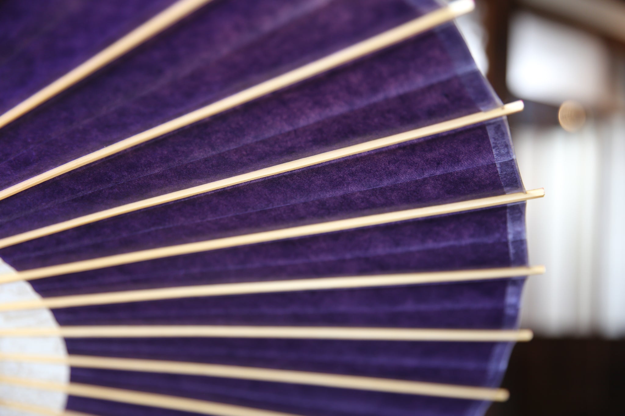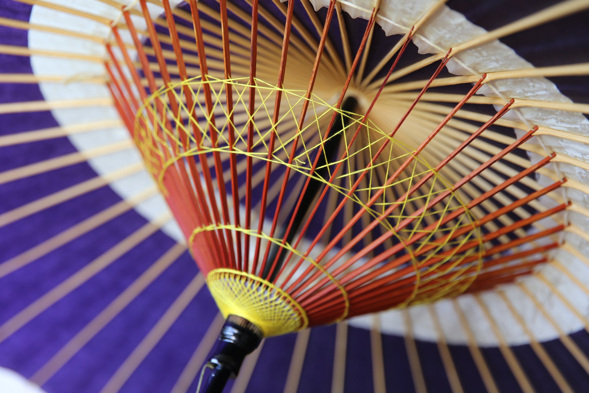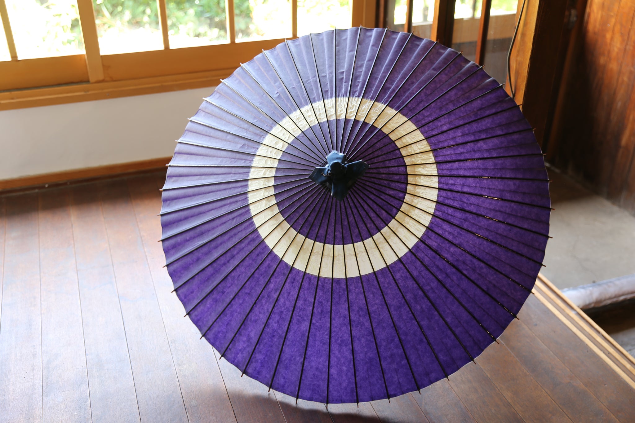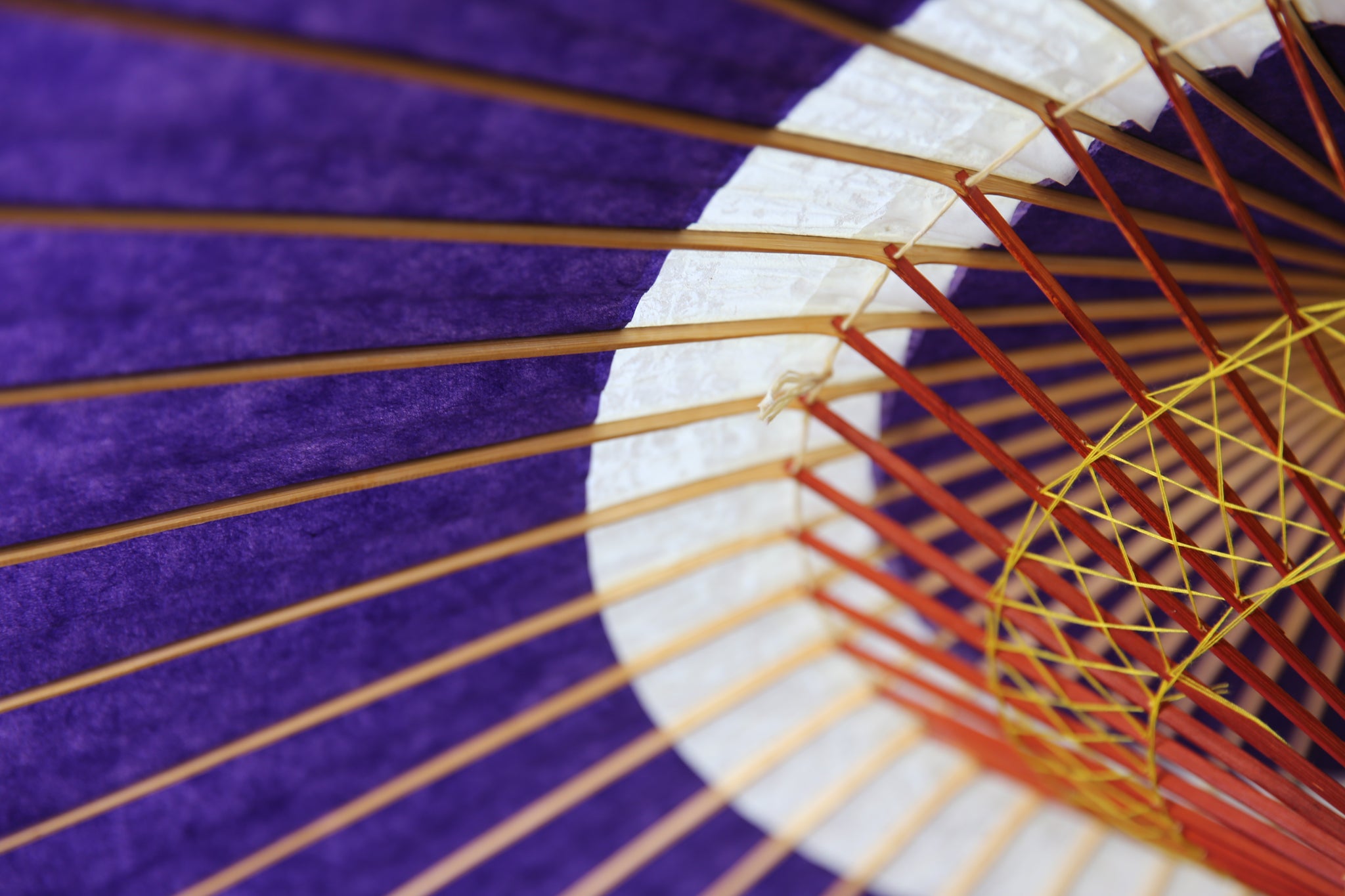 和傘の骨組みは、1本の竹を均等に割り、傘を畳んだ際に元の竹に戻るように組まれています。