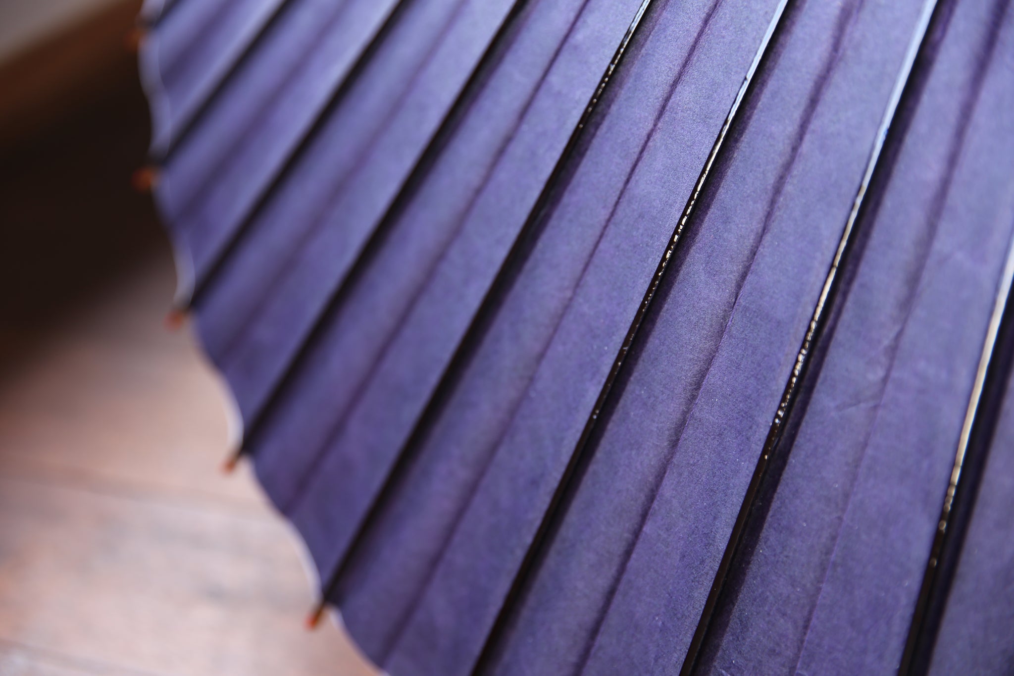 鮮やかな紫色の和紙と、幸草紙工房のムラに胡粉引きされた美濃手漉き和紙の組み合わせ。