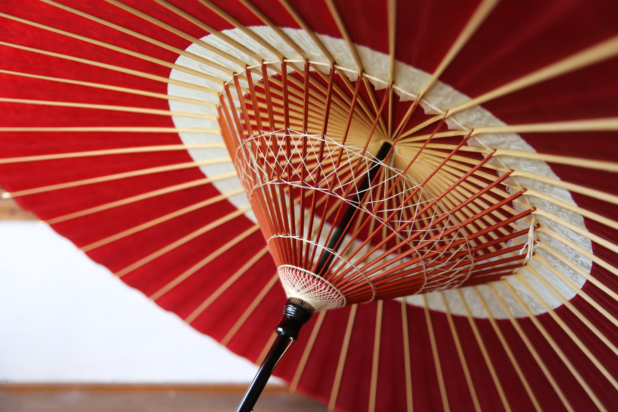 「開いて花、閉じて竹」と謳われる和傘は、職人の熟練の技と、細部に至るこだわりが詰まった日本の伝統的な工芸品です。