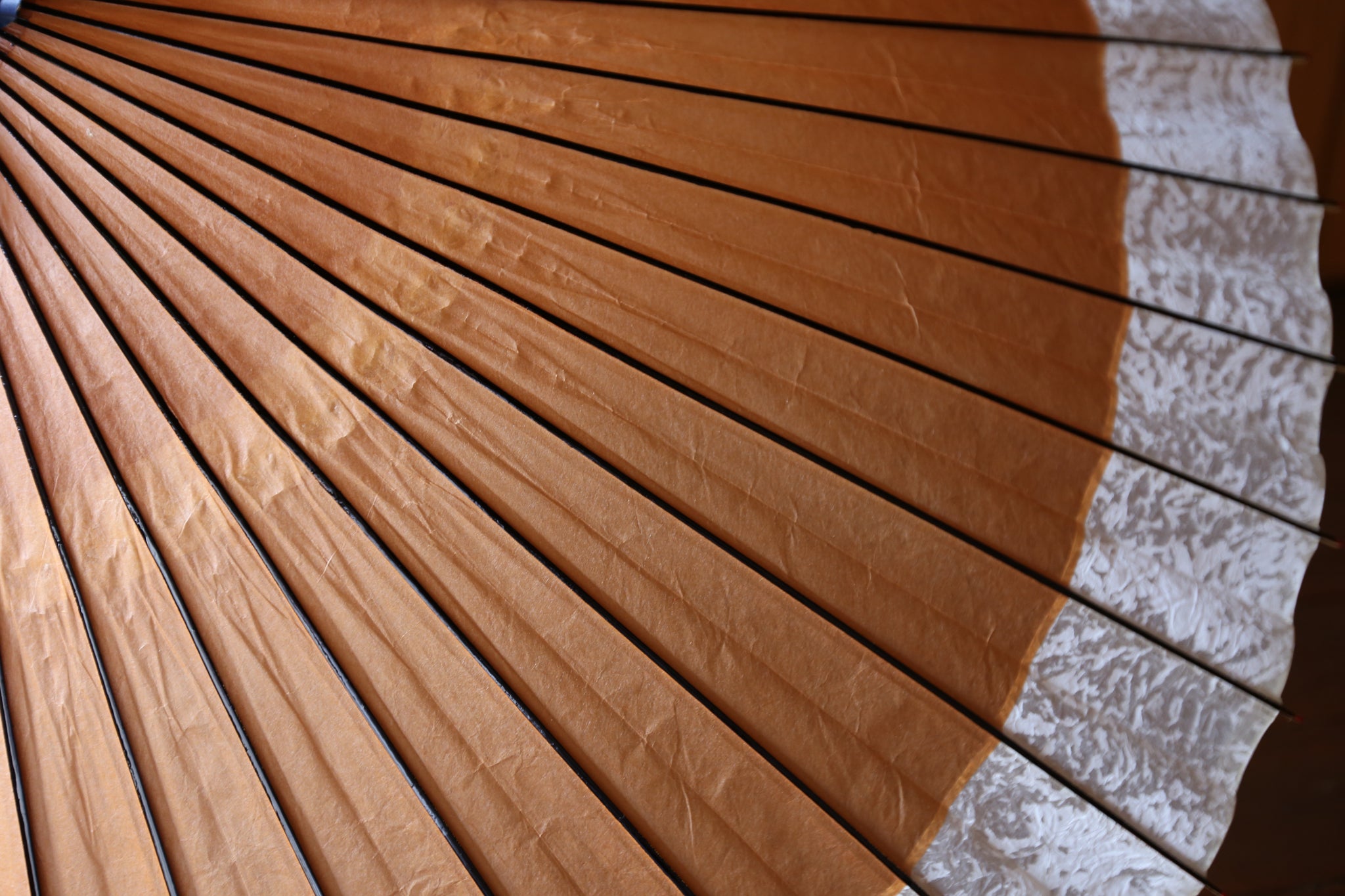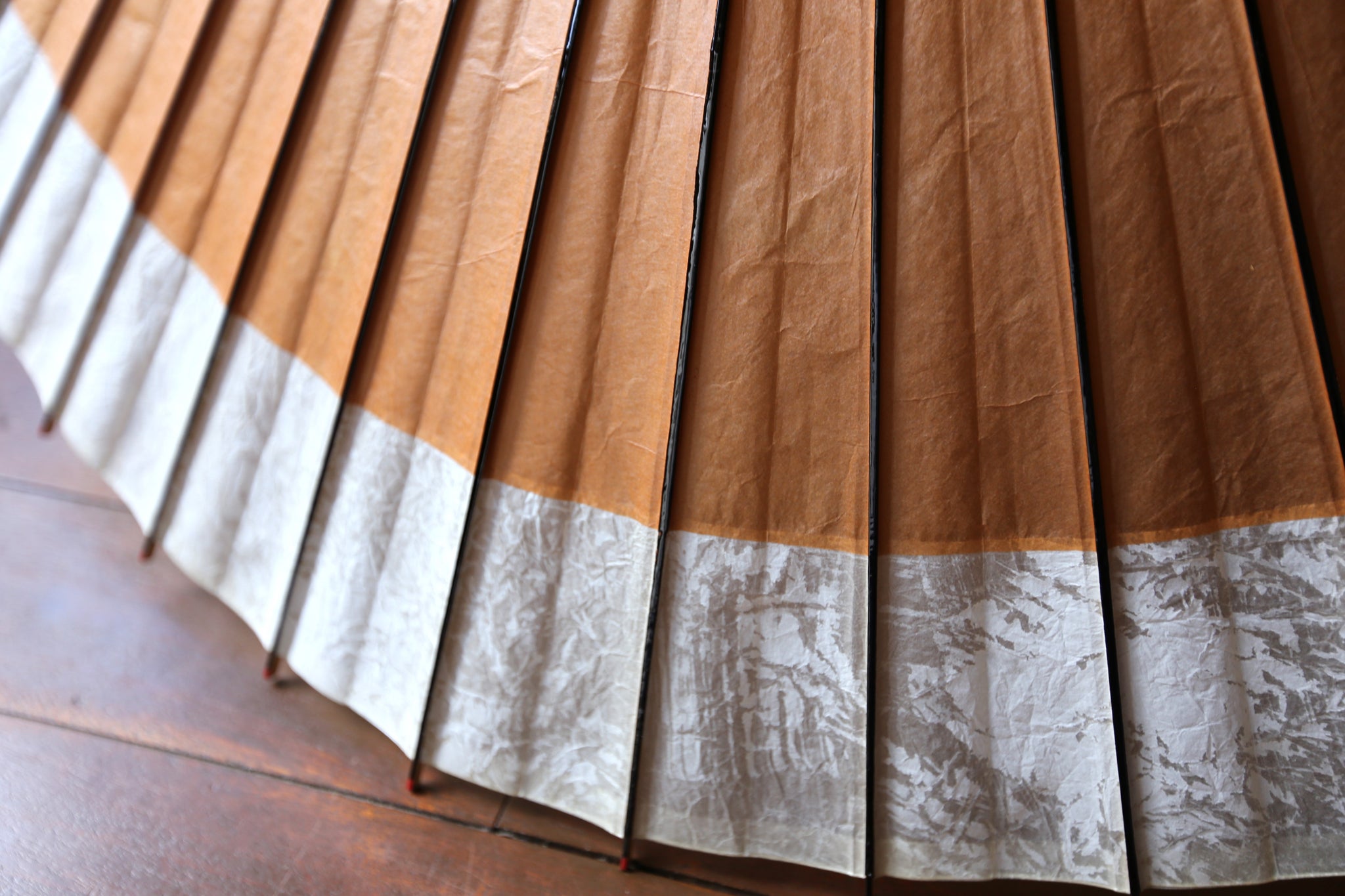 オレンジ色に近い明るい茶色が特徴の柿渋原液で染めた幸草紙工房の美濃手漉き和紙を使用。