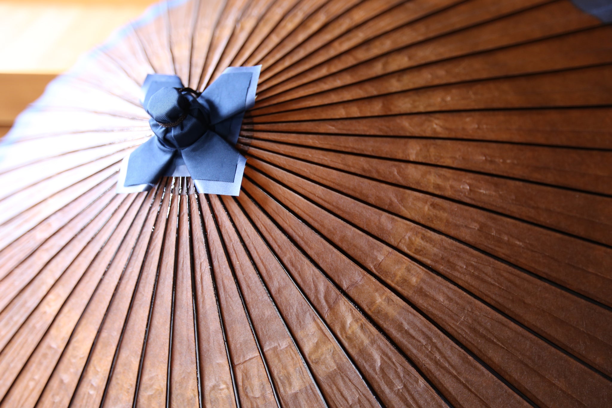 和傘の骨組みは、1本の竹を均等に割り、傘を畳んだ際に元の竹に戻るように組まれています。