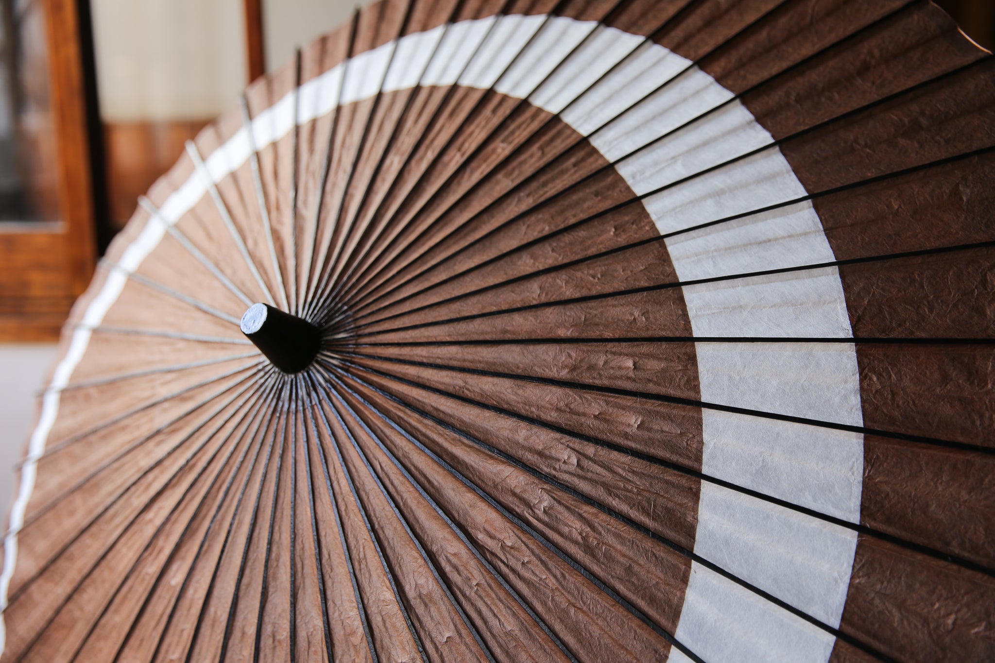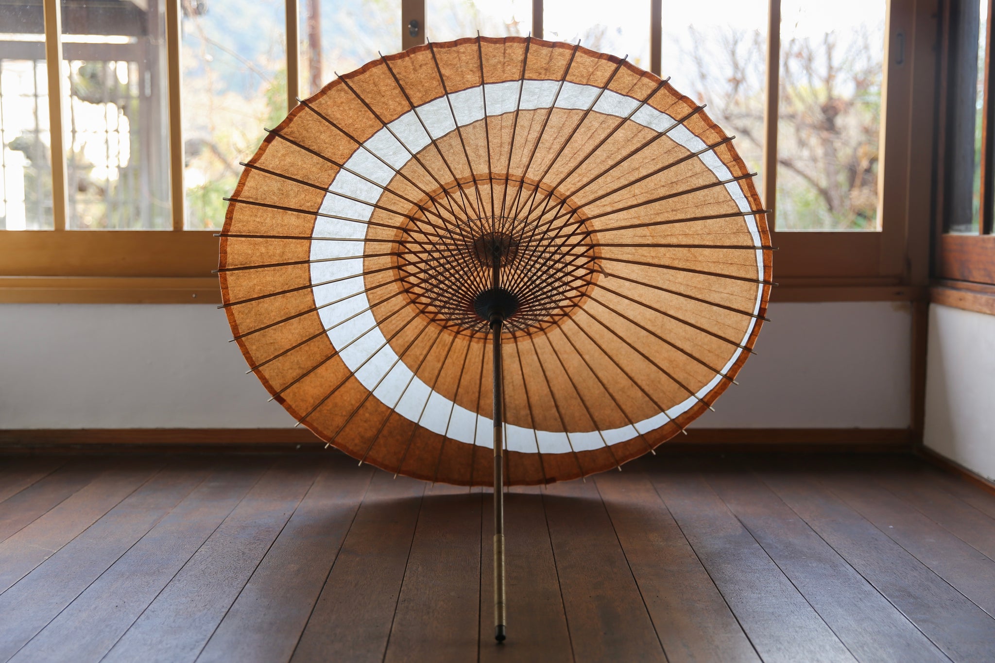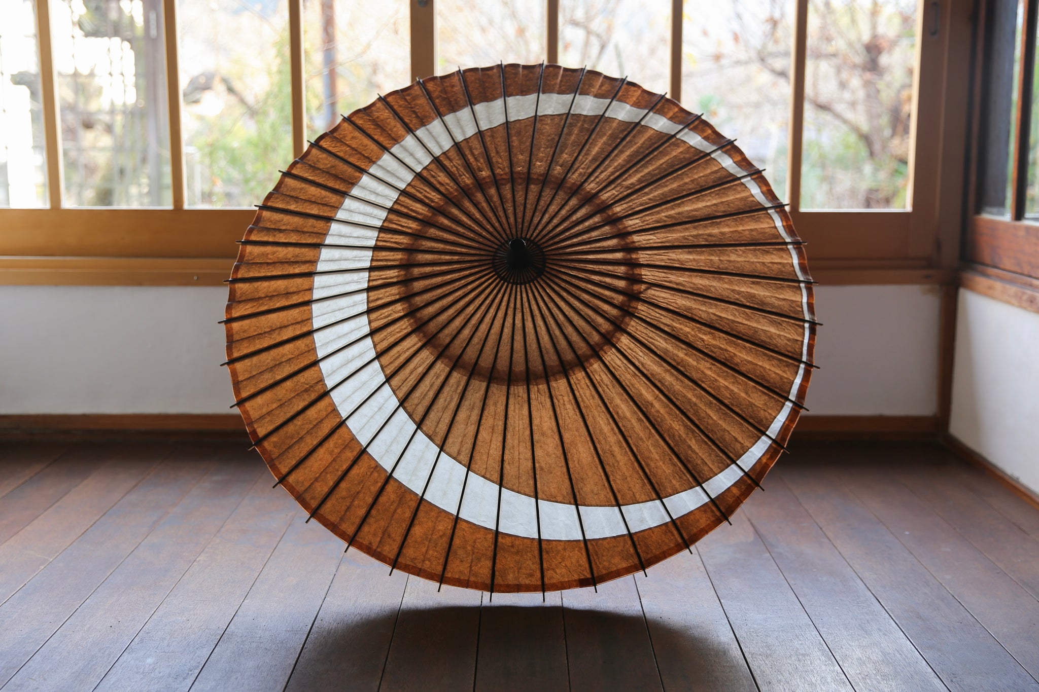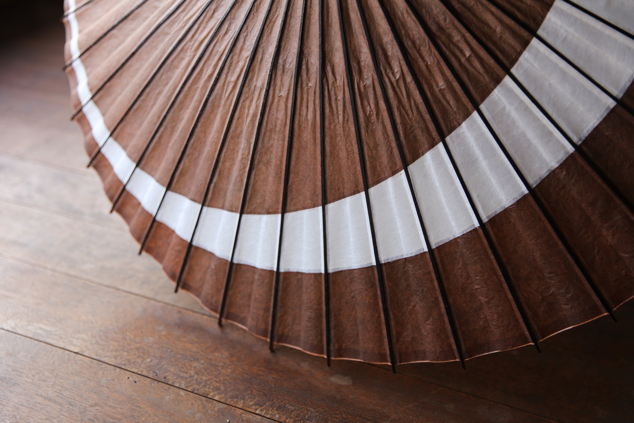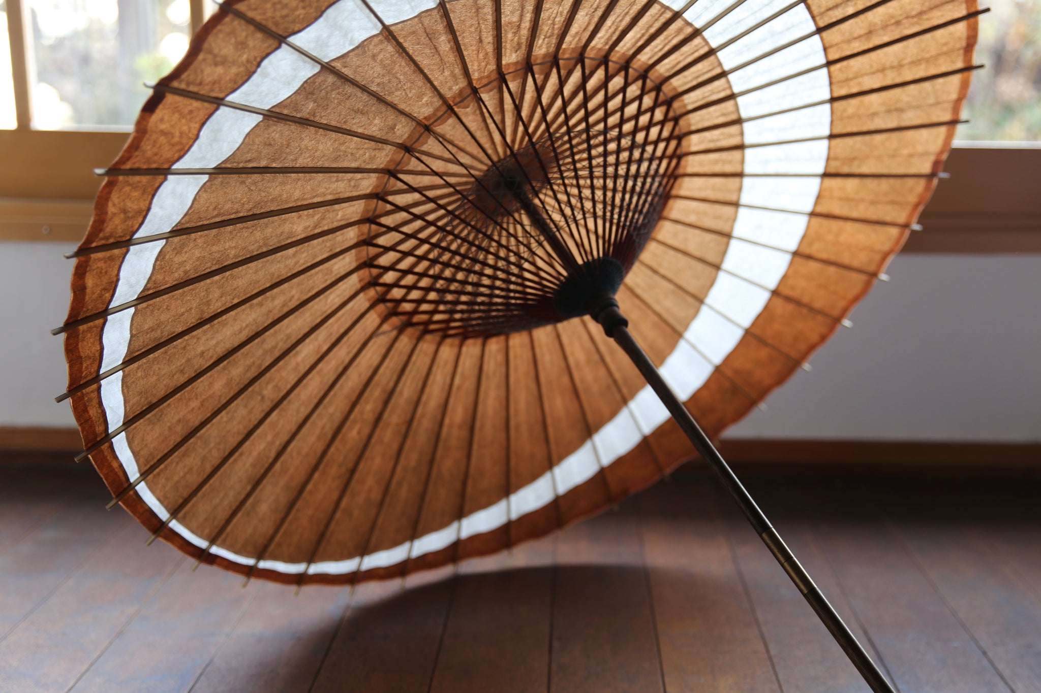 月奴の円弧が二重になってまるで三日月のような美しい張り方の和傘。