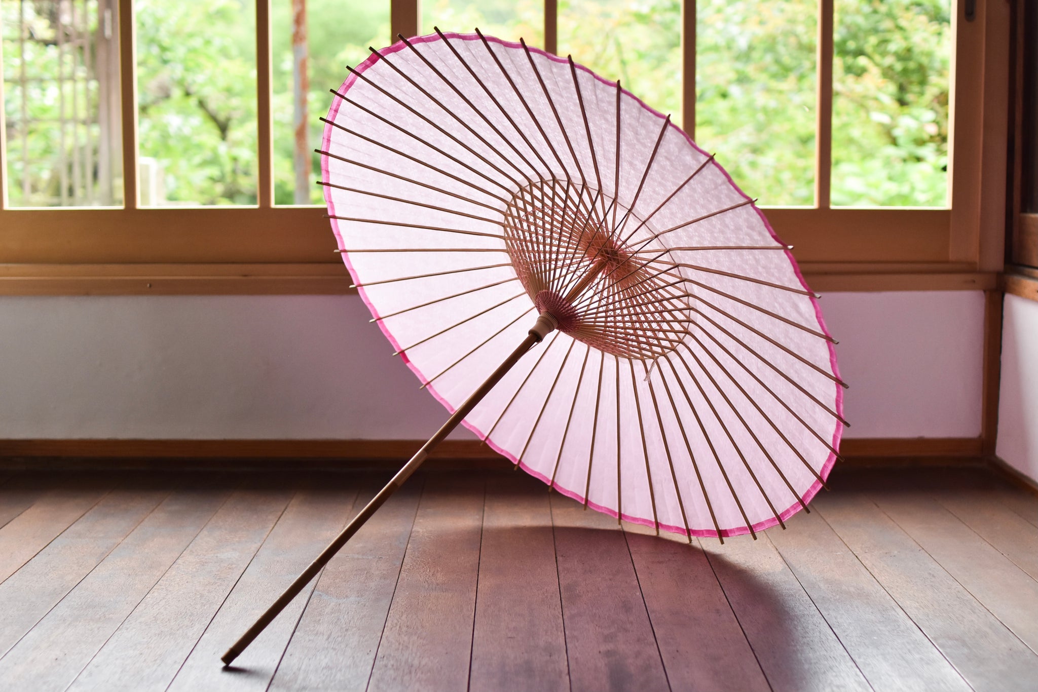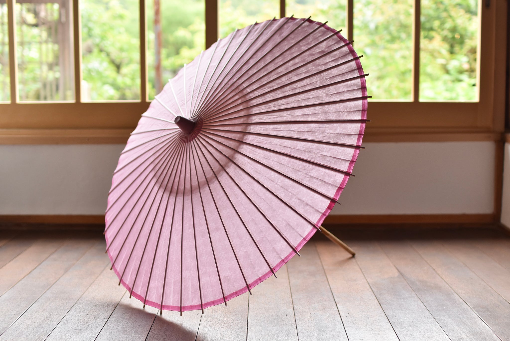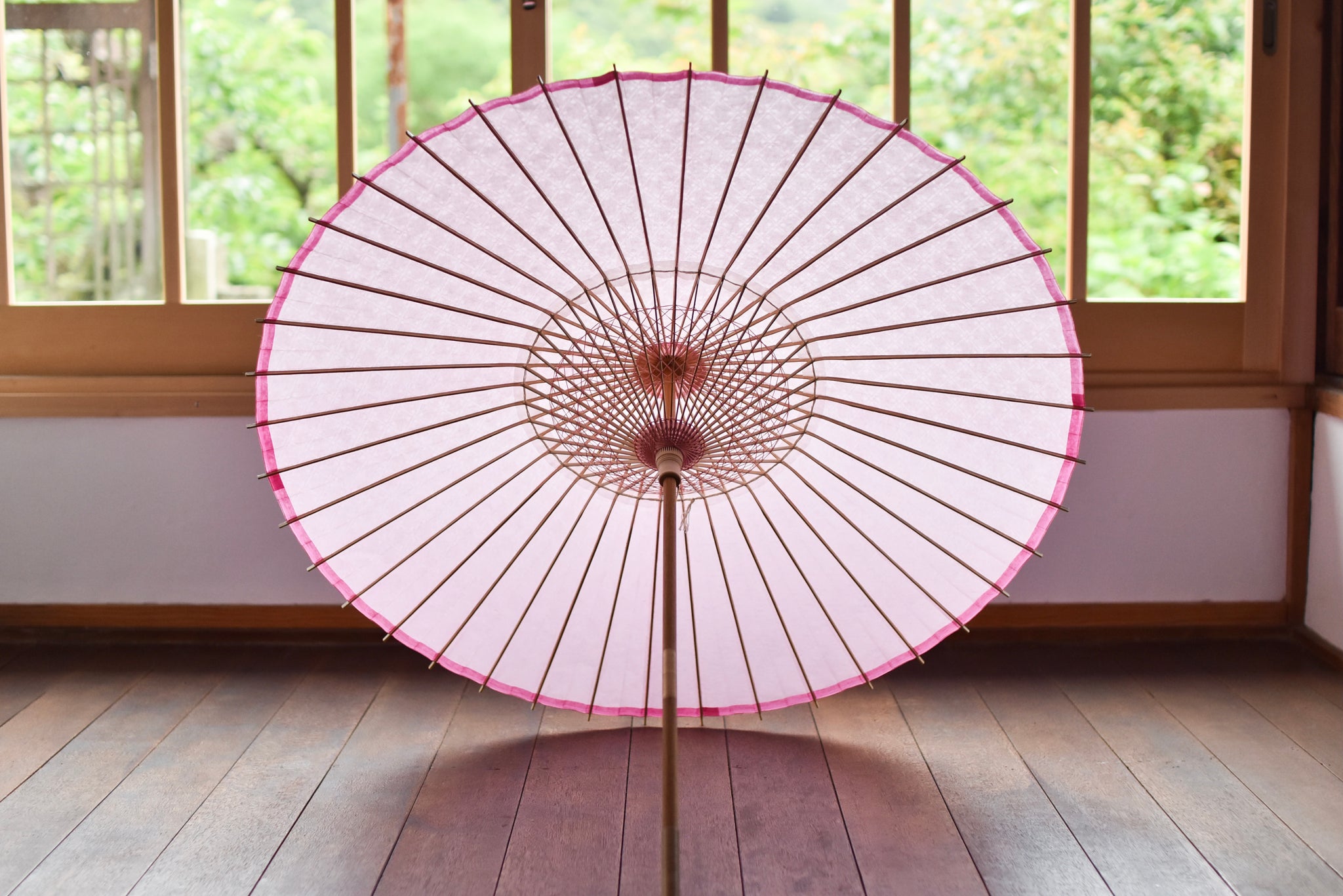 「開いて花、閉じて竹」と謳われる和傘は、職人の熟練の技と、細部に至るこだわりが詰まった日本の伝統的な工芸品です。
