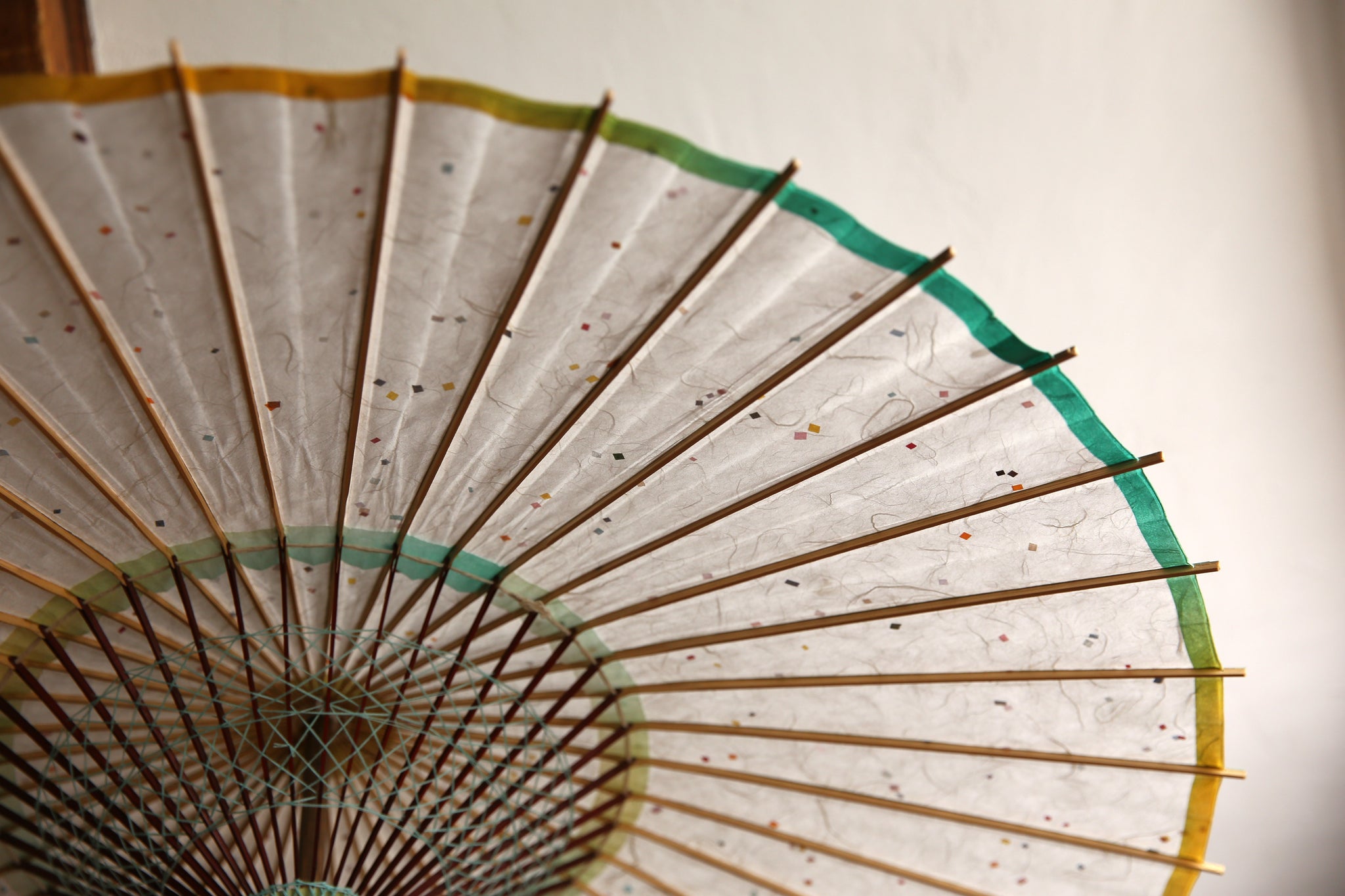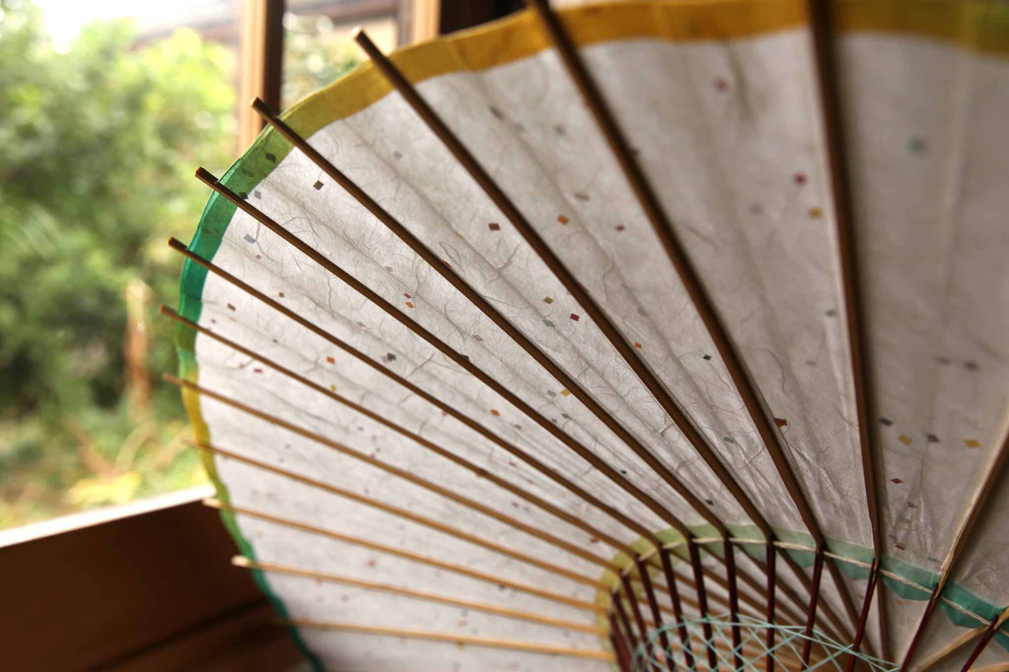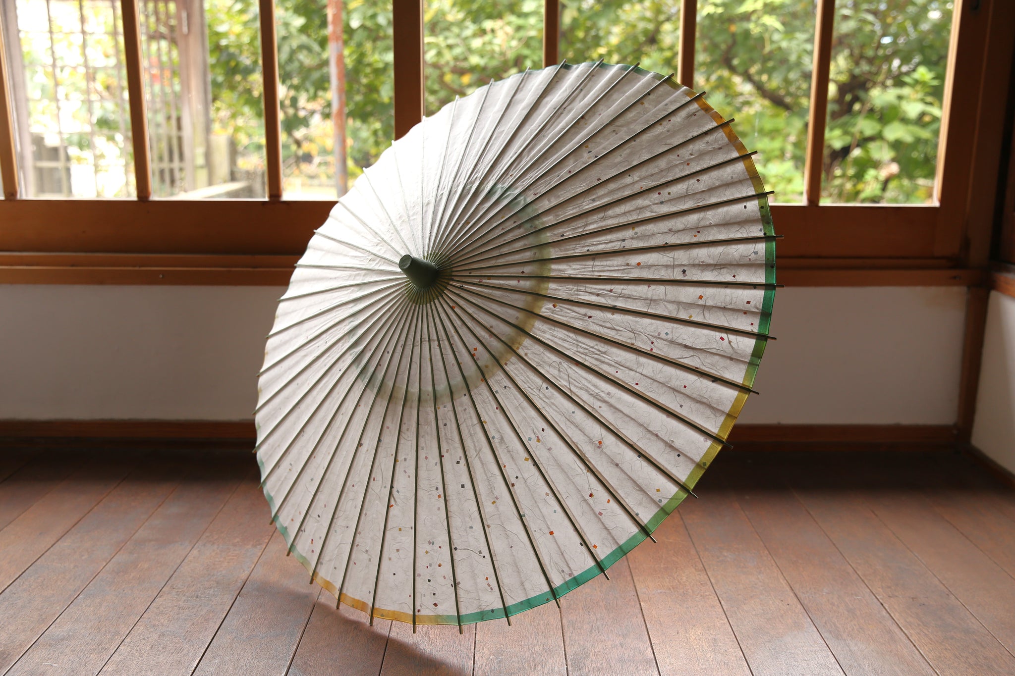 軒紙のグリーンからイエローのぼかし染が爽やか。 白い和紙に映えます。