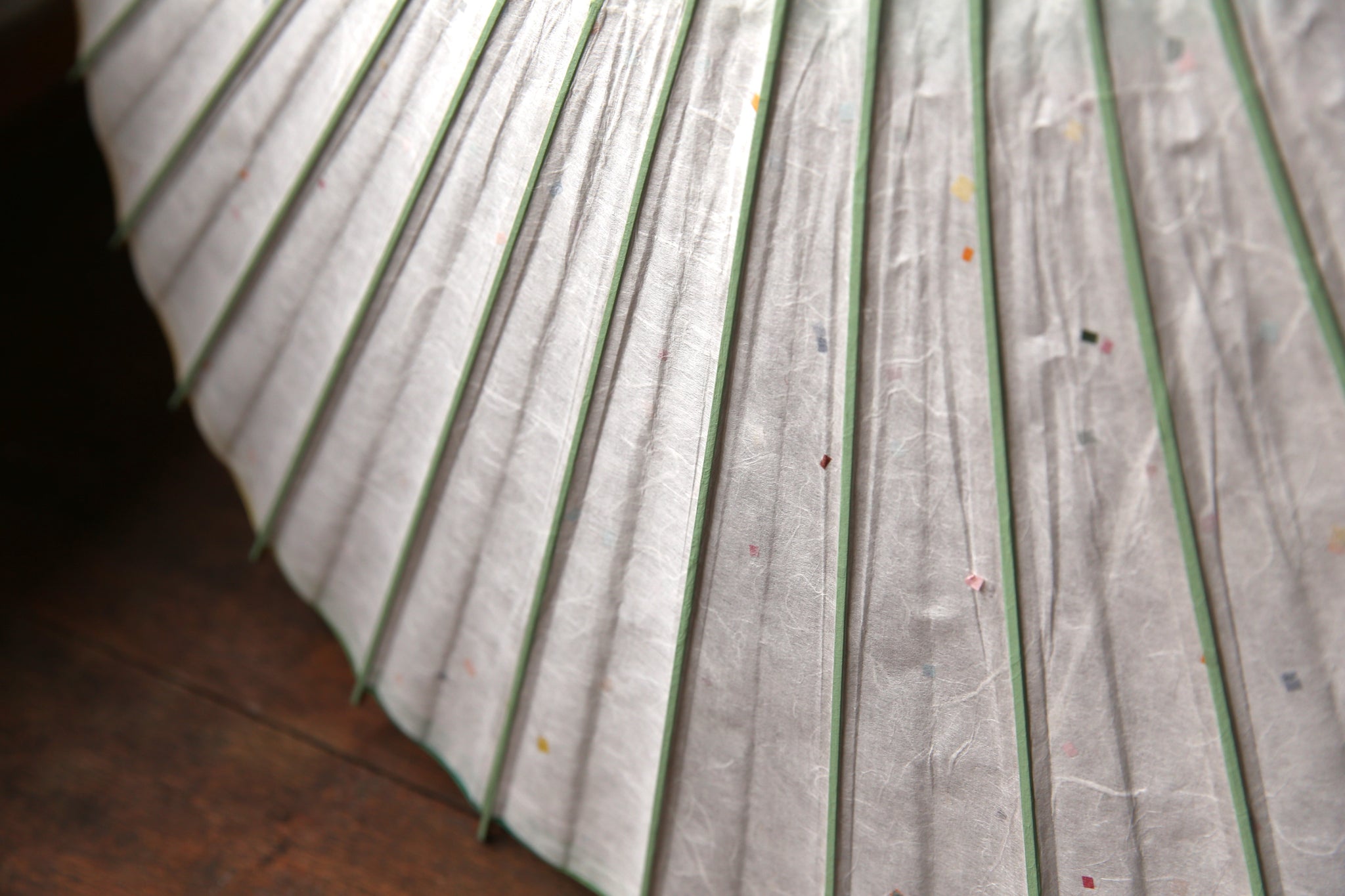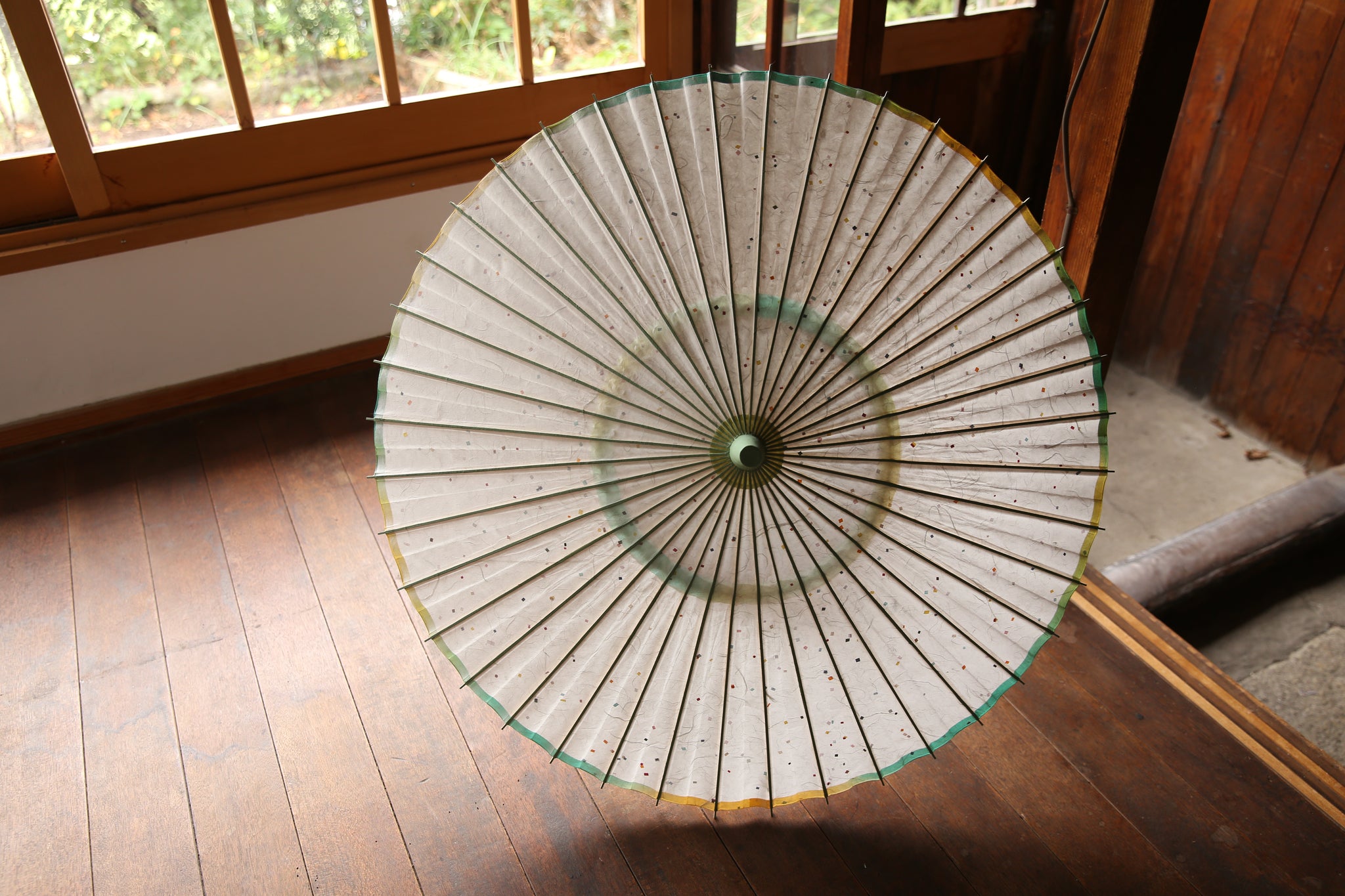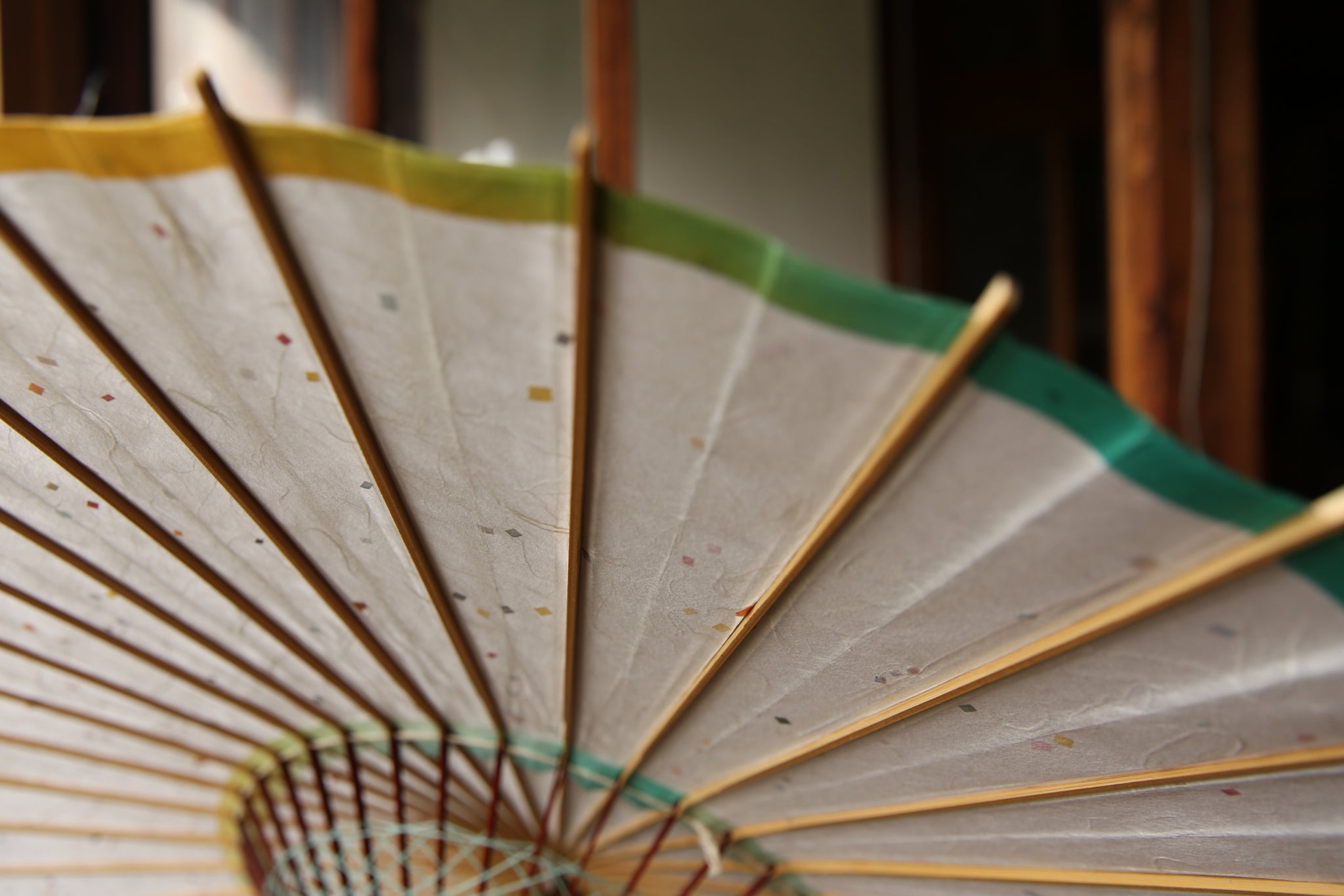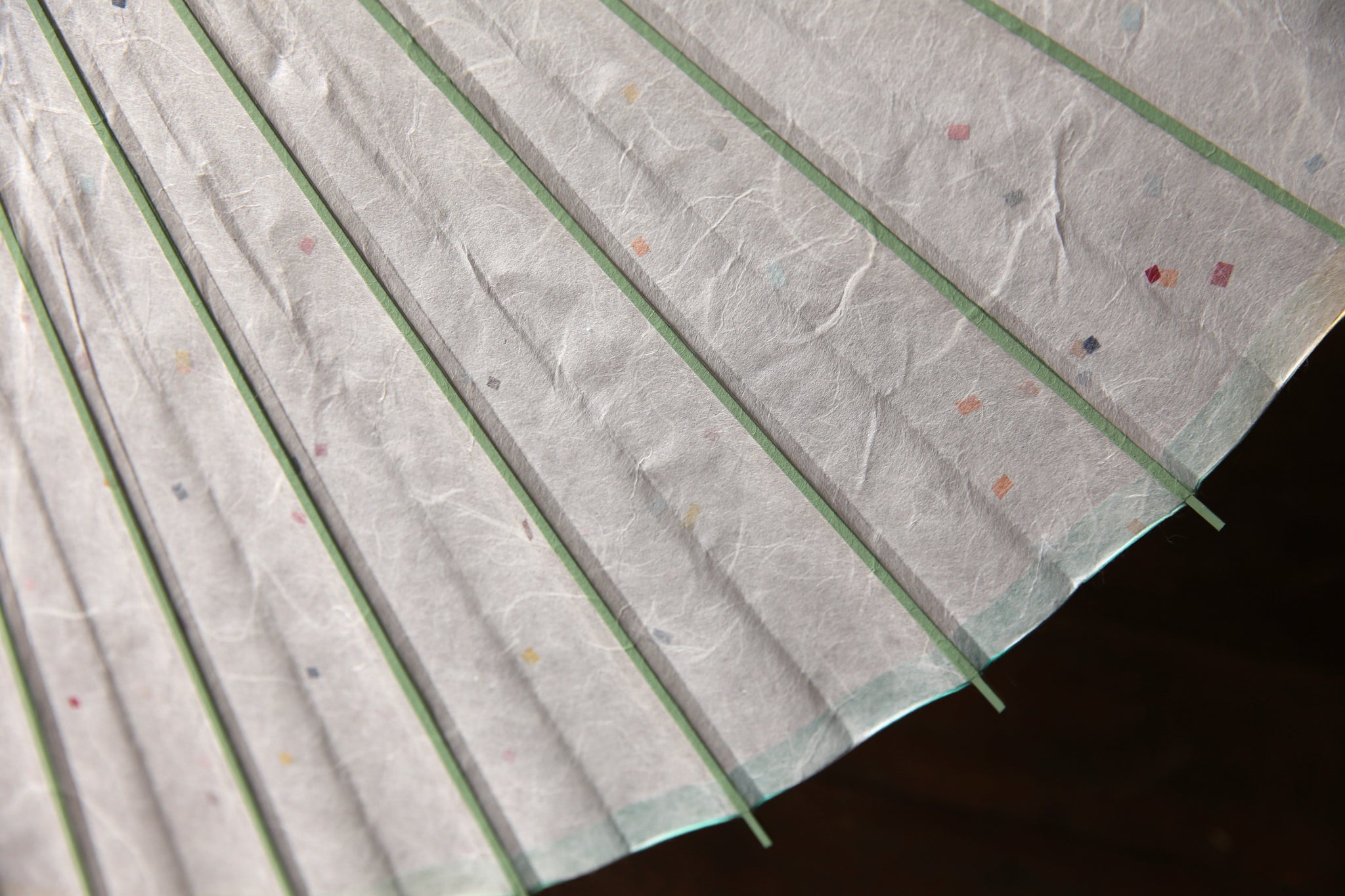 軒紙のグリーンからイエローのぼかし染が爽やか。 白い和紙に映えます。
