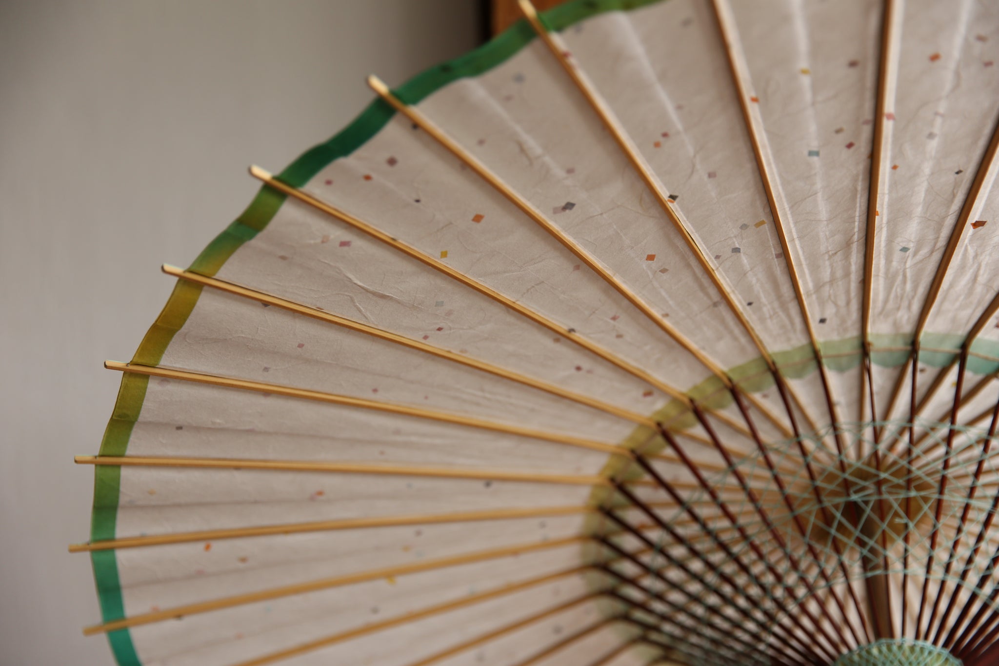 「開いて花、閉じて竹」と謳われる和傘は、職人の熟練の技と、細部に至るこだわりが詰まった日本の伝統的な工芸品です。