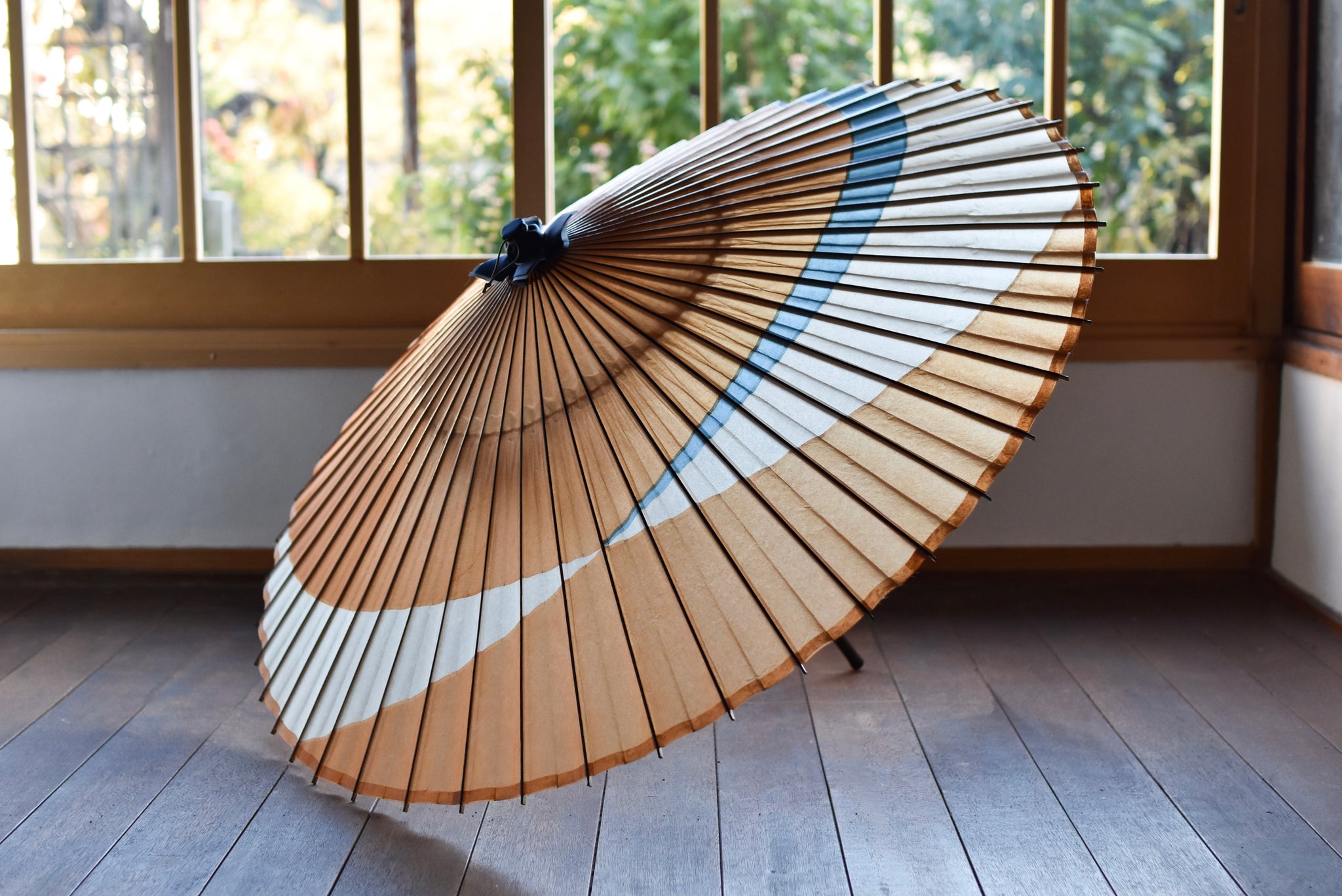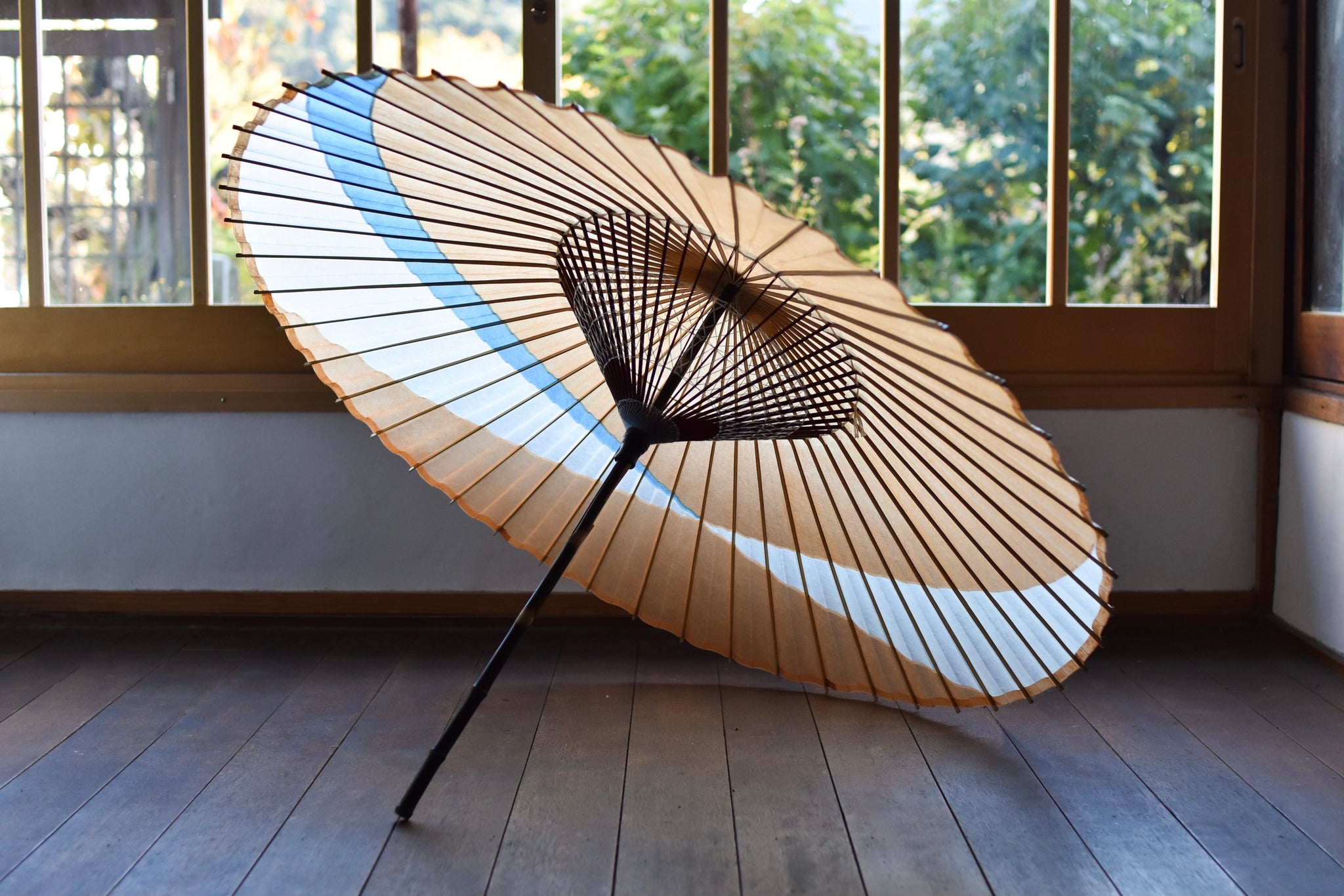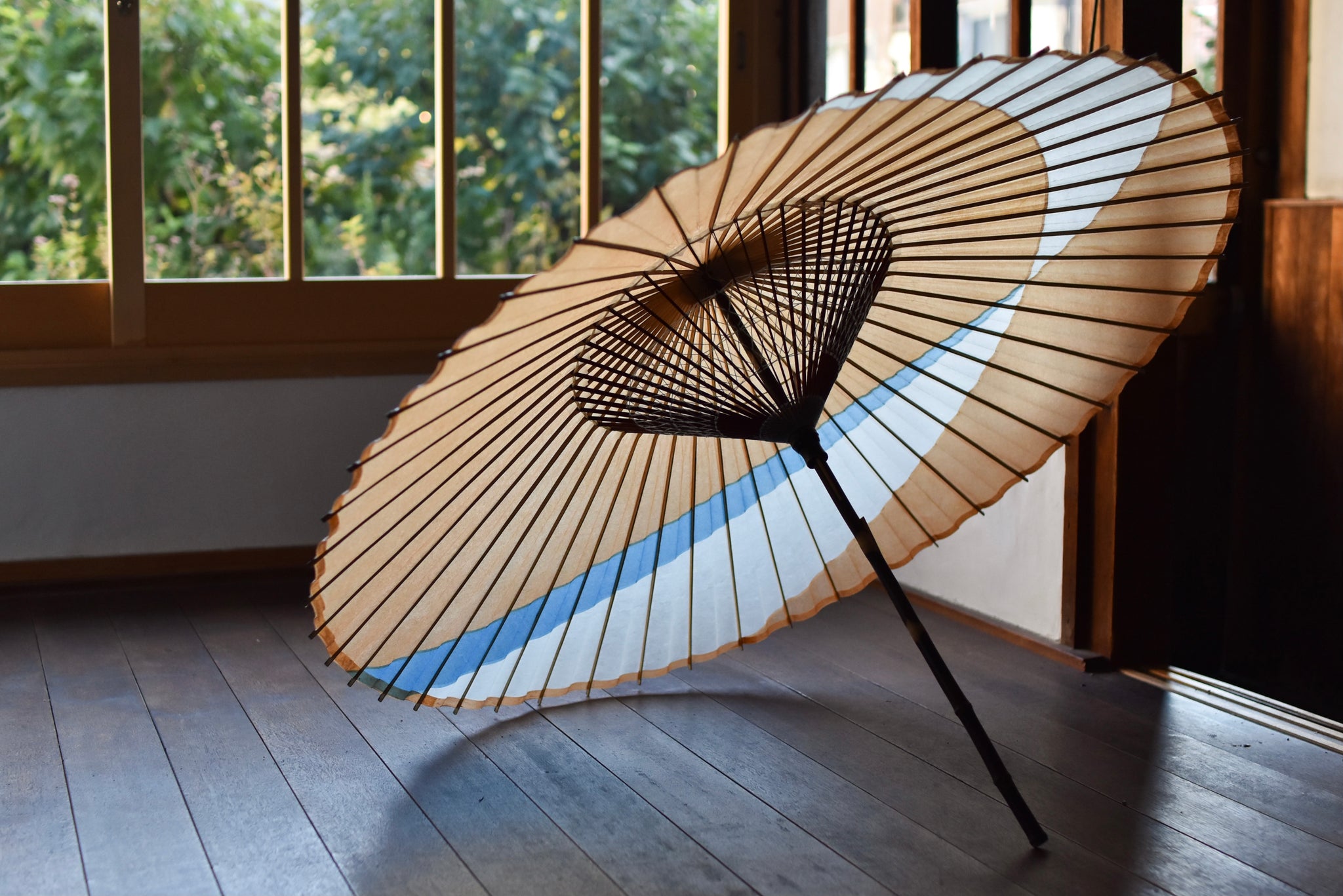 「交叉」と名付けられたシャープで粋な張り方の和傘。