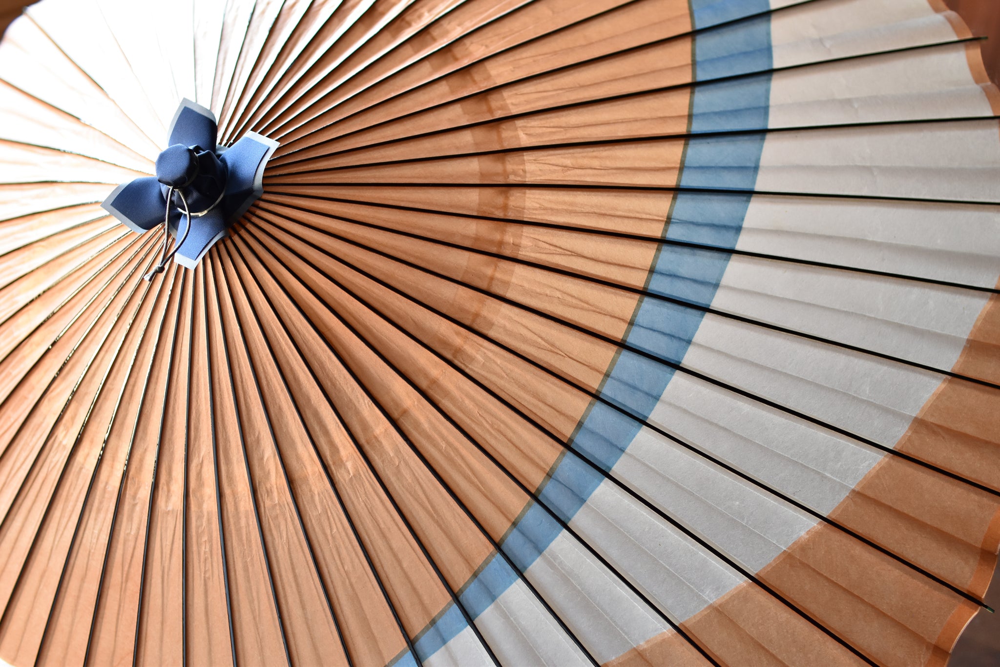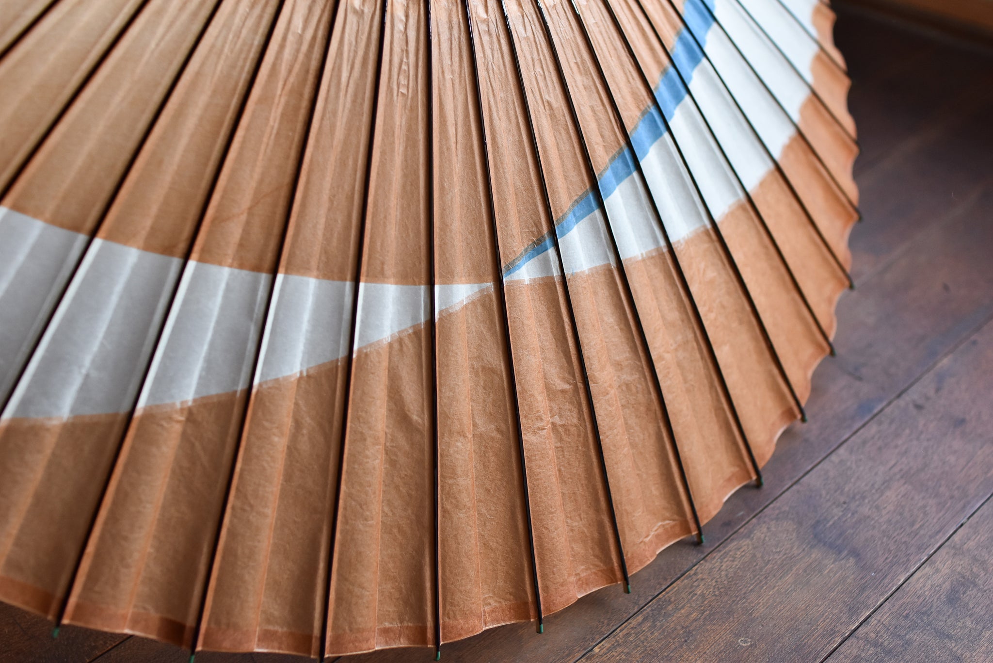 オレンジ寄りの色味の柿渋染和紙に水色のさし色が爽やか。