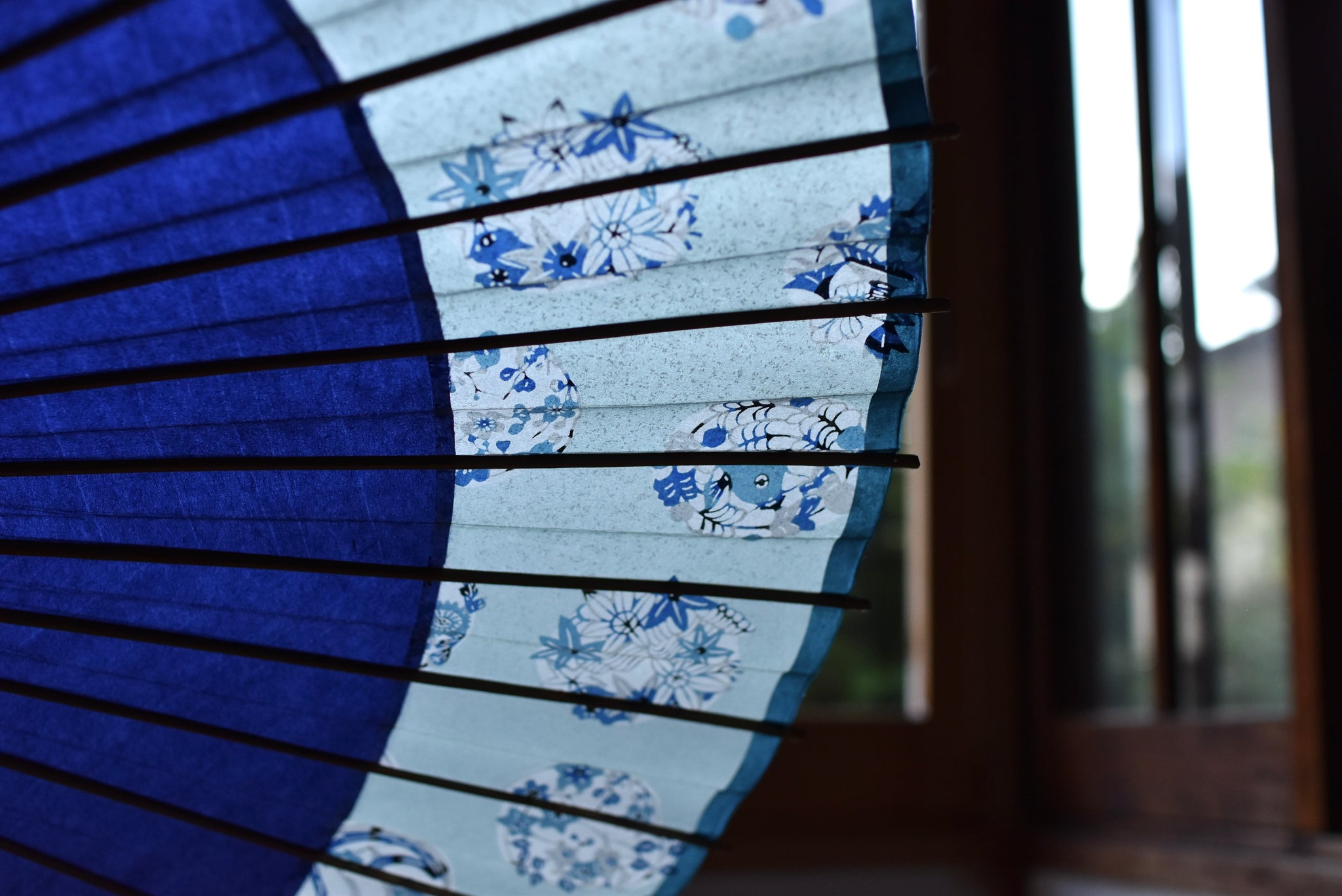 シンプルな紺色の和紙と、四君子と呼ばれる大変華やかな柄の和紙を組み合わせた軒奴。