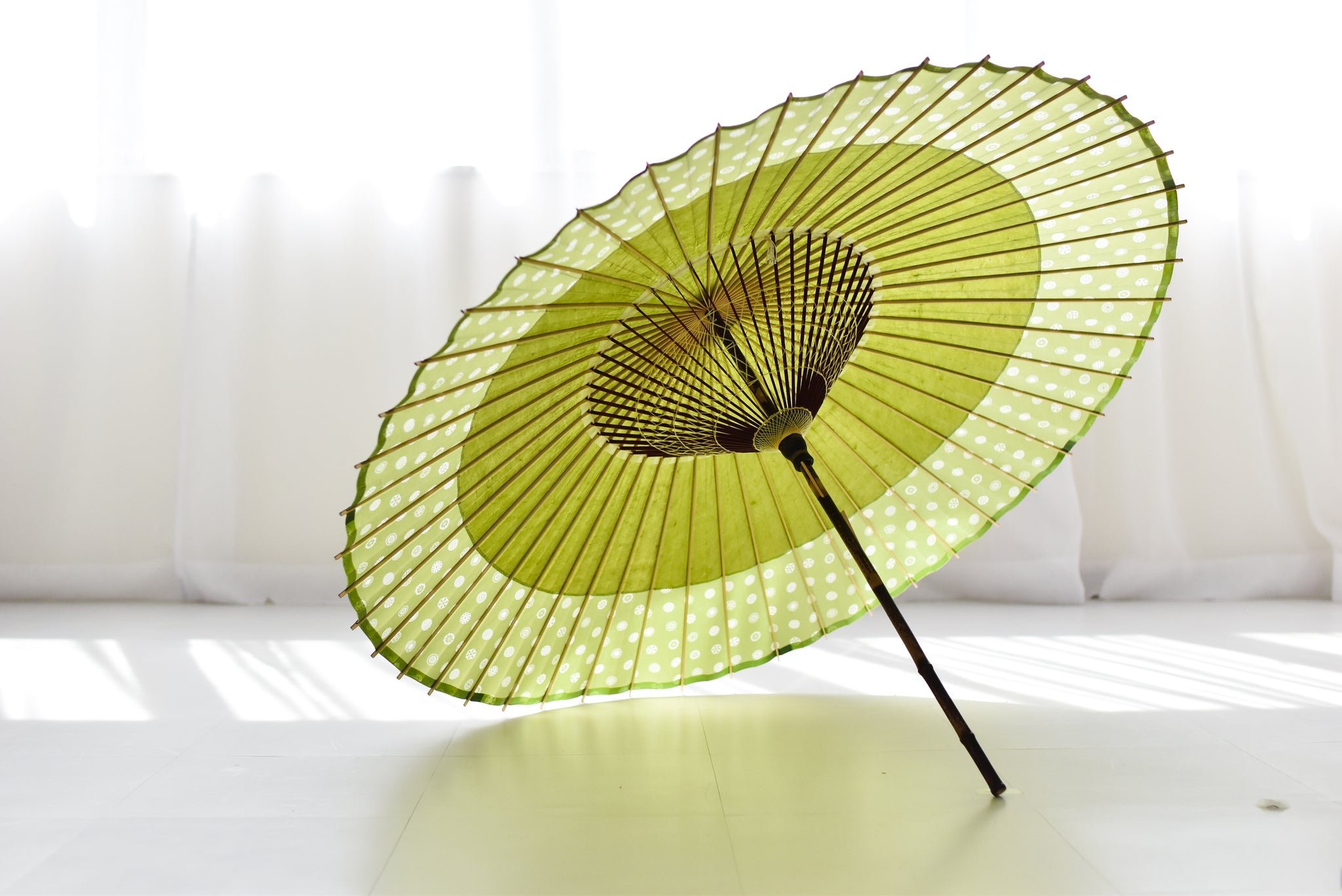 「開いて花、閉じて竹」と謳われる和傘は、職人の熟練の技と、細部に至るこだわりが詰まった日本の伝統的な工芸品です。