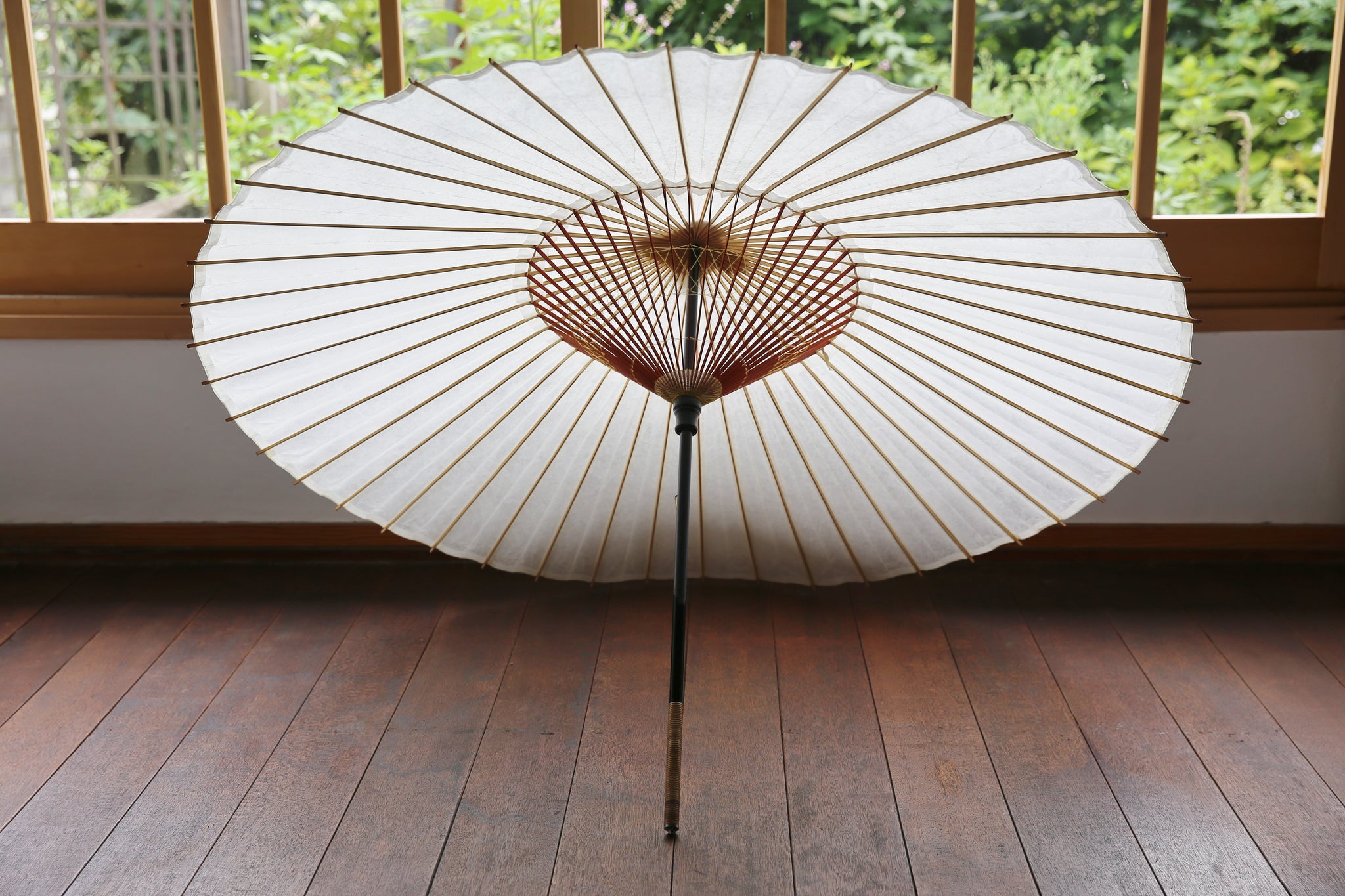 「開いて花、閉じて竹」と謳われる和傘は、職人の熟練の技と、細部に至るこだわりが詰まった日本の伝統的な工芸品です。