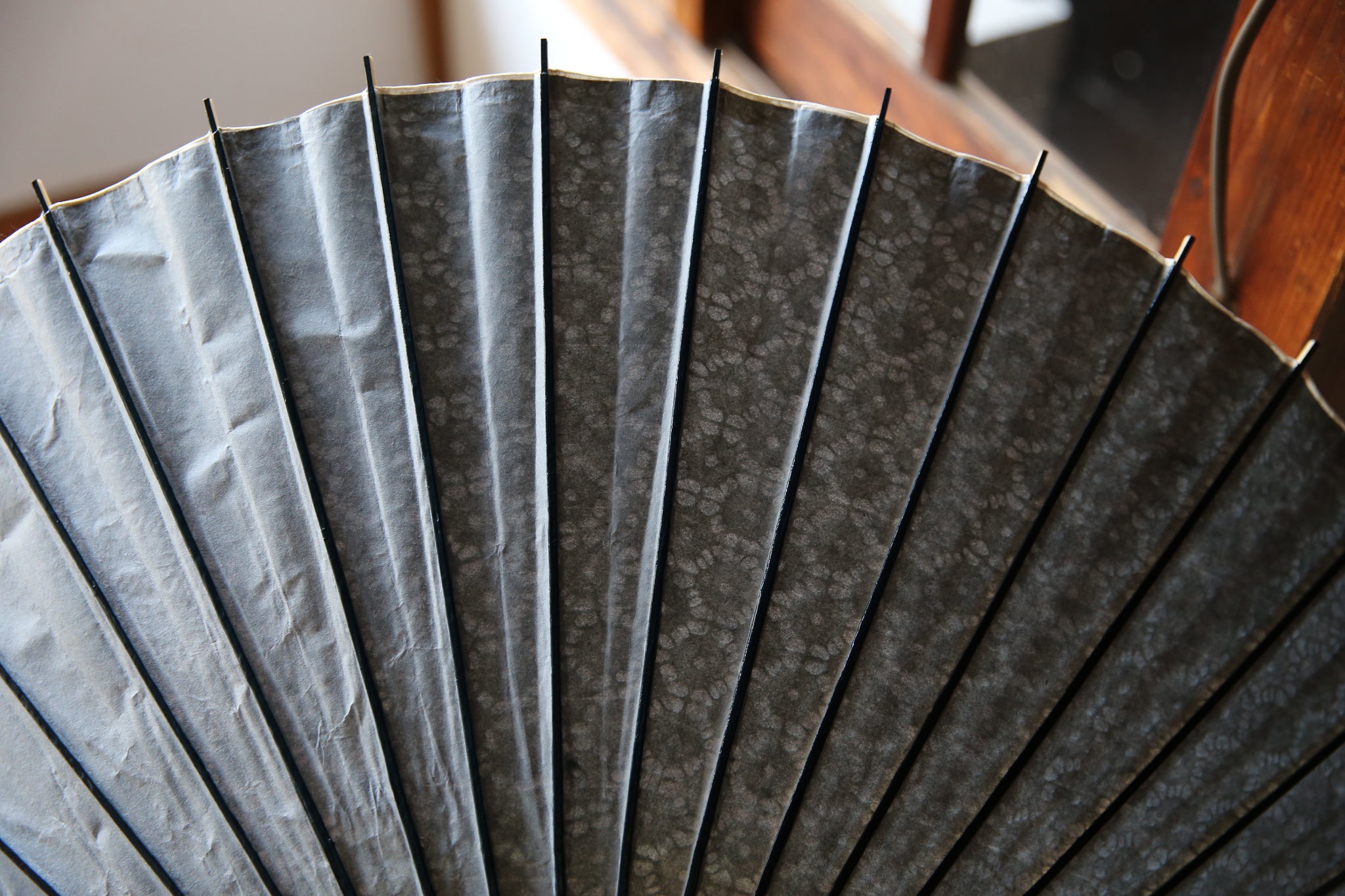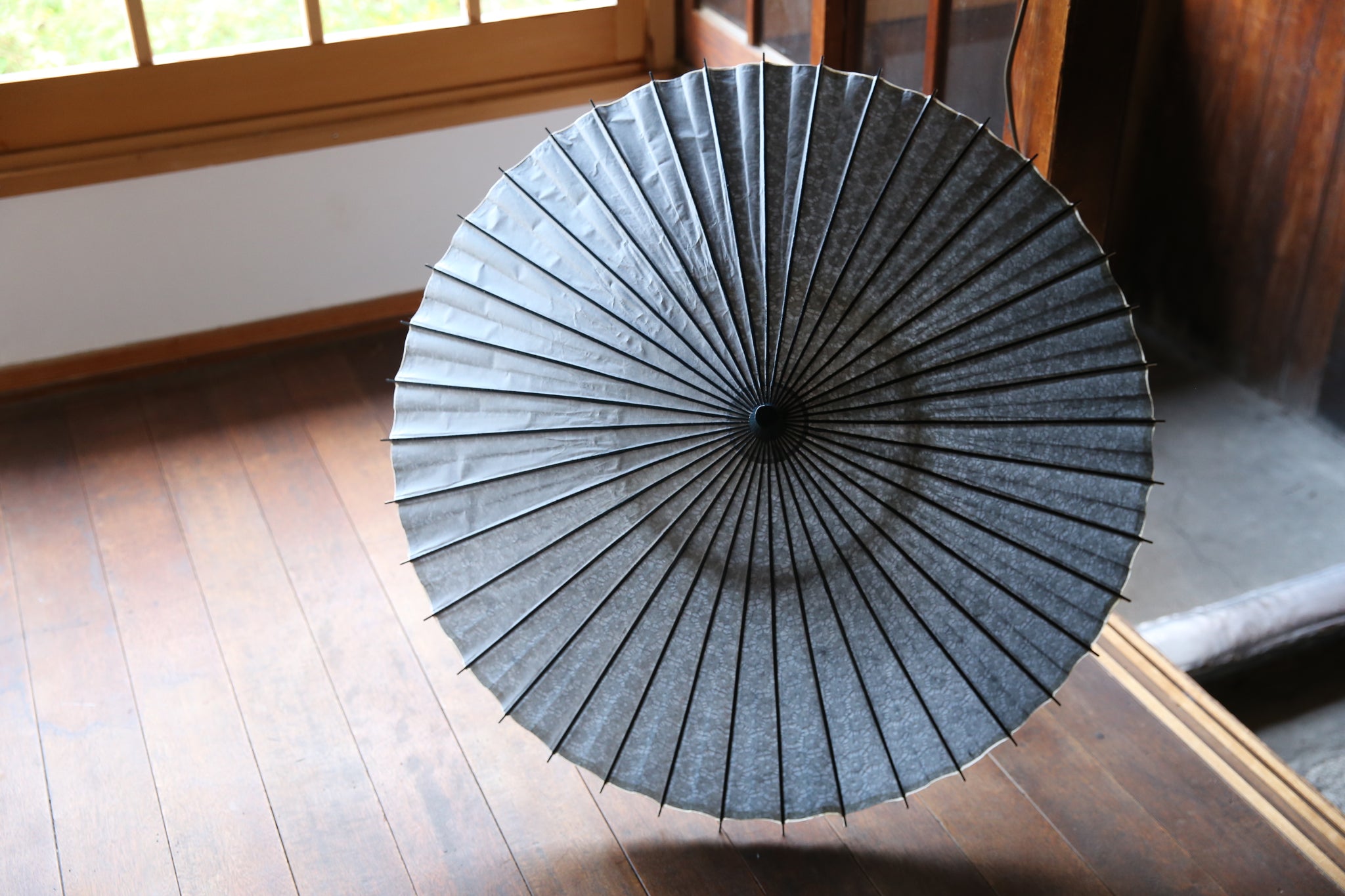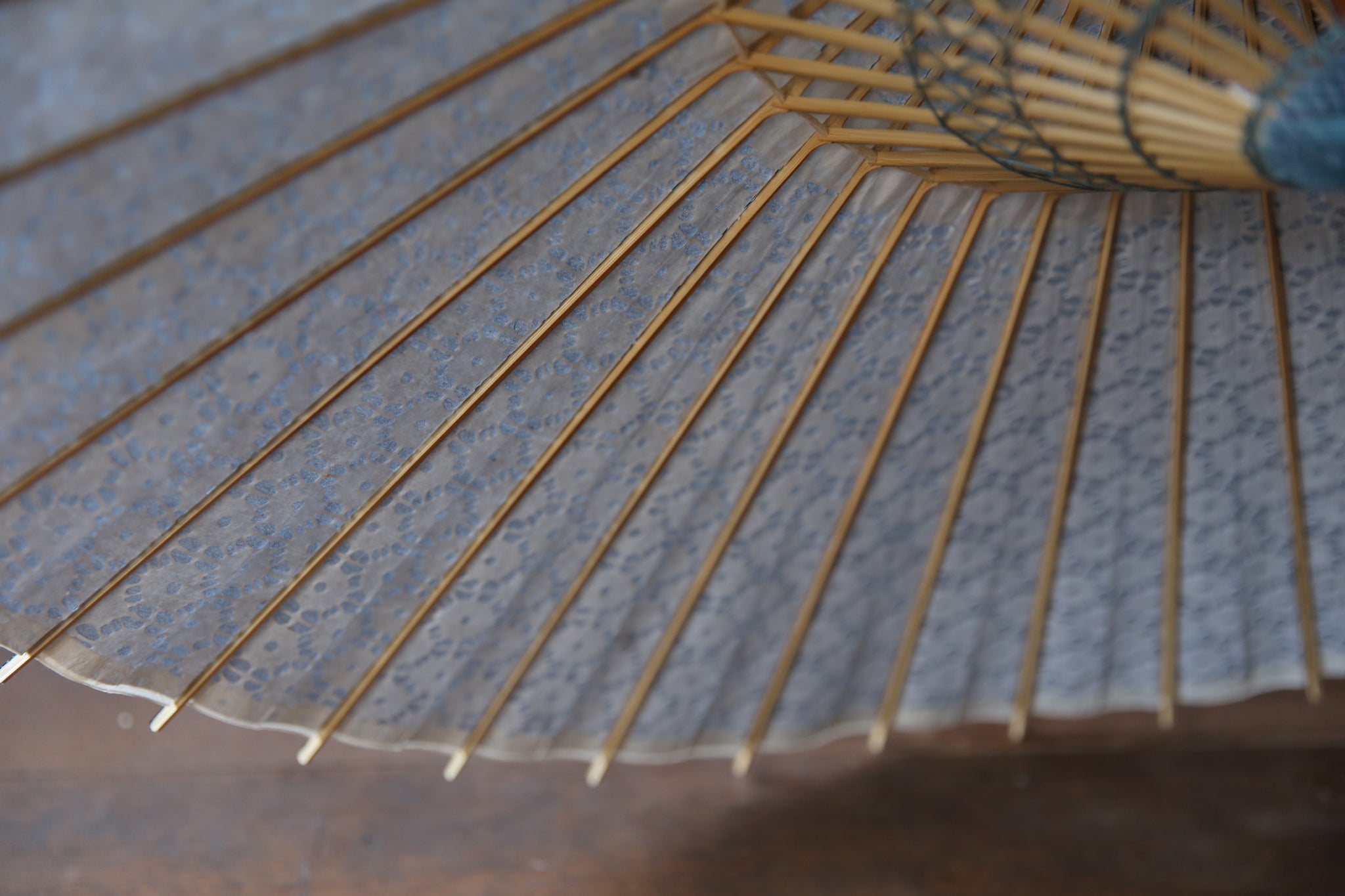 二重張と呼ばれる異なる2枚の和紙を重ねて張っている日傘です。