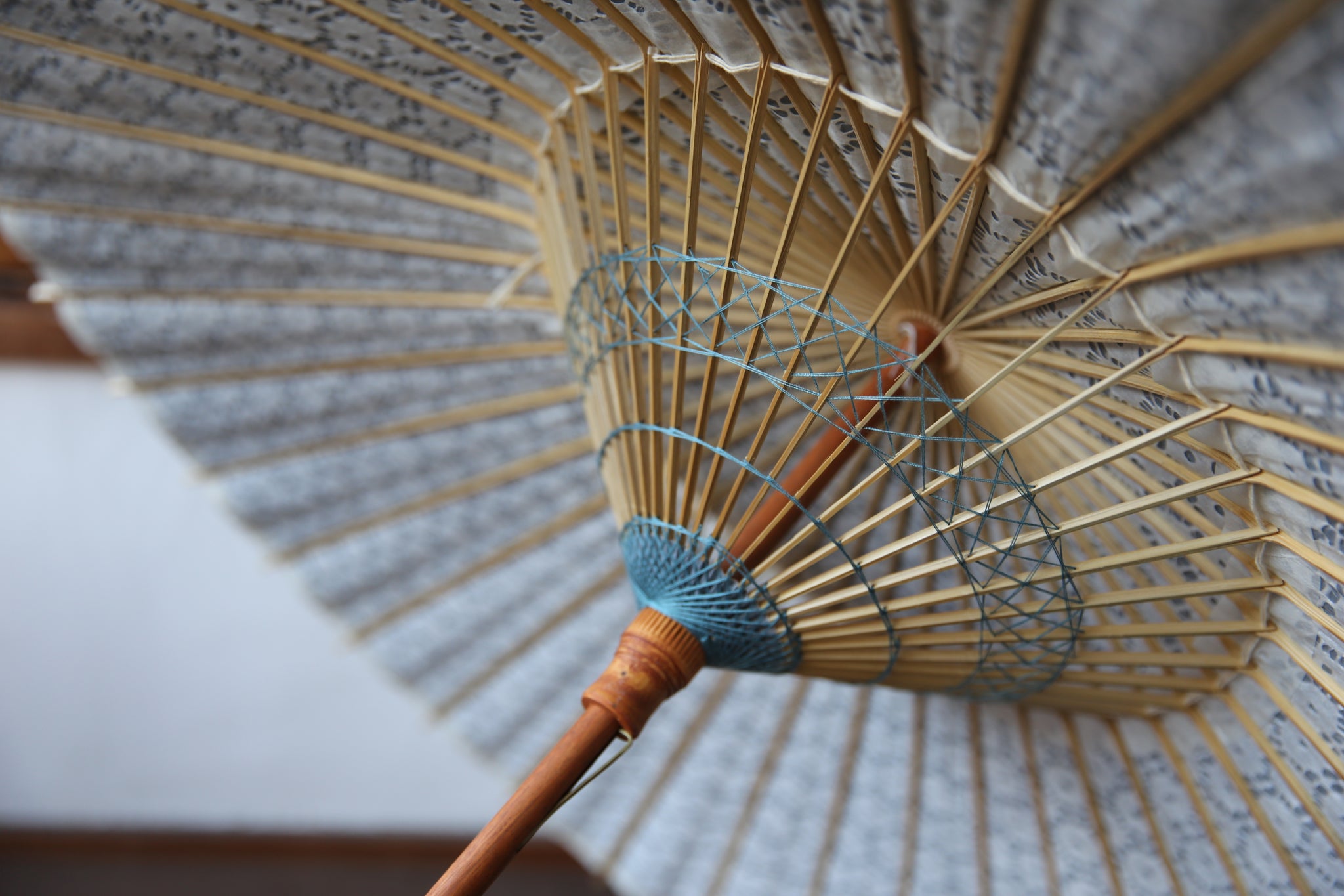 「開いて花、閉じて竹」と謳われる和傘は、職人の熟練の技と、細部に至るこだわりが詰まった日本の伝統的な工芸品です。