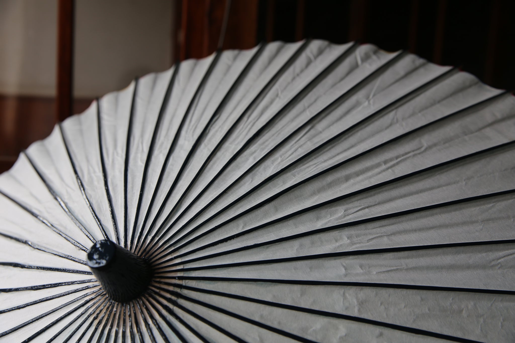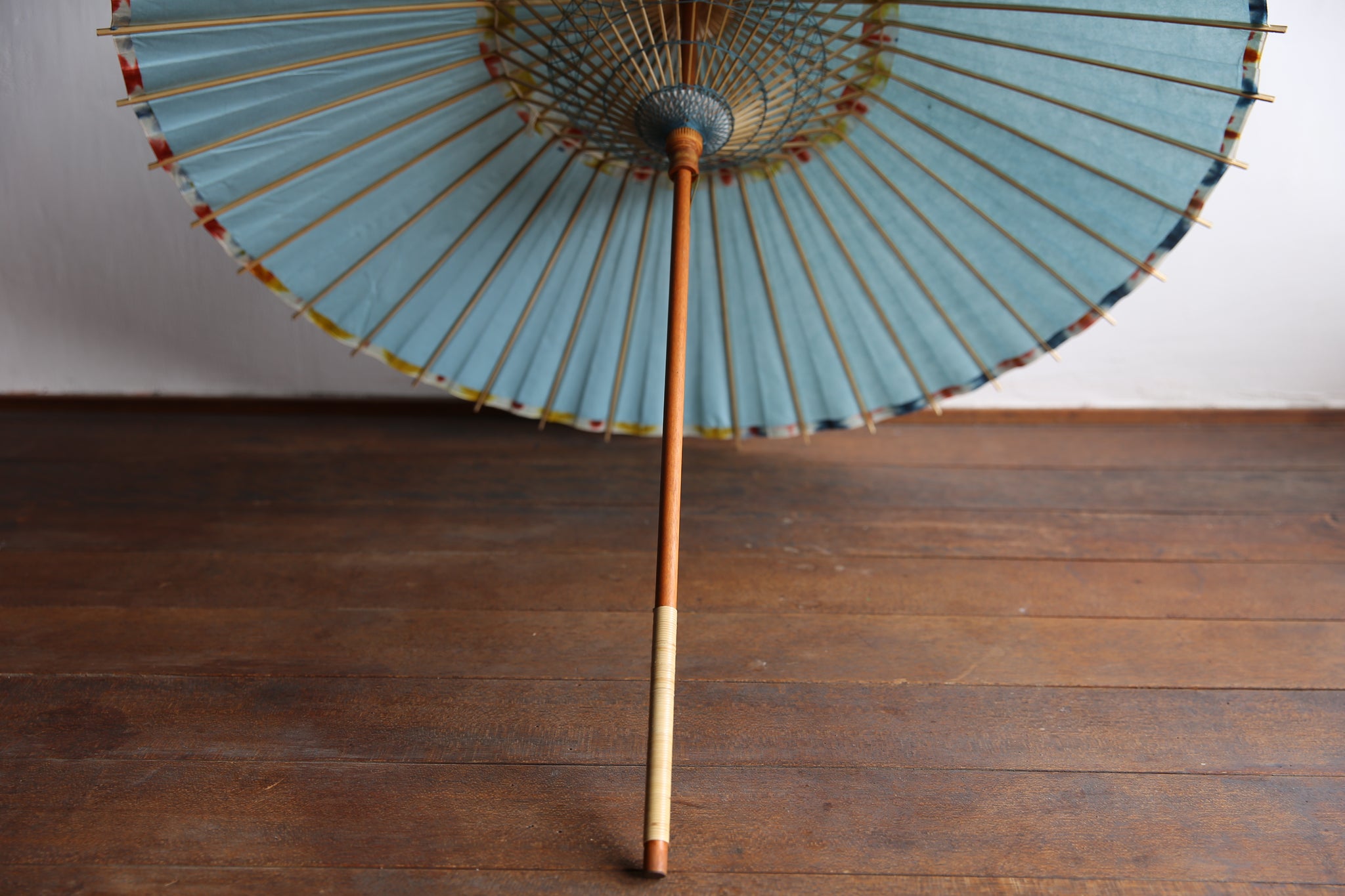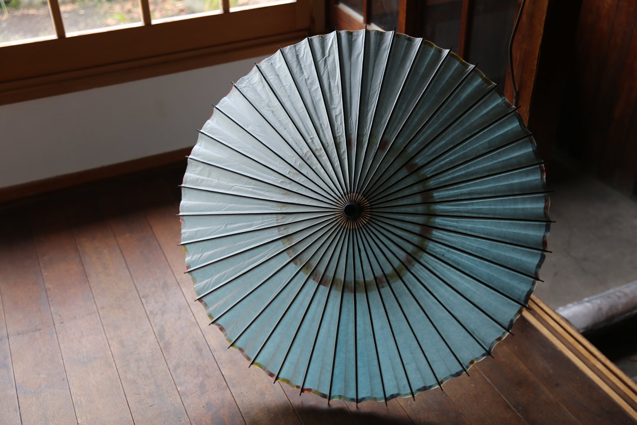 二重張と呼ばれる異なる2枚の和紙を重ねて張っている日傘です。