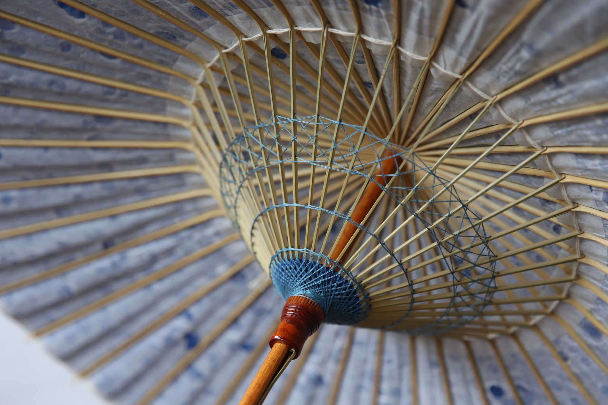 「開いて花、閉じて竹」と謳われる和傘は、職人の熟練の技と、細部に至るこだわりが詰まった日本の伝統的な工芸品です。