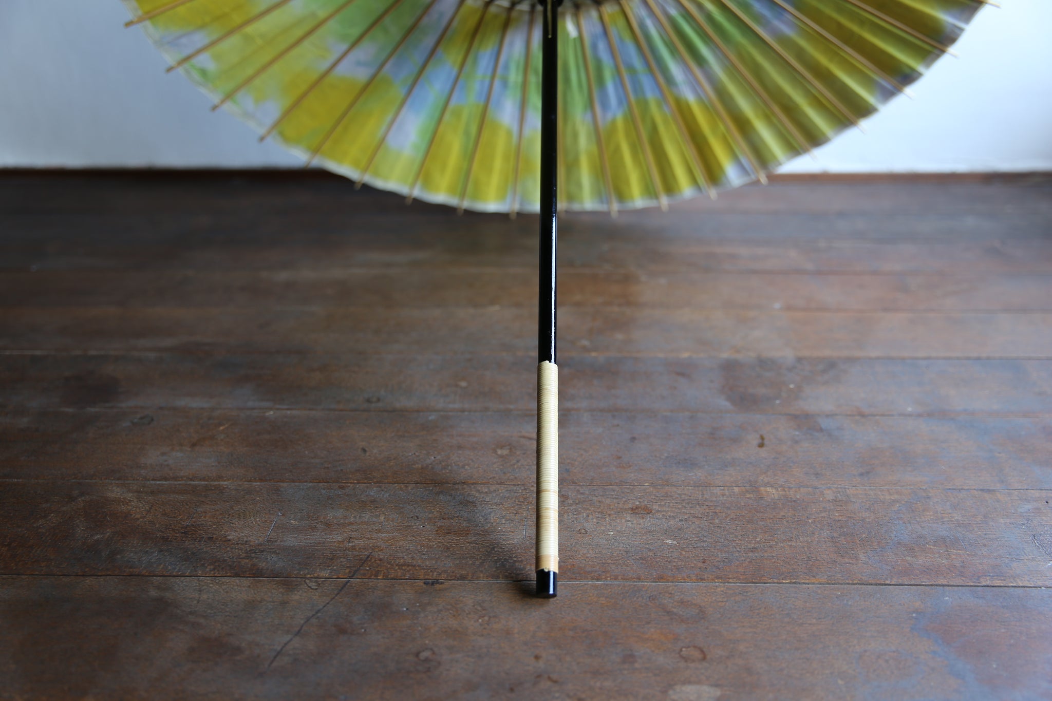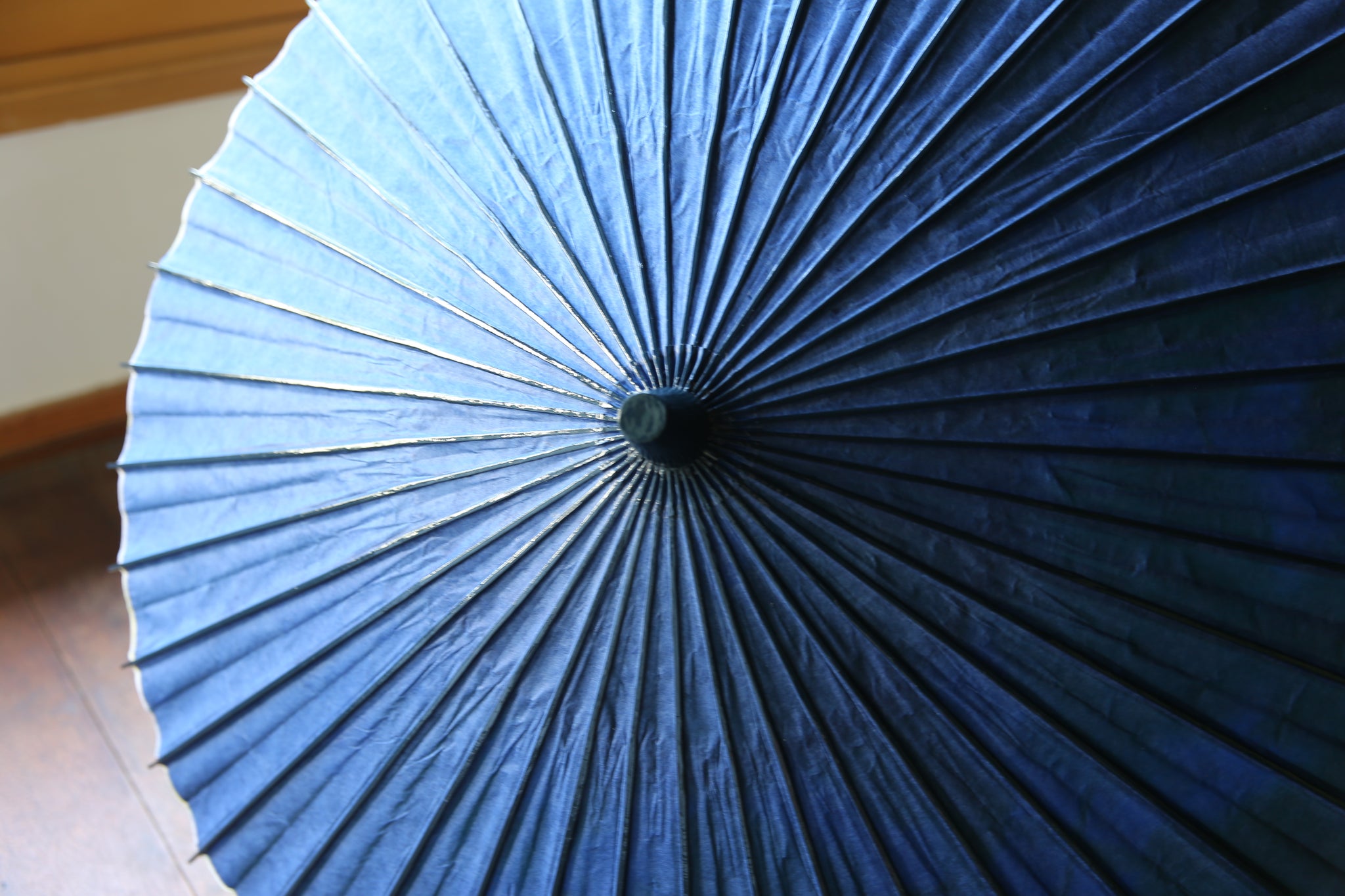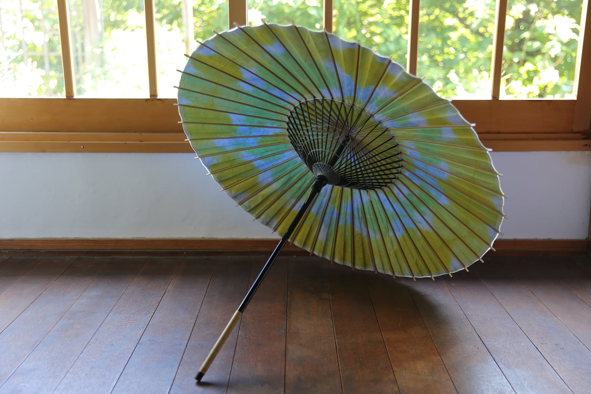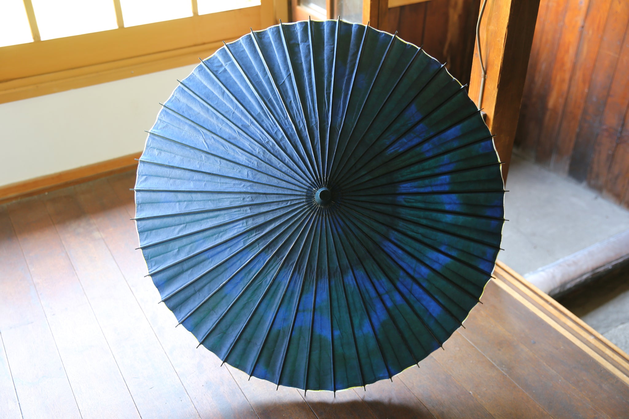 二重張と呼ばれる異なる2枚の和紙を重ねて張っている日傘です。