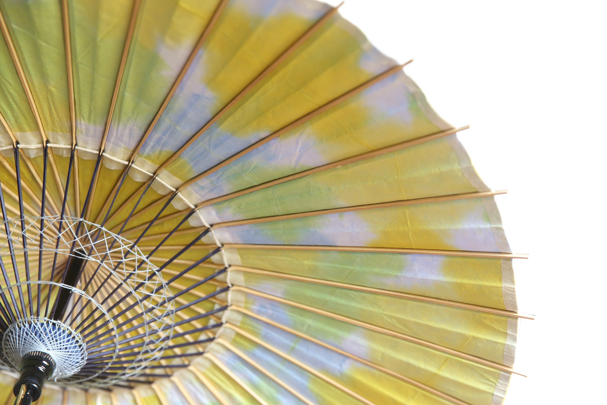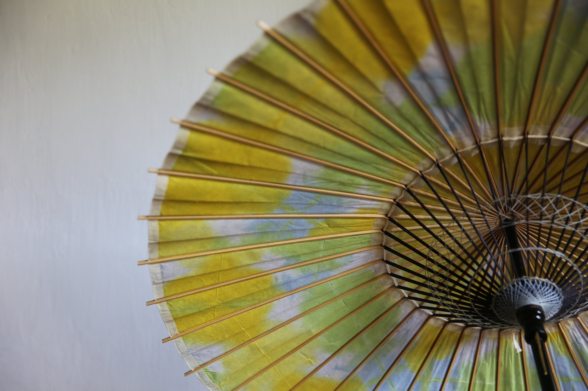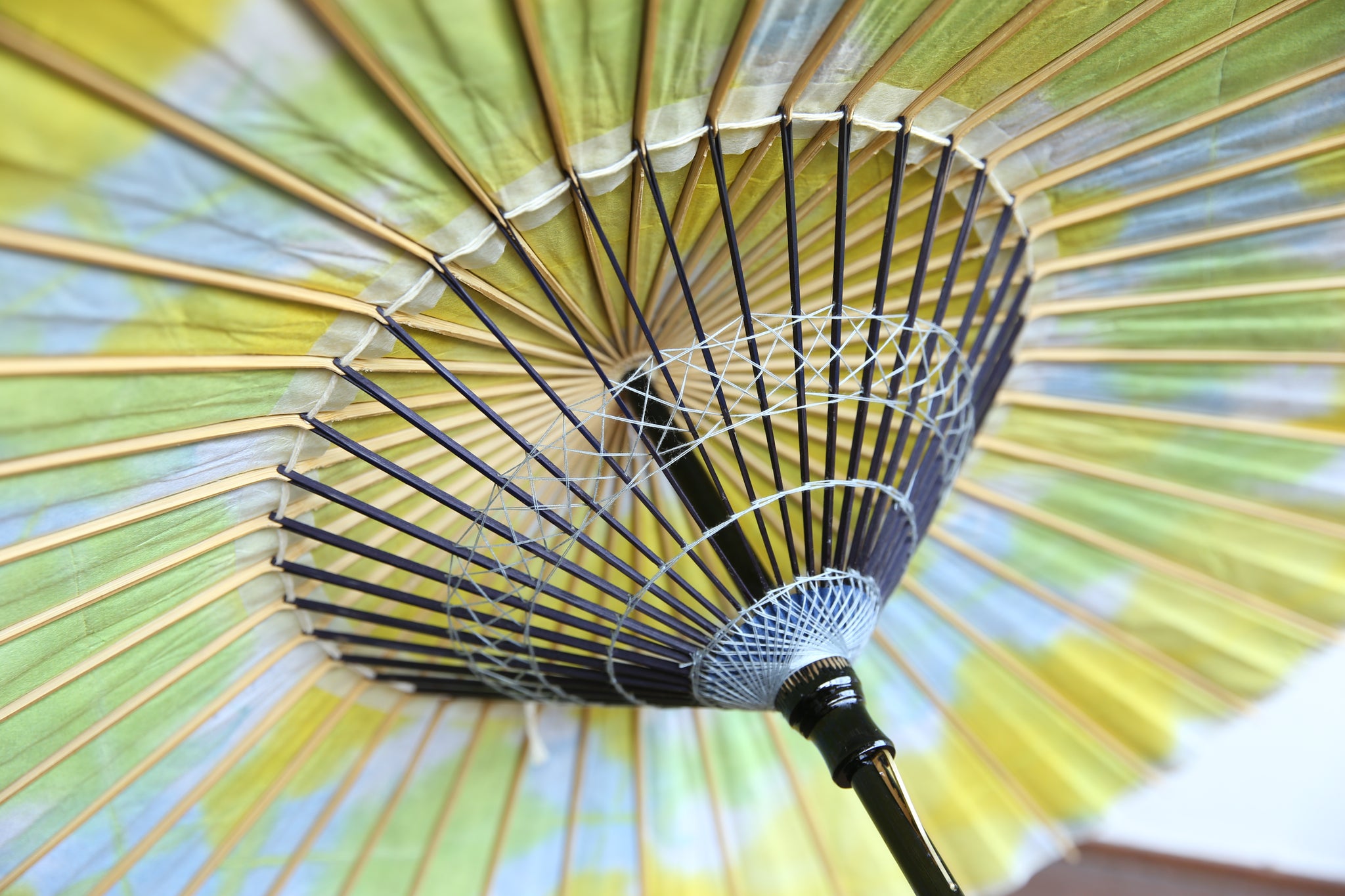 和傘の骨組みは、1本の竹を均等に割り、傘を畳んだ際に元の竹に戻るように組まれています。