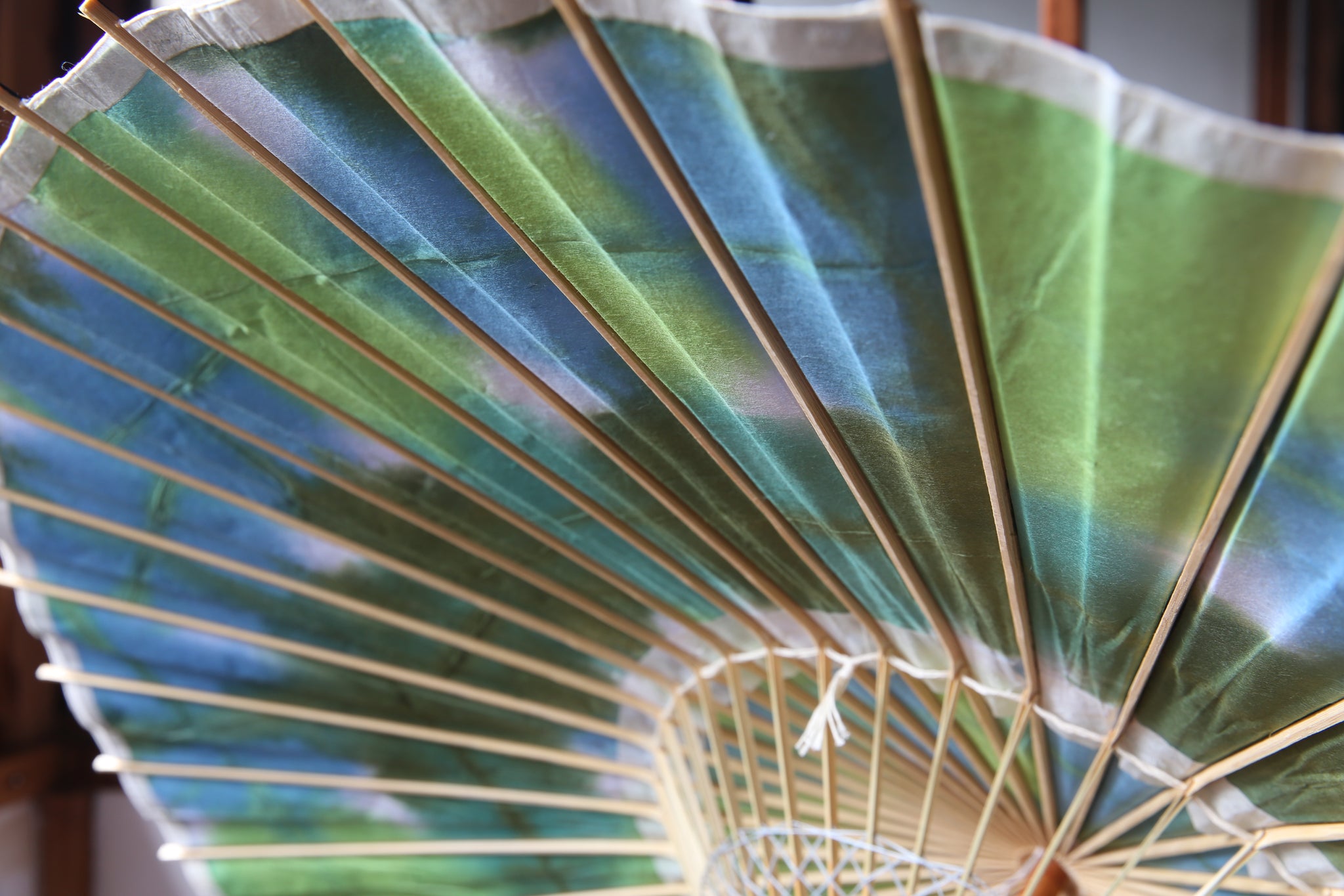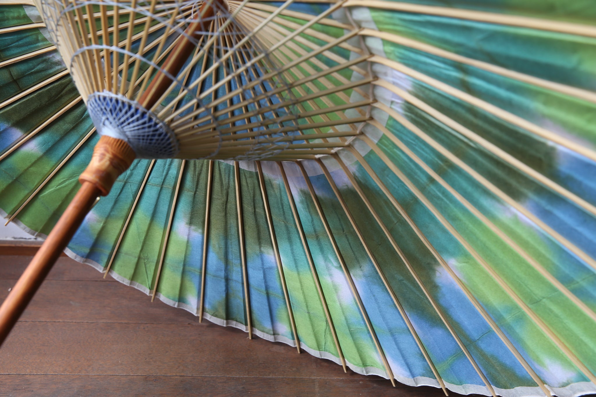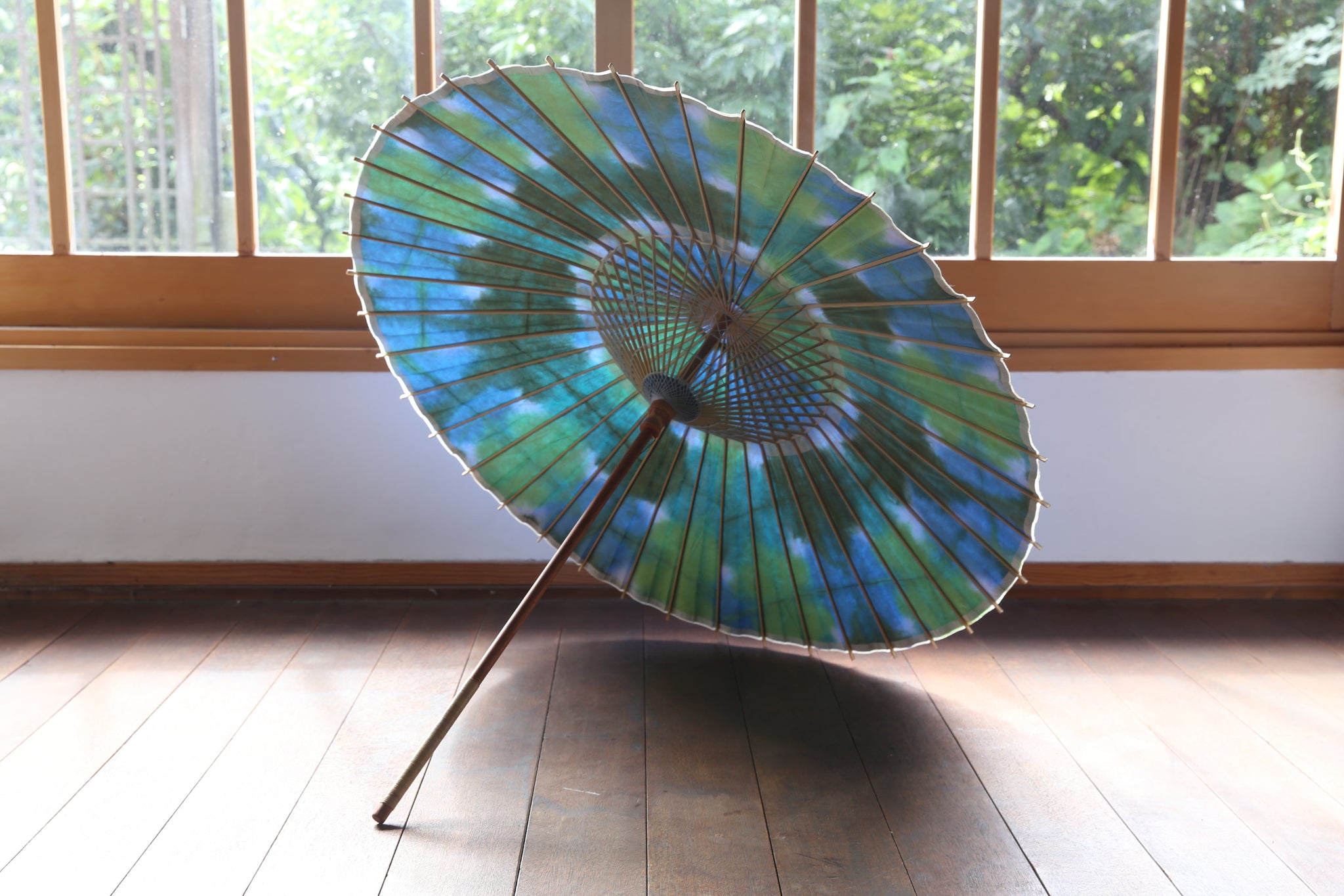 二重張と呼ばれる異なる2枚の和紙を重ねて張っている日傘です。