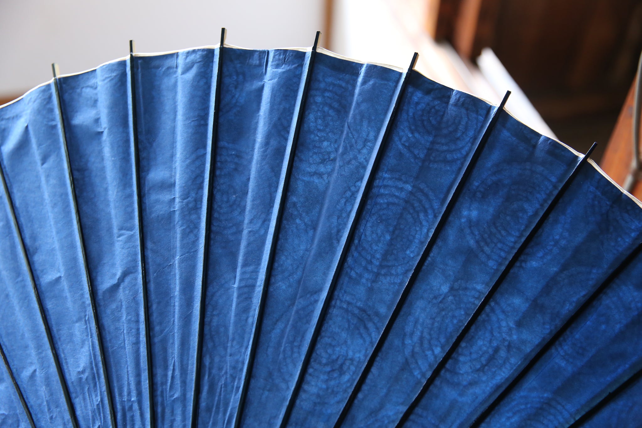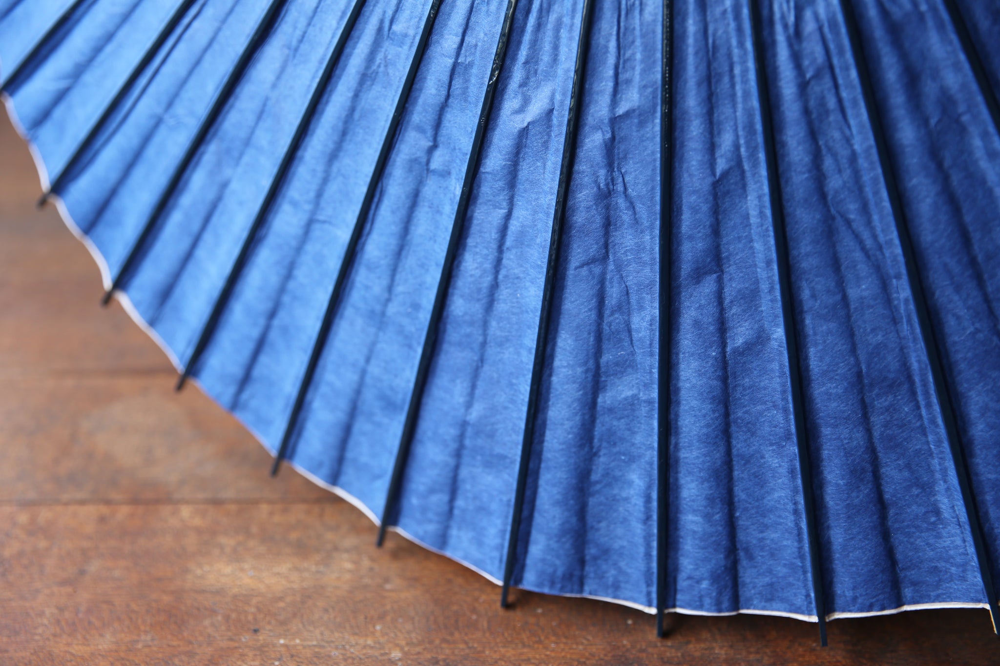 傘骨の表は、光沢感のあるグリーン味の紺色の塗装(カシュー漆)が特徴。