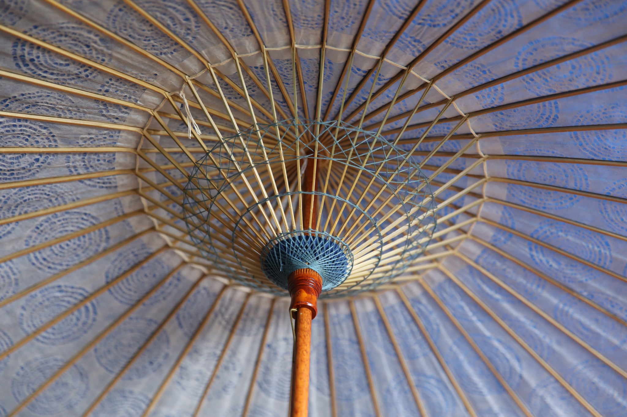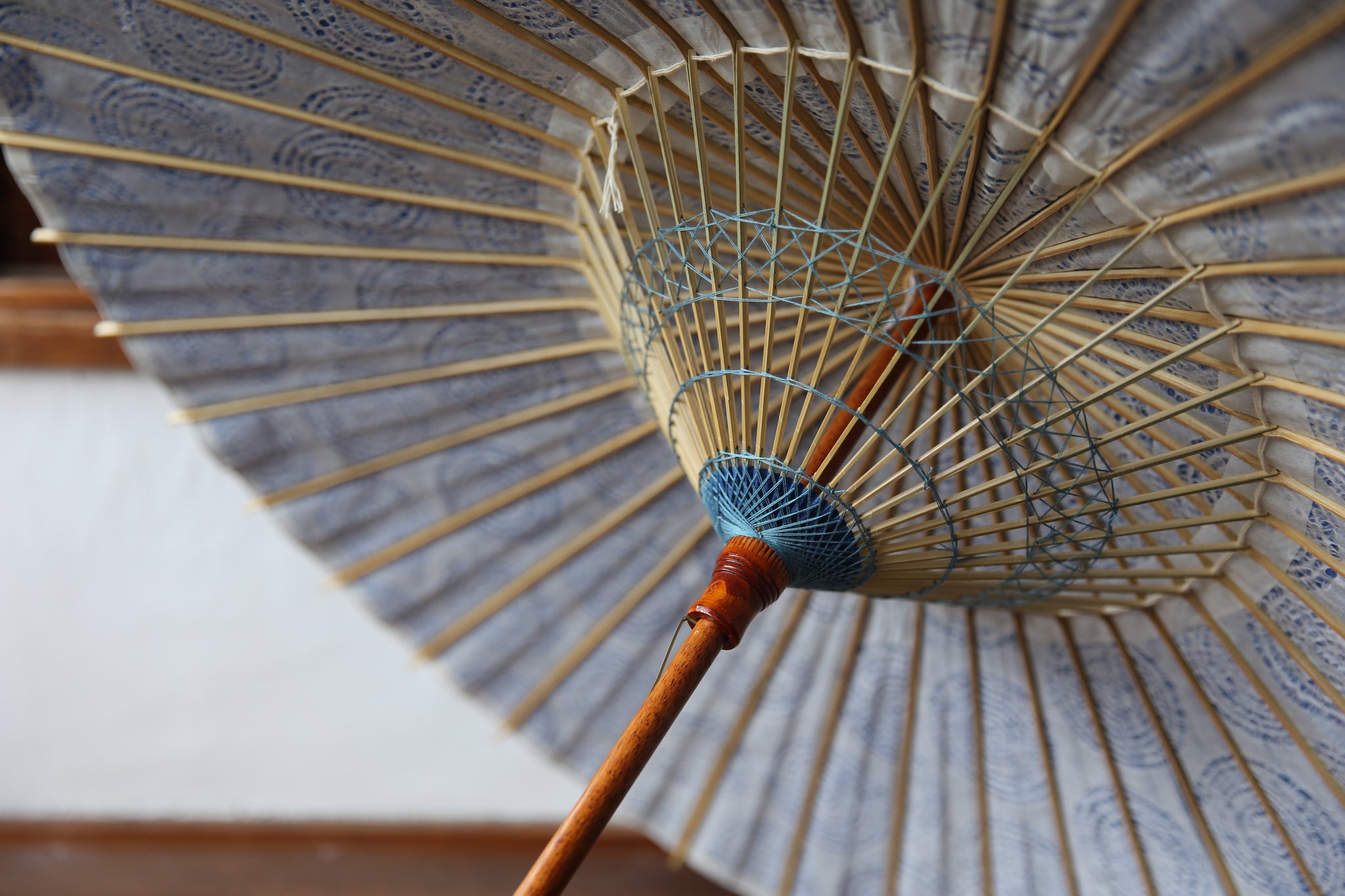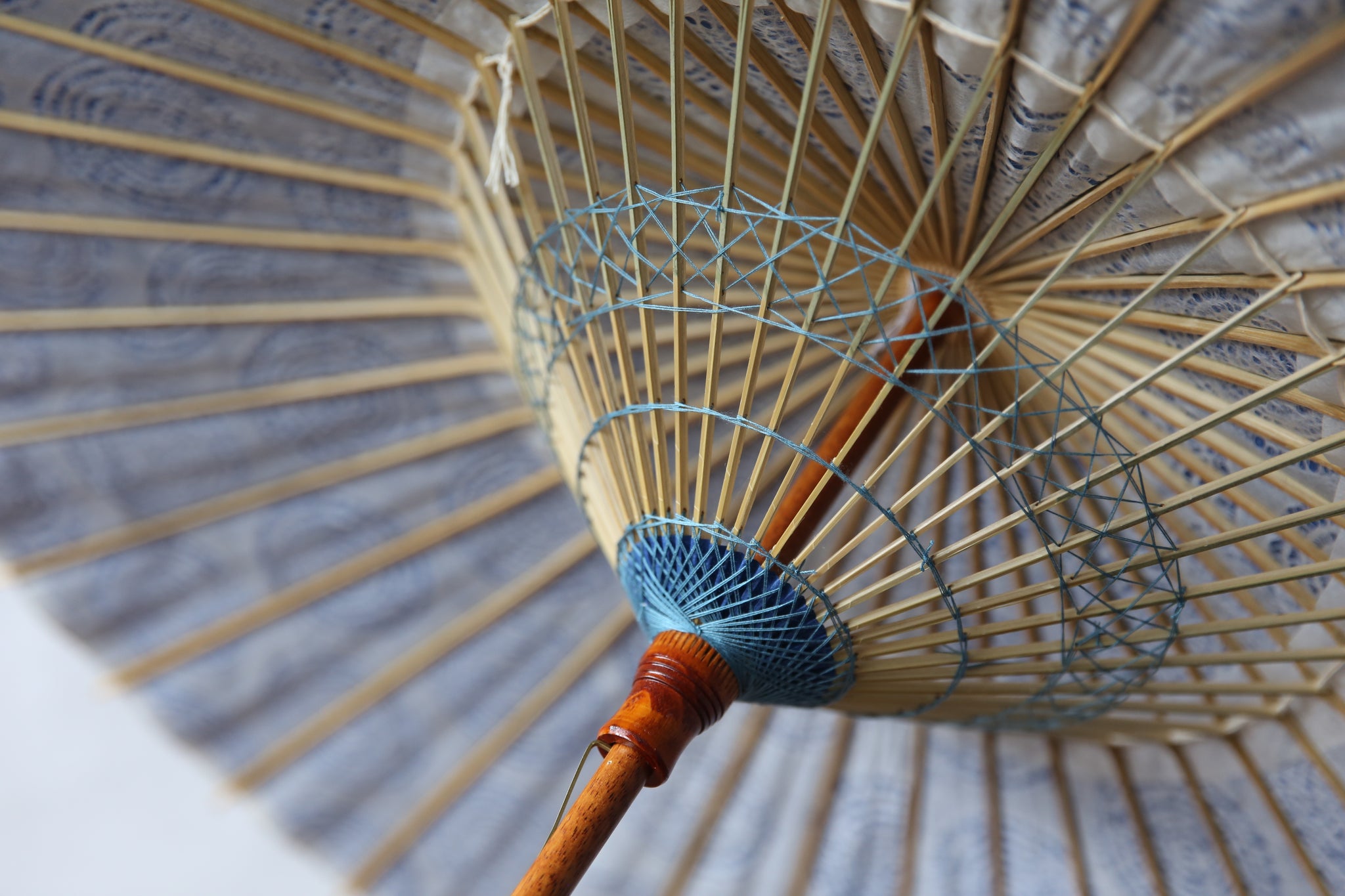 「開いて花、閉じて竹」と謳われる和傘は、職人の熟練の技と、細部に至るこだわりが詰まった日本の伝統的な工芸品です。