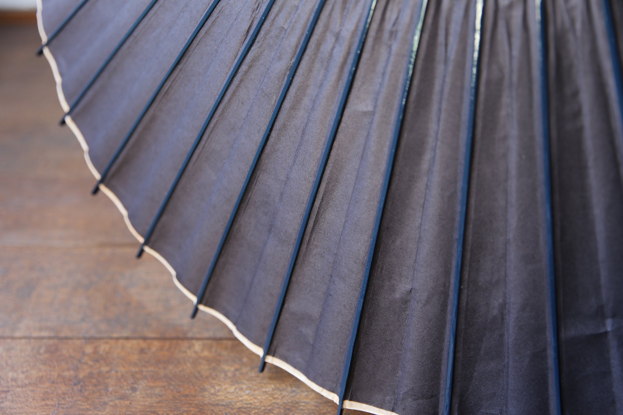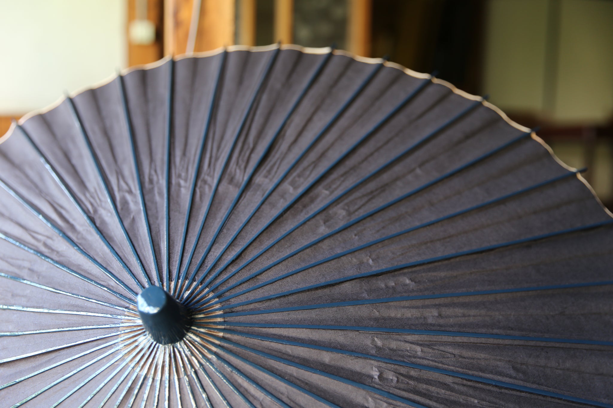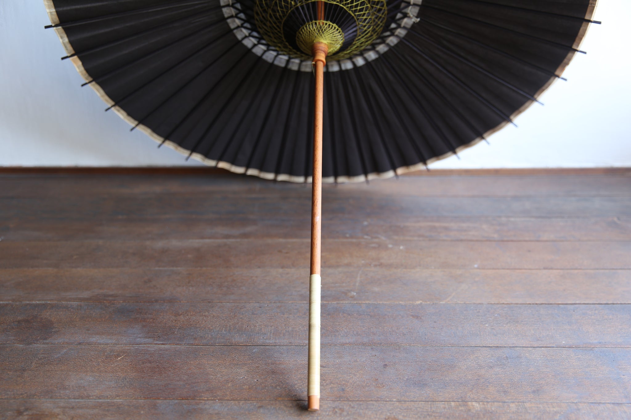和傘の骨組みは、1本の竹を均等に割り、傘を畳んだ際に元の竹に戻るように組まれています。