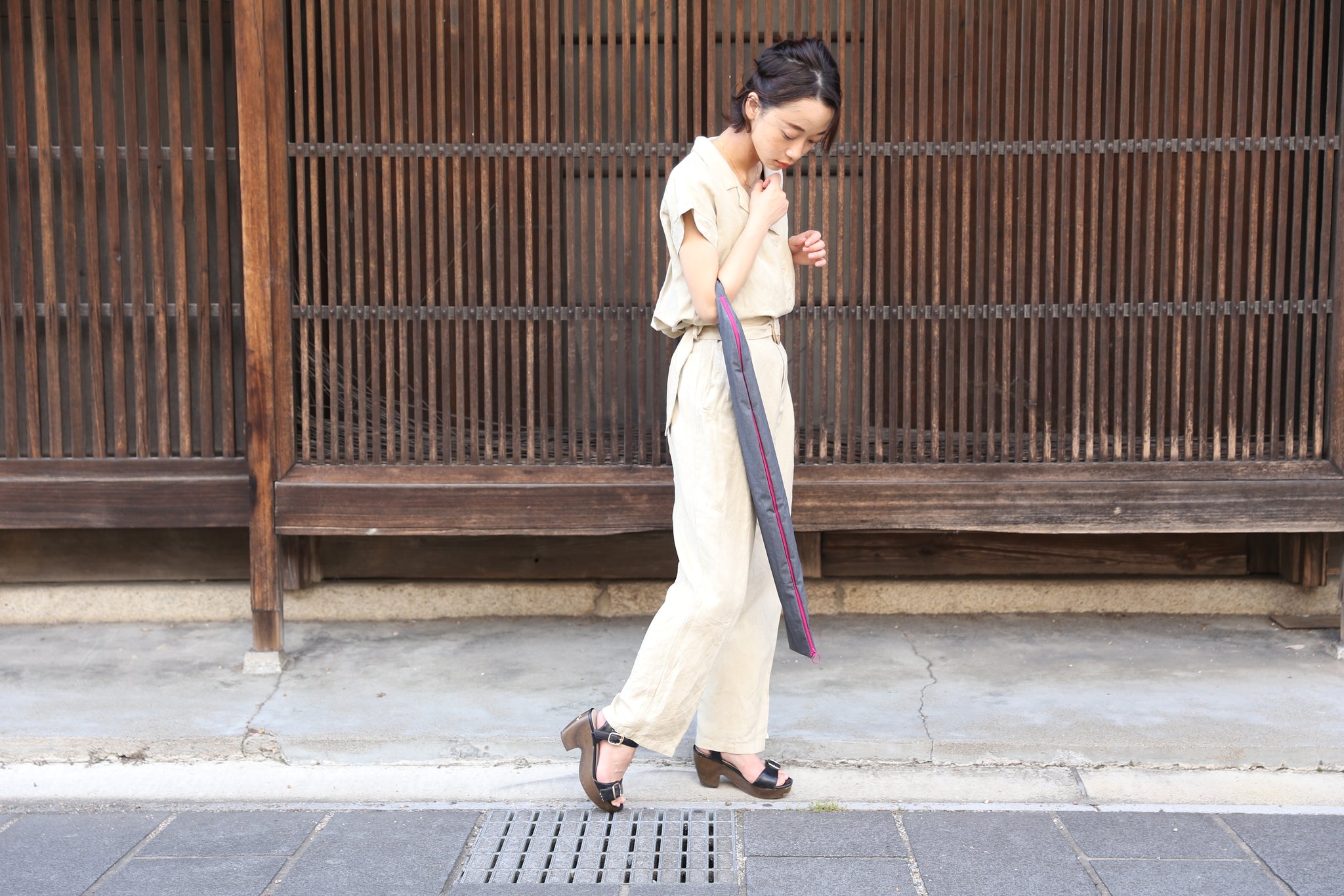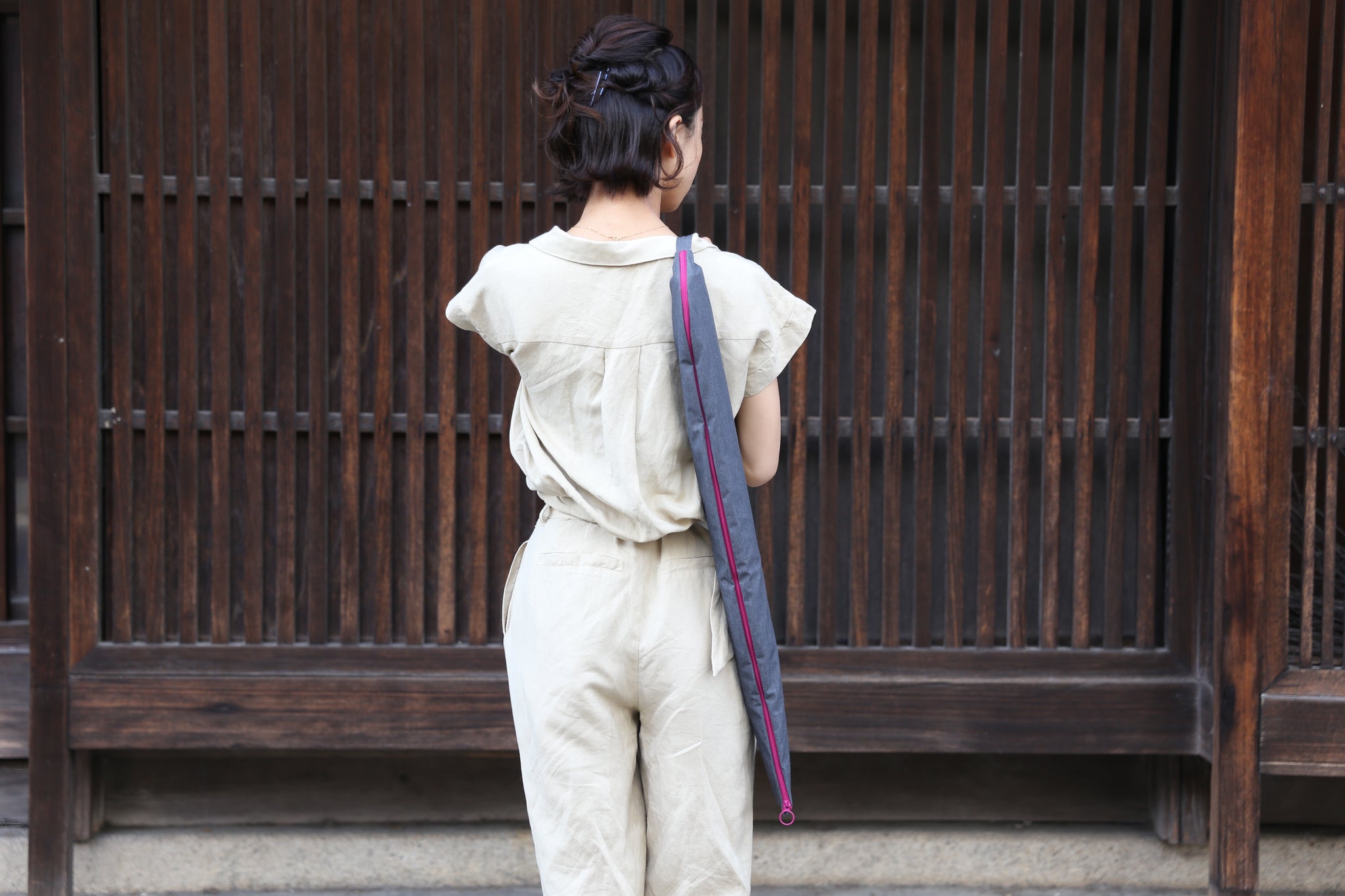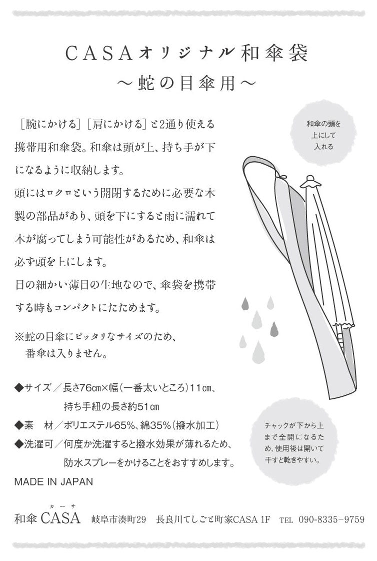 【腕にかける】【肩にかける】と2通り使える携帯用和傘袋。