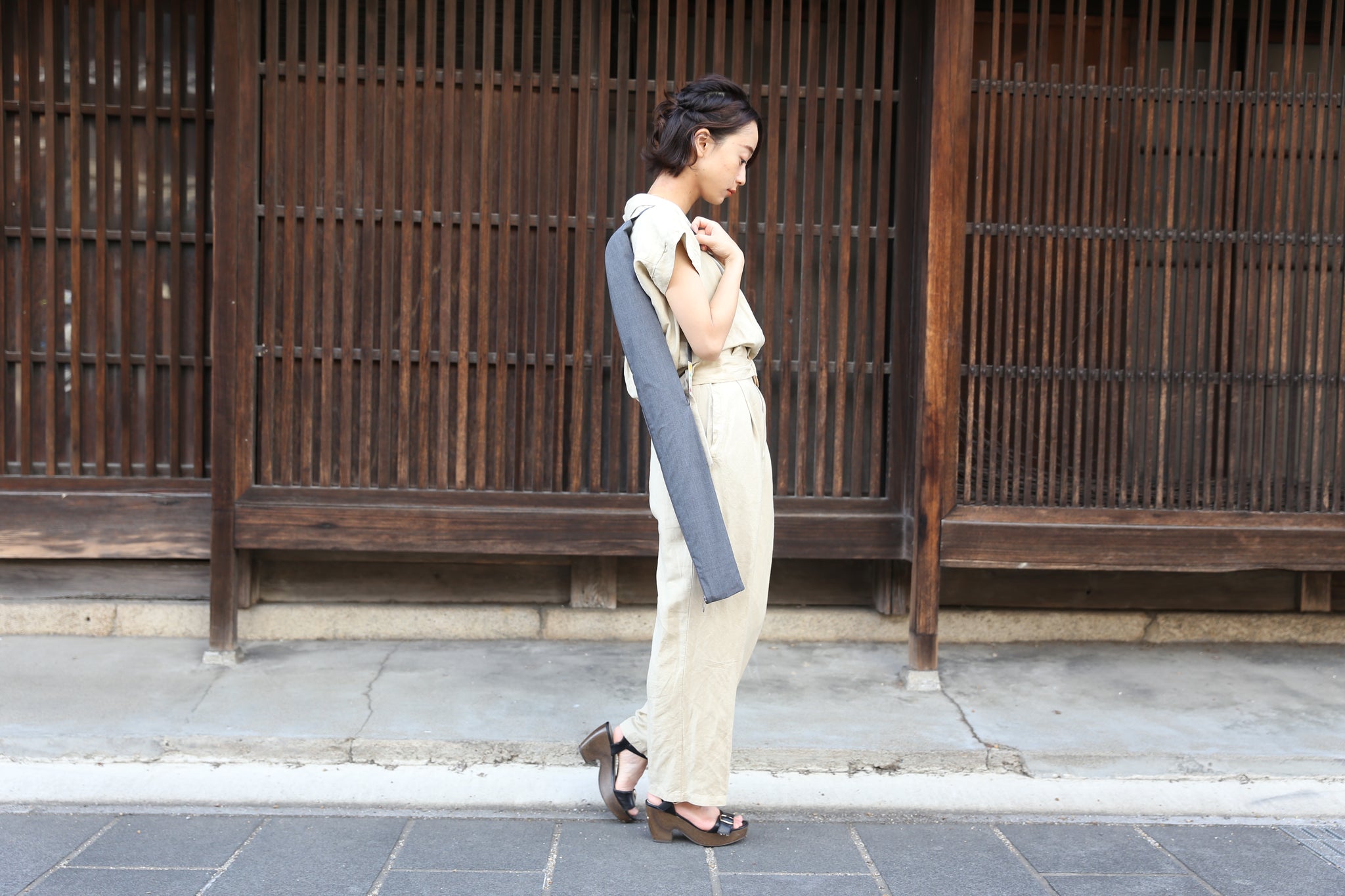 グレーベージュの色味が和服でも洋服でもどんな格好でも合わせやすい。