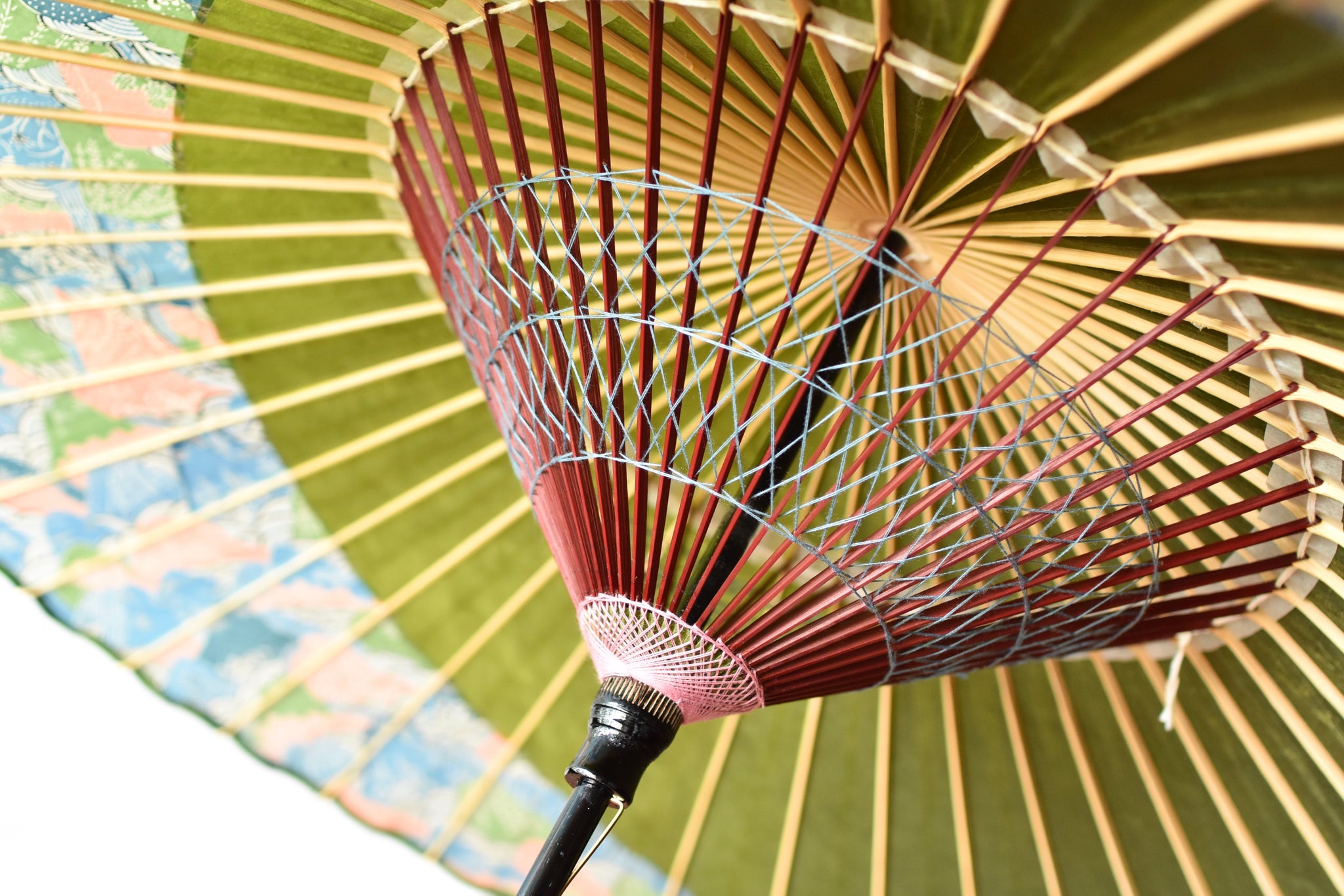 「開いて花、閉じて竹」と謳われる和傘は、職人の熟練の技と、細部に至るこだわりが詰まった日本の伝統的な工芸品です。