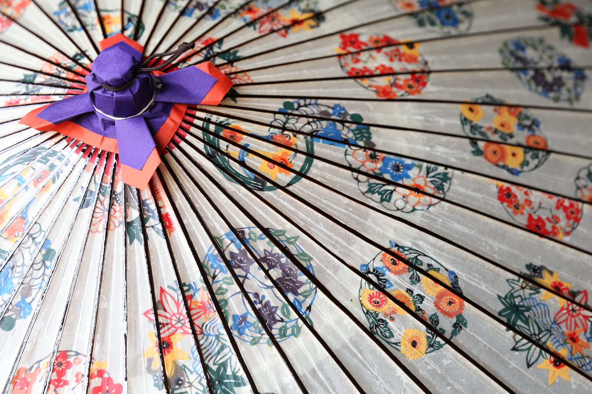 「開いて花、閉じて竹」と謳われる和傘は、職人の熟練の技と、細部に至るこだわりが詰まった日本の伝統的な工芸品です。