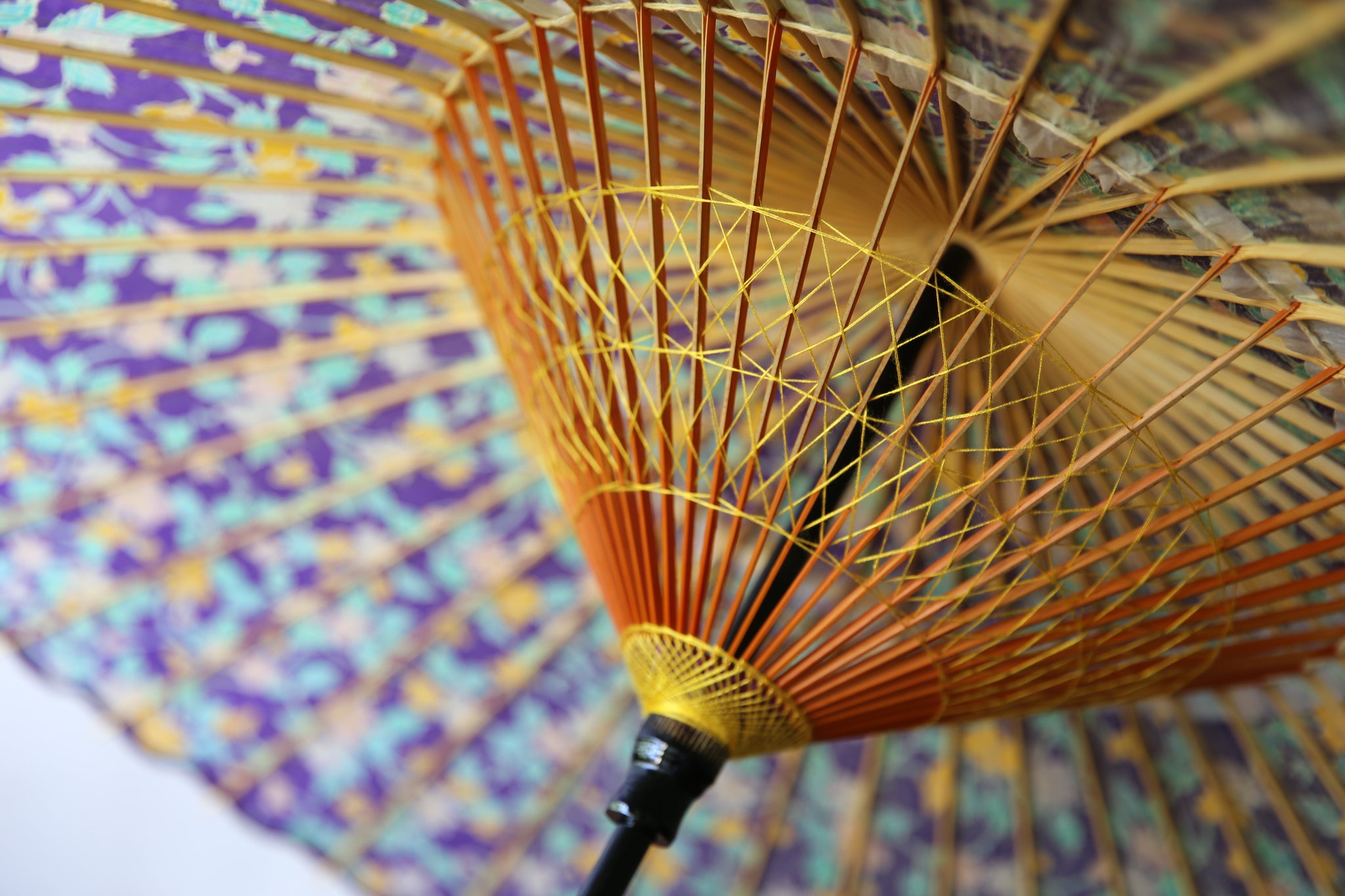 「開いて花、閉じて竹」と謳われる和傘は、職人の熟練の技と、細部に至るこだわりが詰まった日本の伝統的な工芸品です。