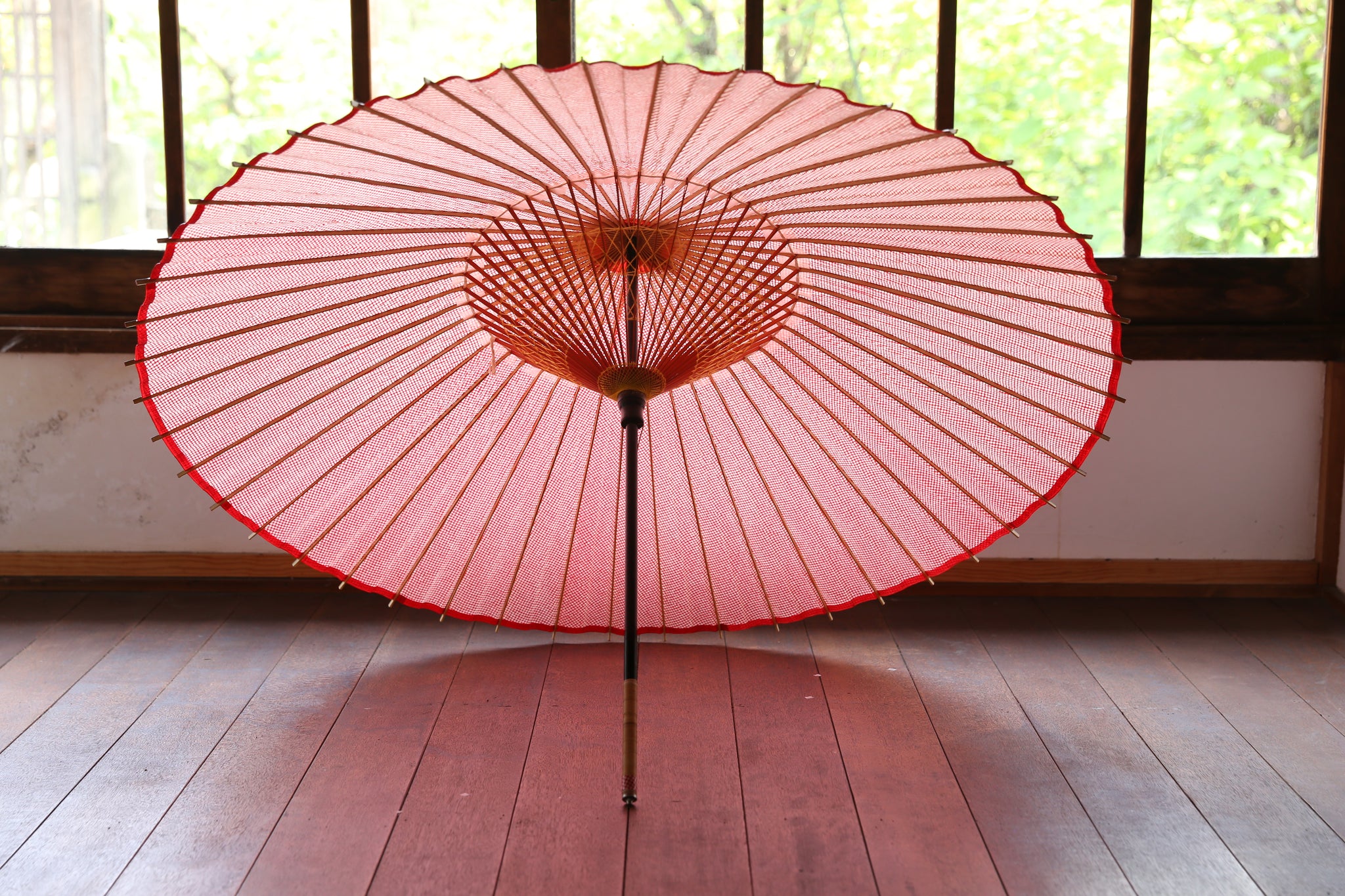「開いて花、閉じて竹」と謳われる和傘は、職人の熟練の技と、細部に至るこだわりが詰まった日本の伝統的な工芸品です。
