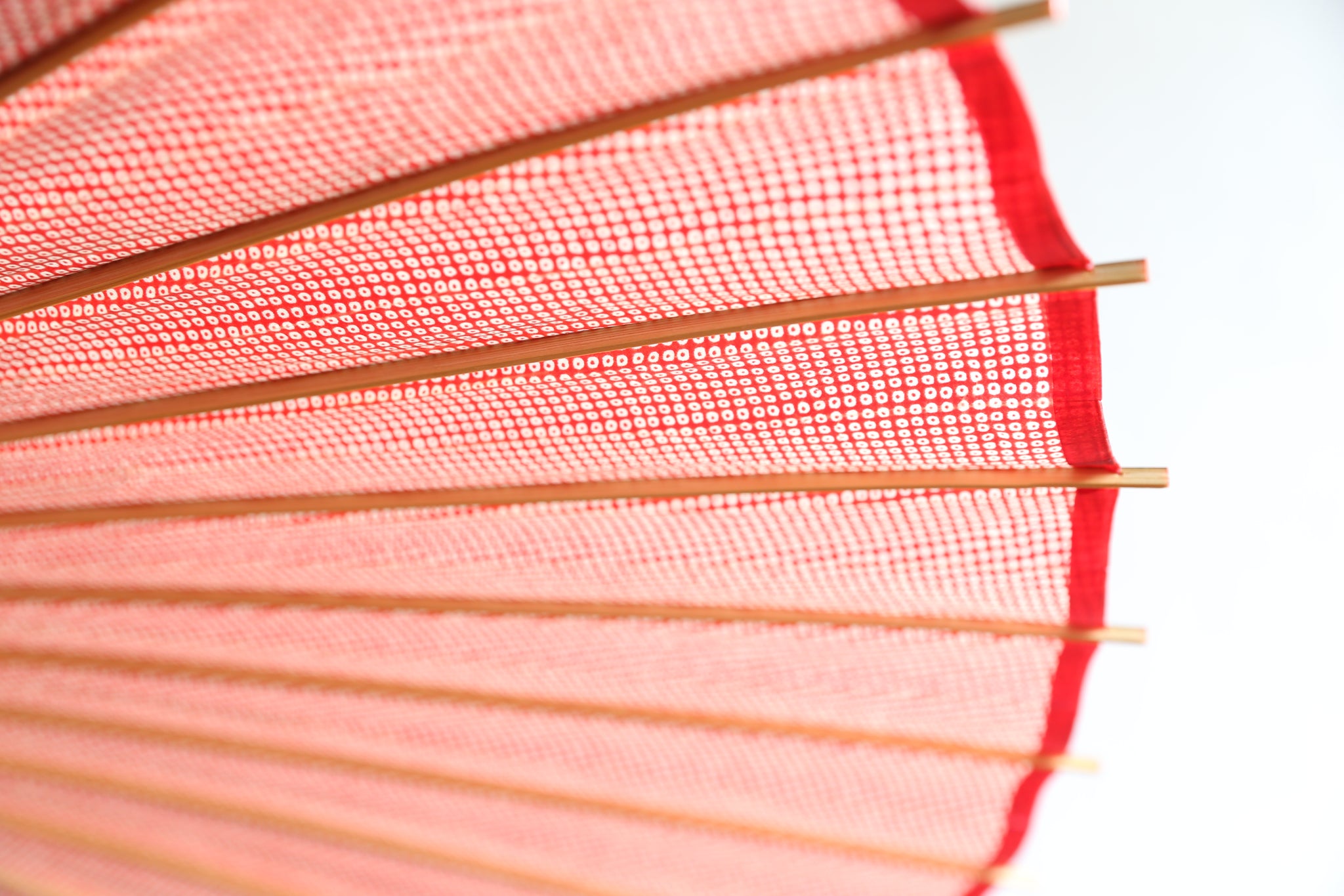和傘の骨組みは、1本の竹を均等に割り、傘を畳んだ際に元の竹に戻るように組まれています。