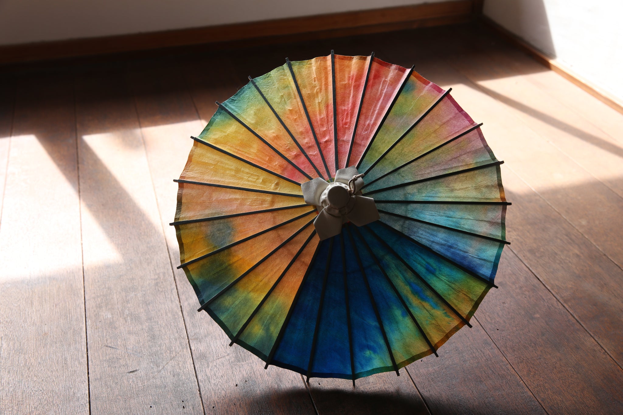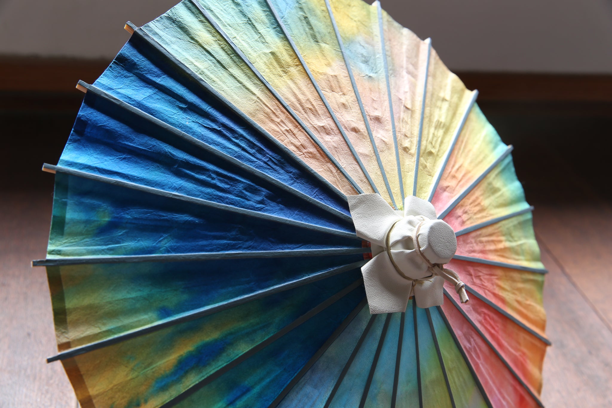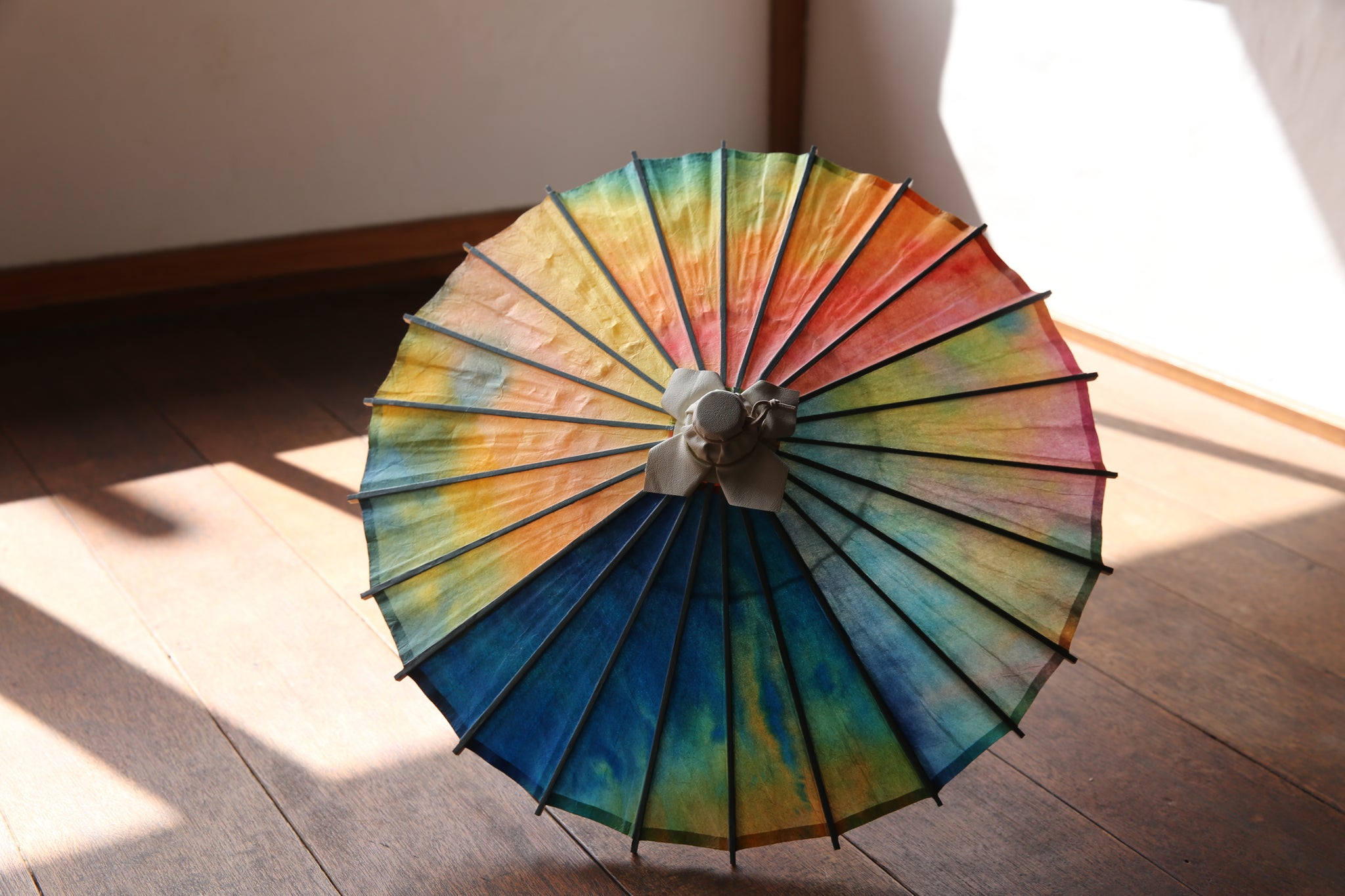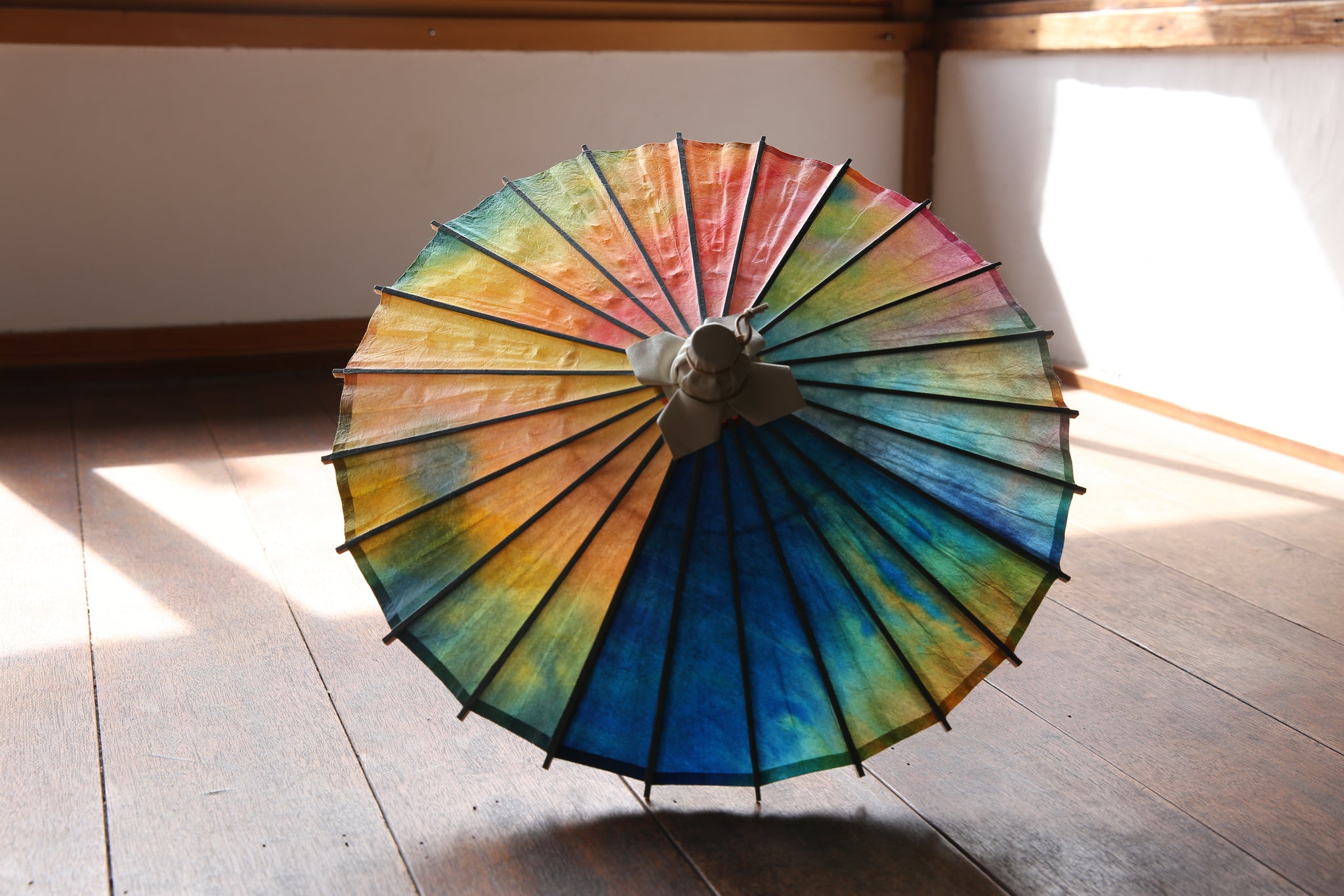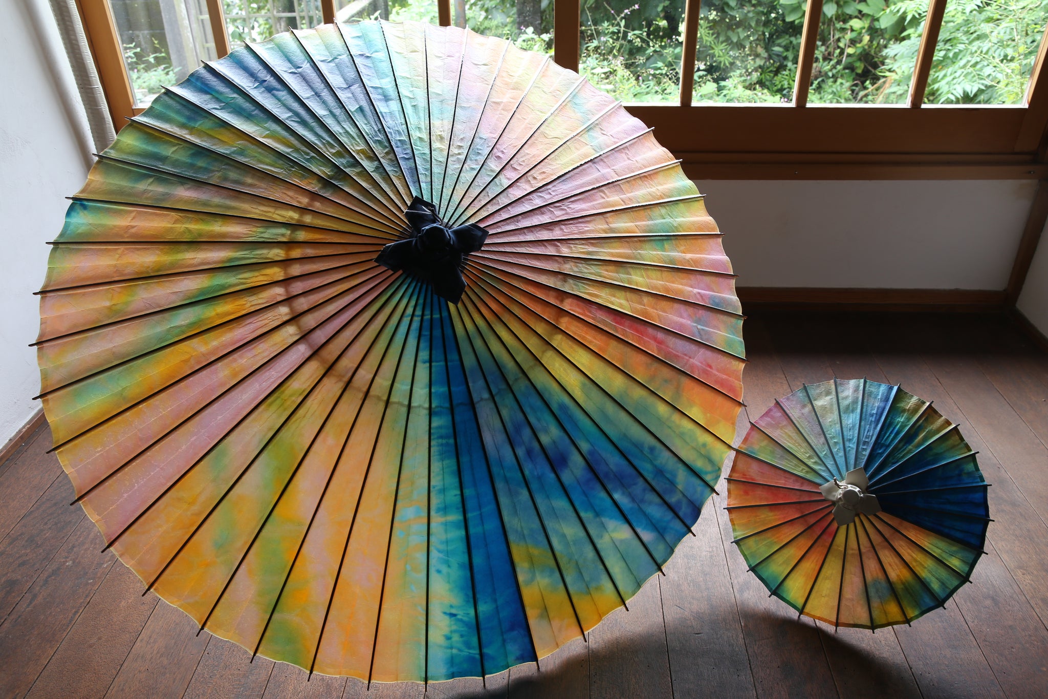 日傘と同じく油を引いていない和紙そのままですので、濡らさないようにお気を付け下さい。