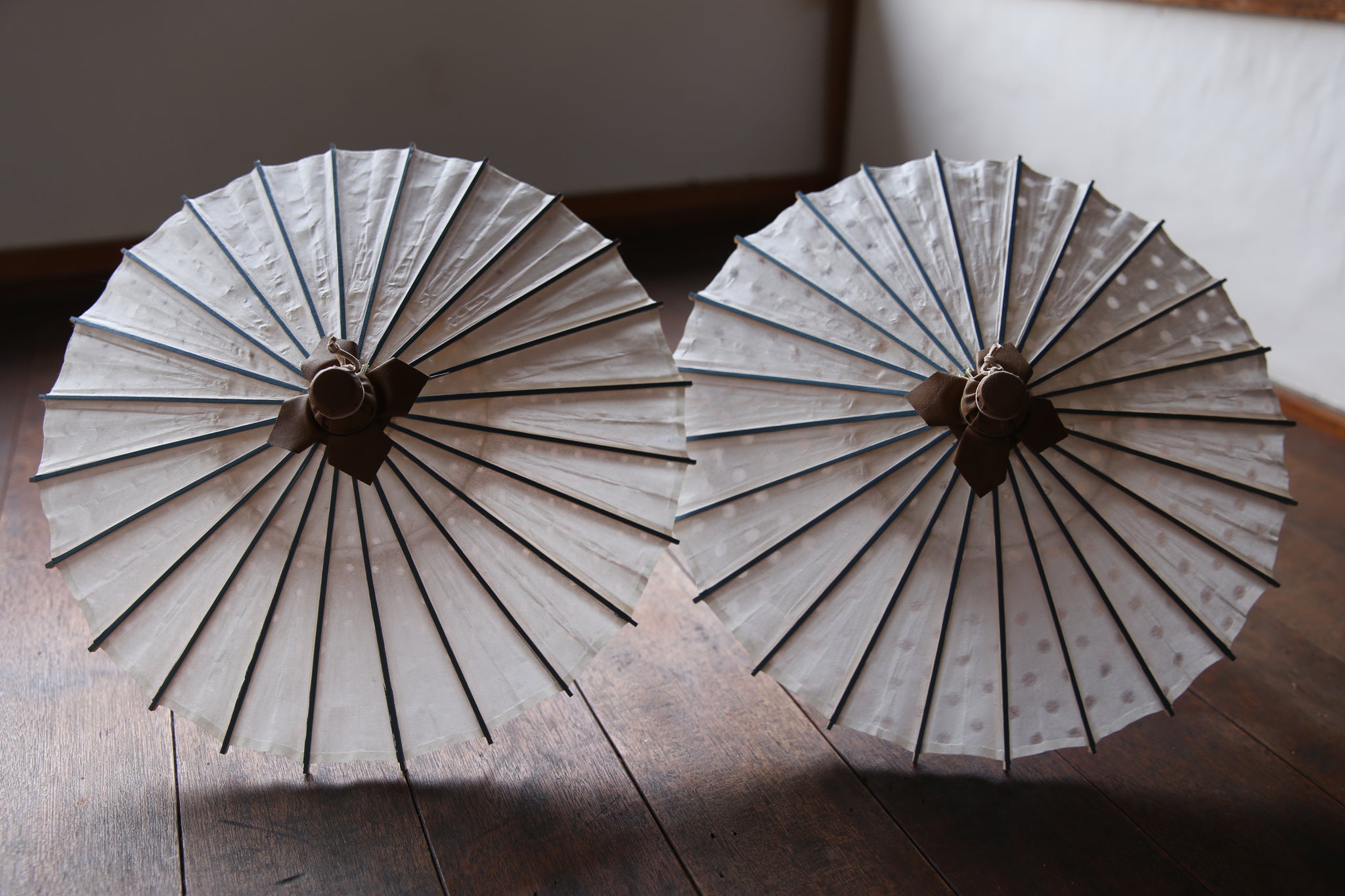 日傘と同じく油を引いていない和紙そのままですので、濡らさないようにお気を付け下さい。