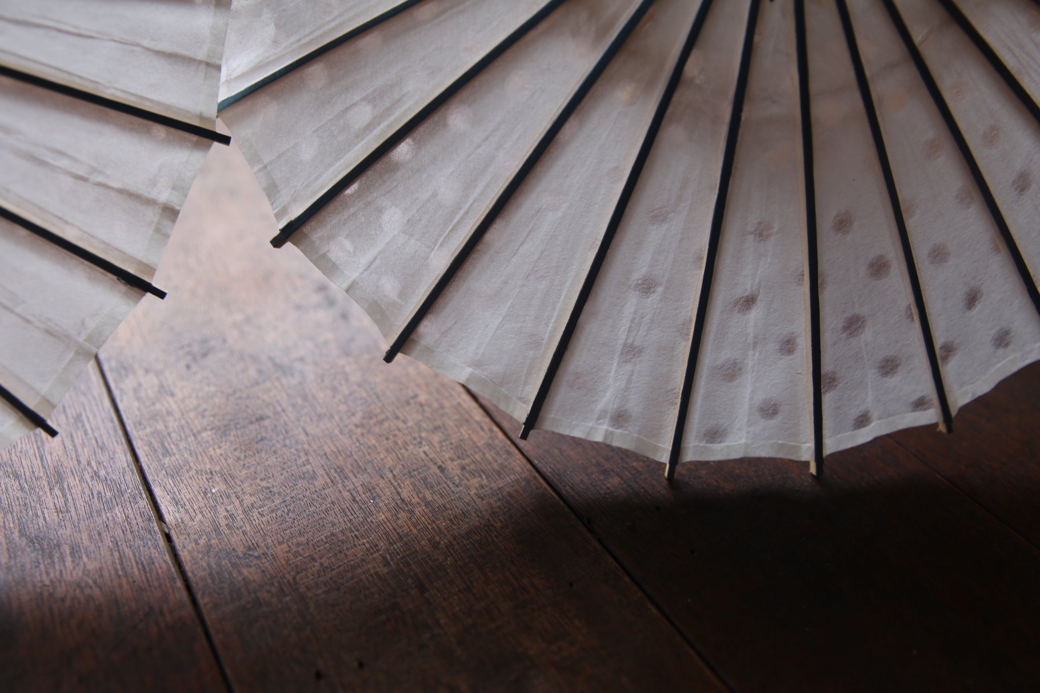 大きく可愛らしい水玉模様は透かし和紙ならではの透け感があり、見ているだけで涼しげで楽しい。